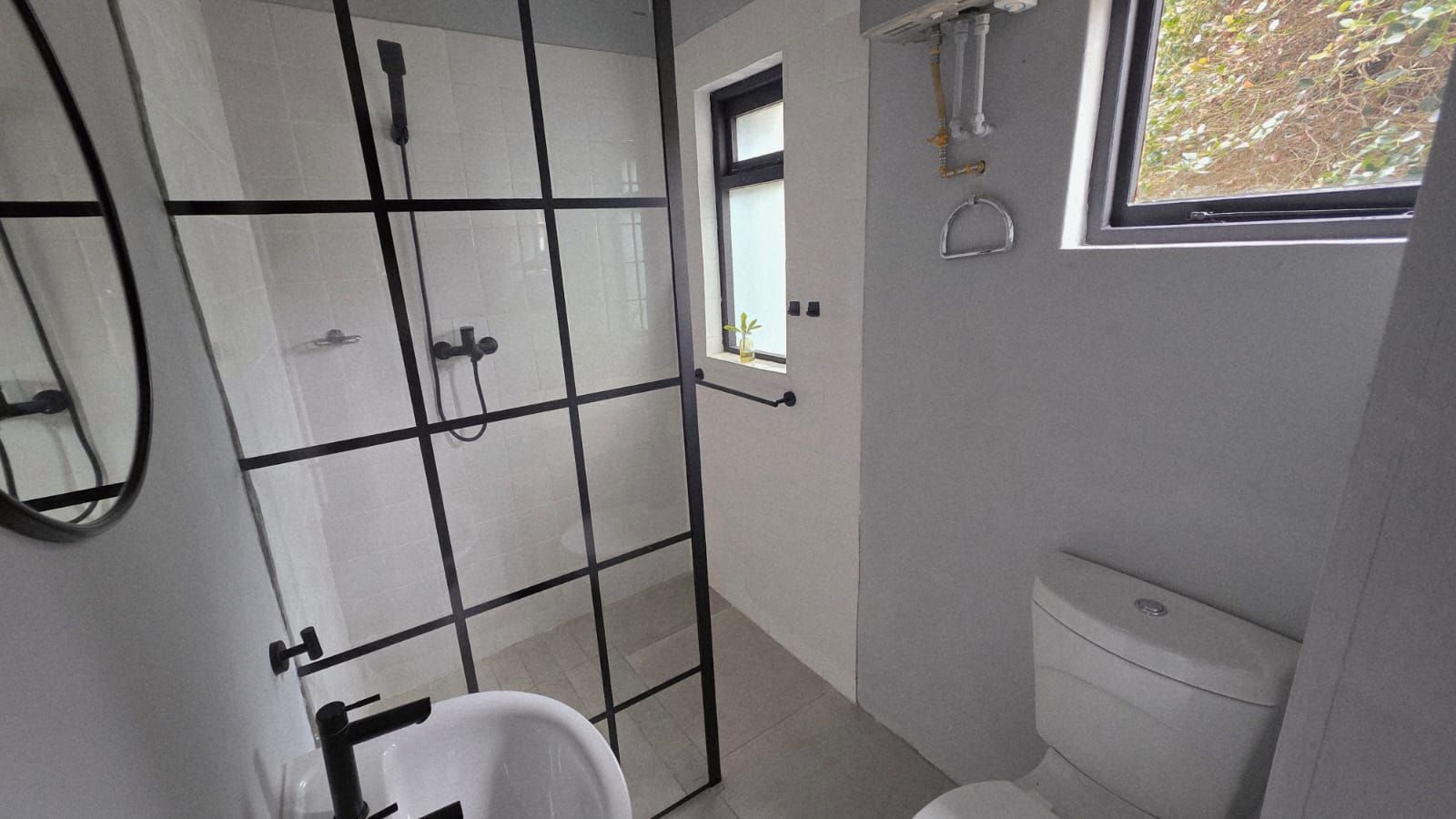 A peaceful and private suite comprising one bedroom with built-in cupboards, a bathroom, and an open-plan living area opening onto a beautifully manicured garden.