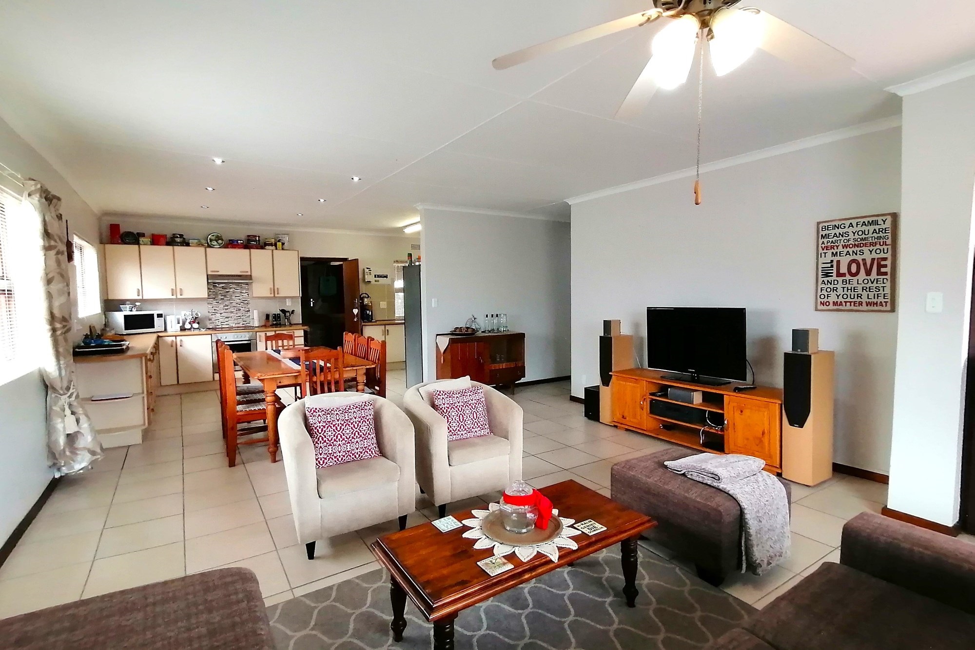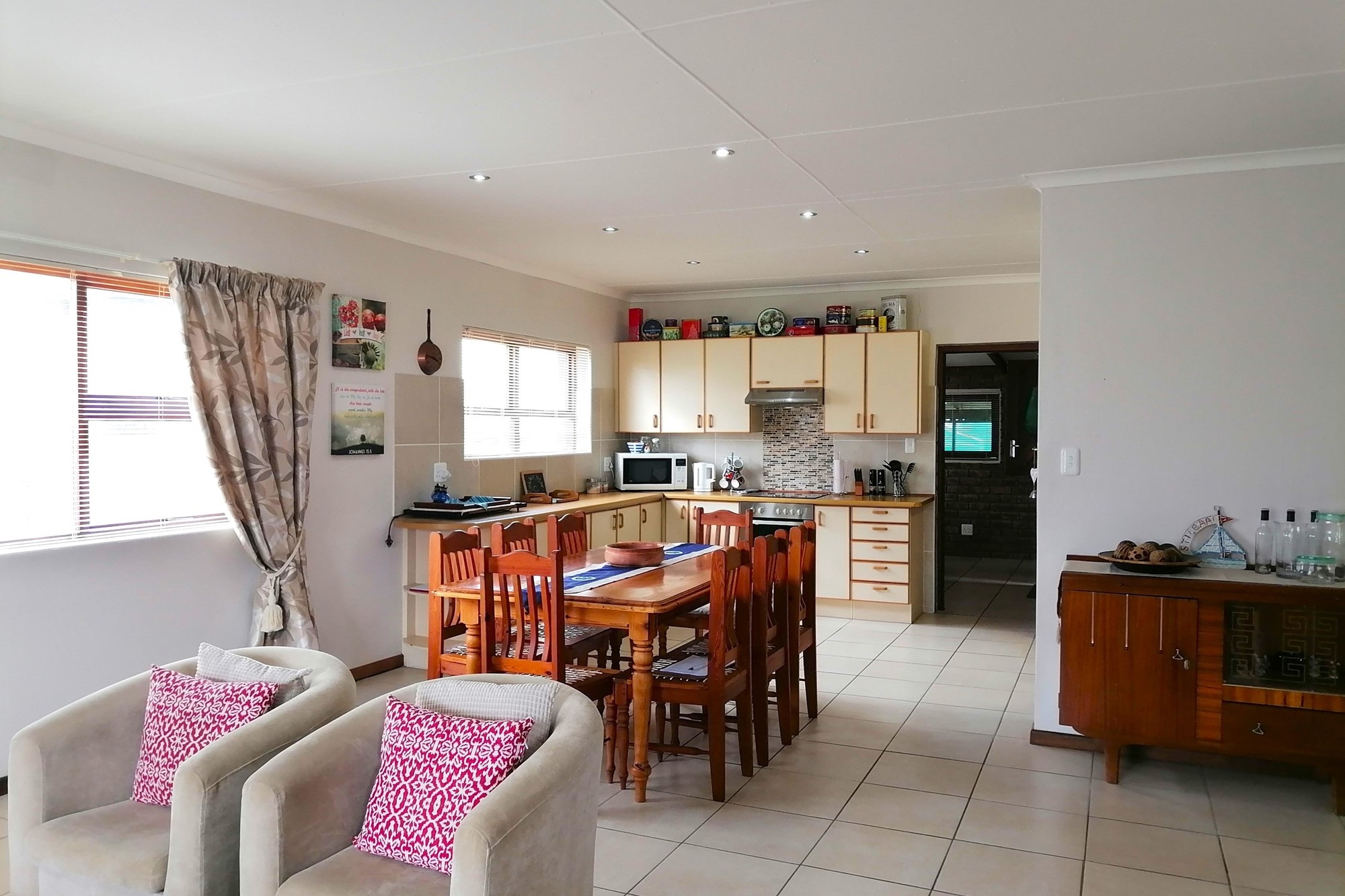 For added privacy or guest accommodation, there is a fourth bedroom, shower, toilet, basin and kitchenette with its own external door for easy access. The heart of the home is the large open plan living/dining and kitchen area, designed for modern family living. This space opens into a braai room with outside door, providing a perfect space for relaxation and entertaining. Additionally there is a covered outdoor braai area in the back yard. To top it all the home is equipped with a 8KVA inverter and six solar panels to ensure a constant supply of electricity for peace of mind - making this home both practical and sustainable.
