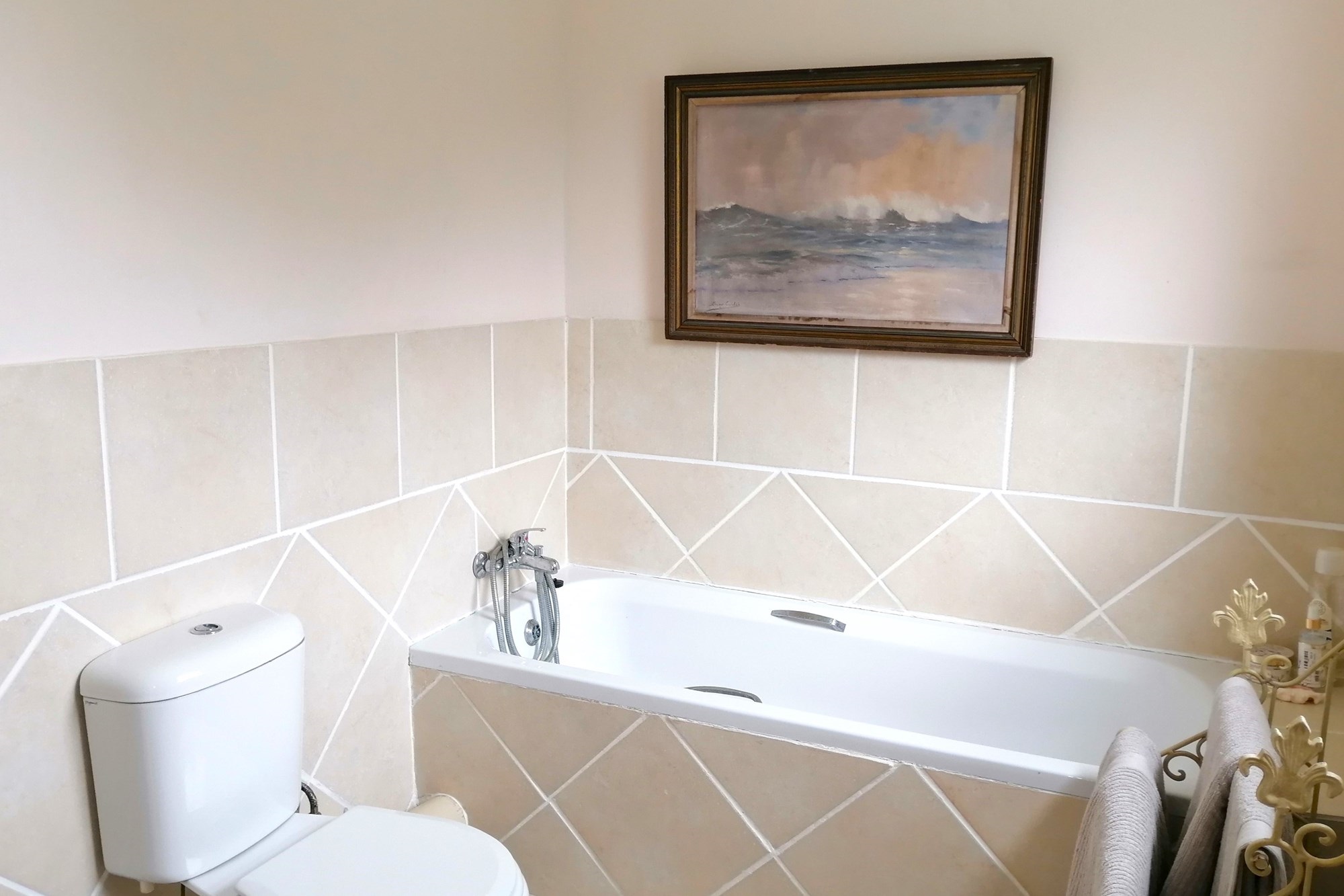 Upstairs on the first floor, two well sized guest bedrooms come with built in cupboards and open onto a balcony that boasts distant sea views - creating a peaceful retreat. A second bathroom serves both of the guest rooms. A single garage completes this picture.