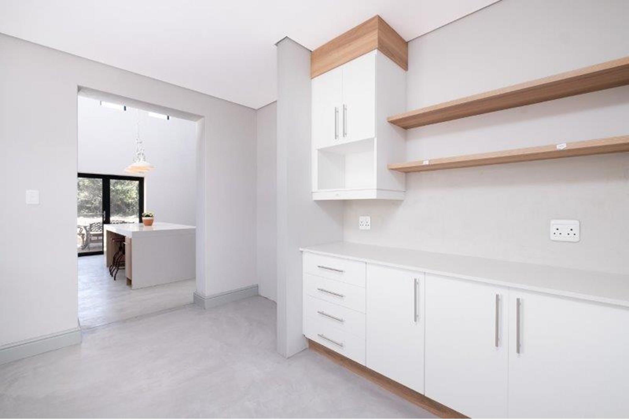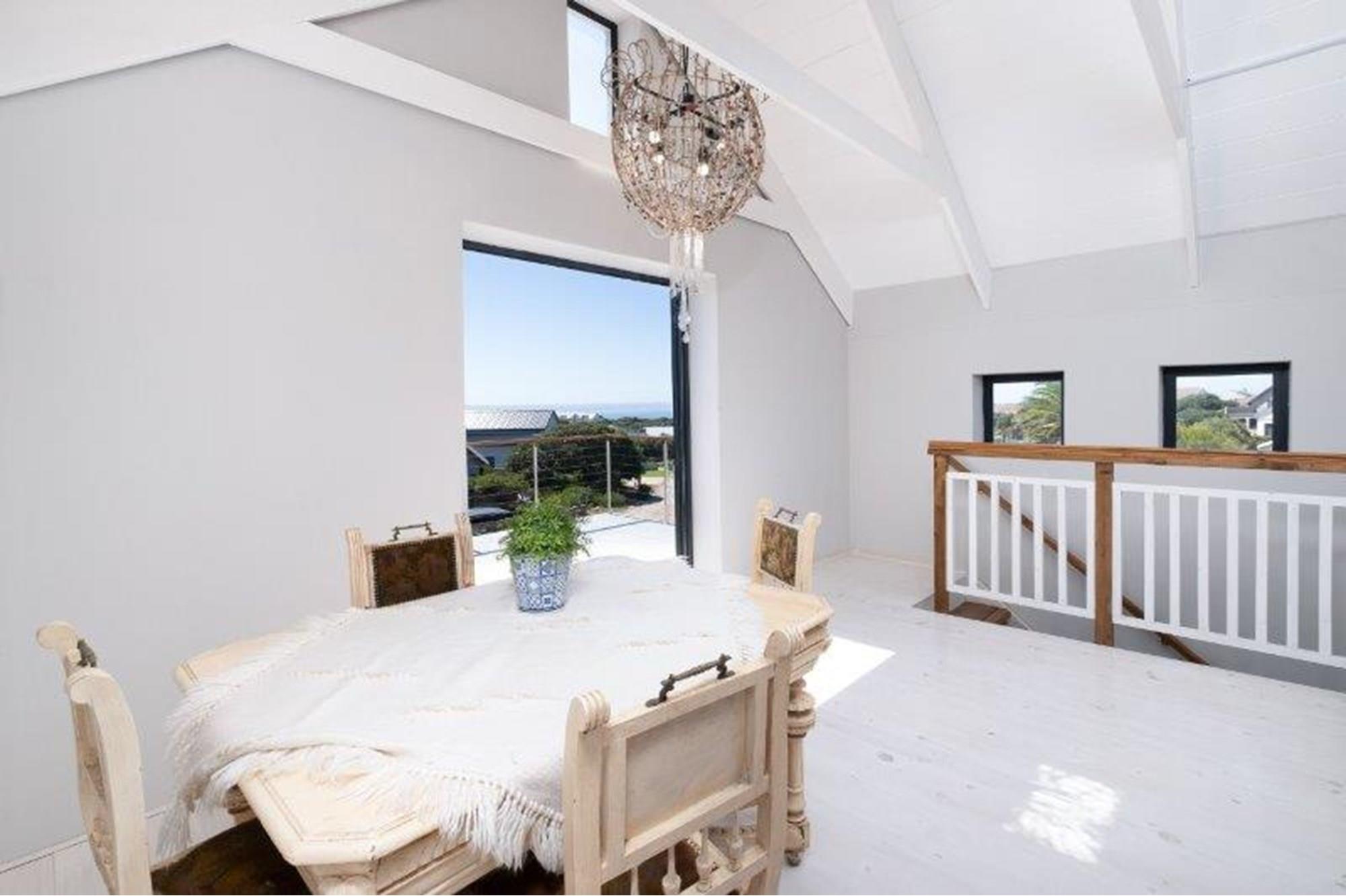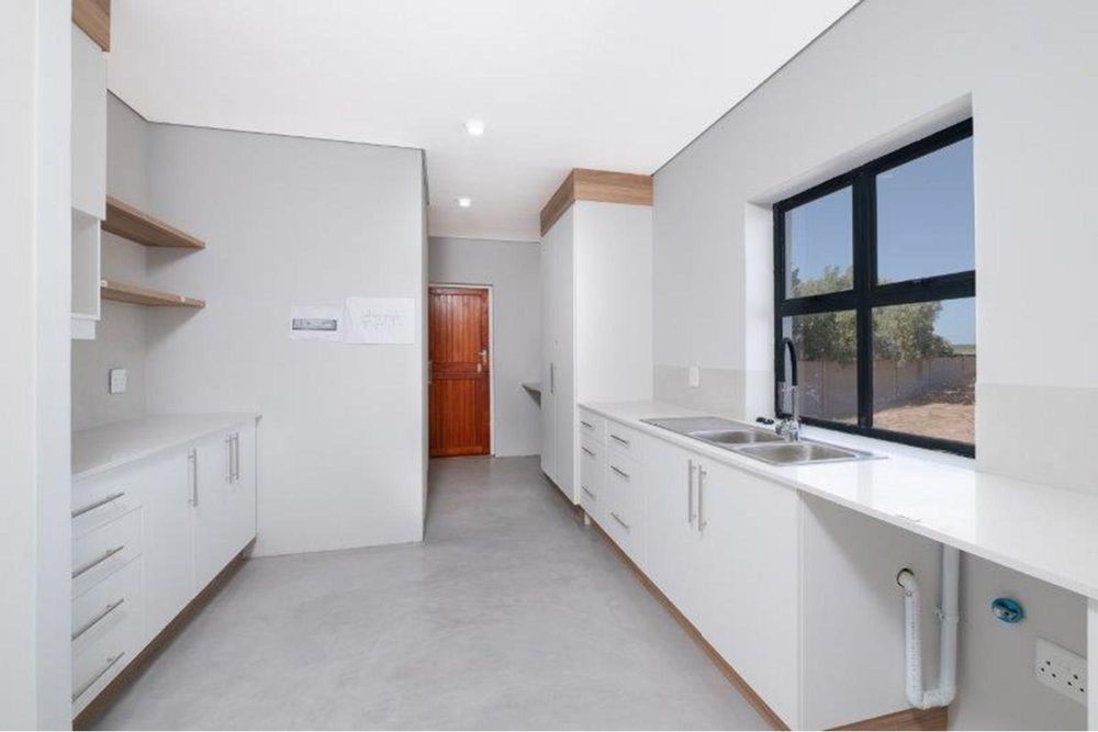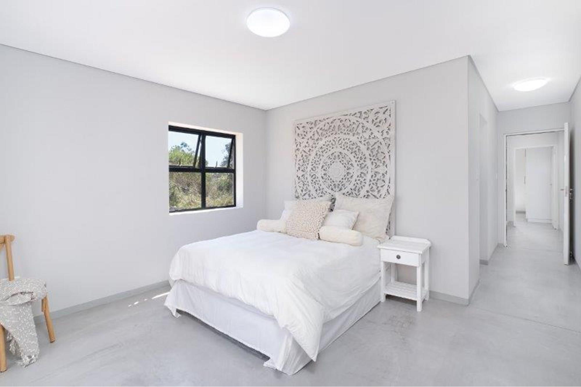 This immaculate newly constructed three-bedroom, three-bathroom home offers architectural elegance at every turn. Enter into the double-volume living and dining area with lovely detailing, complemented by a mezzanine floor in the front which leads to an outside balcony with distant sea views. The contemporary open-plan kitchen, complete with a separate scullery and laundry, displays modern finishes. A dedicated office space ensures productivity, while the outside patio with a built-in braai provides the perfect setting for year-round gatherings and relaxation. Ample cupboard space throughout the home takes care of all your storage needs. The double automated garage offers convenient in-house access, ensuring seamless living.