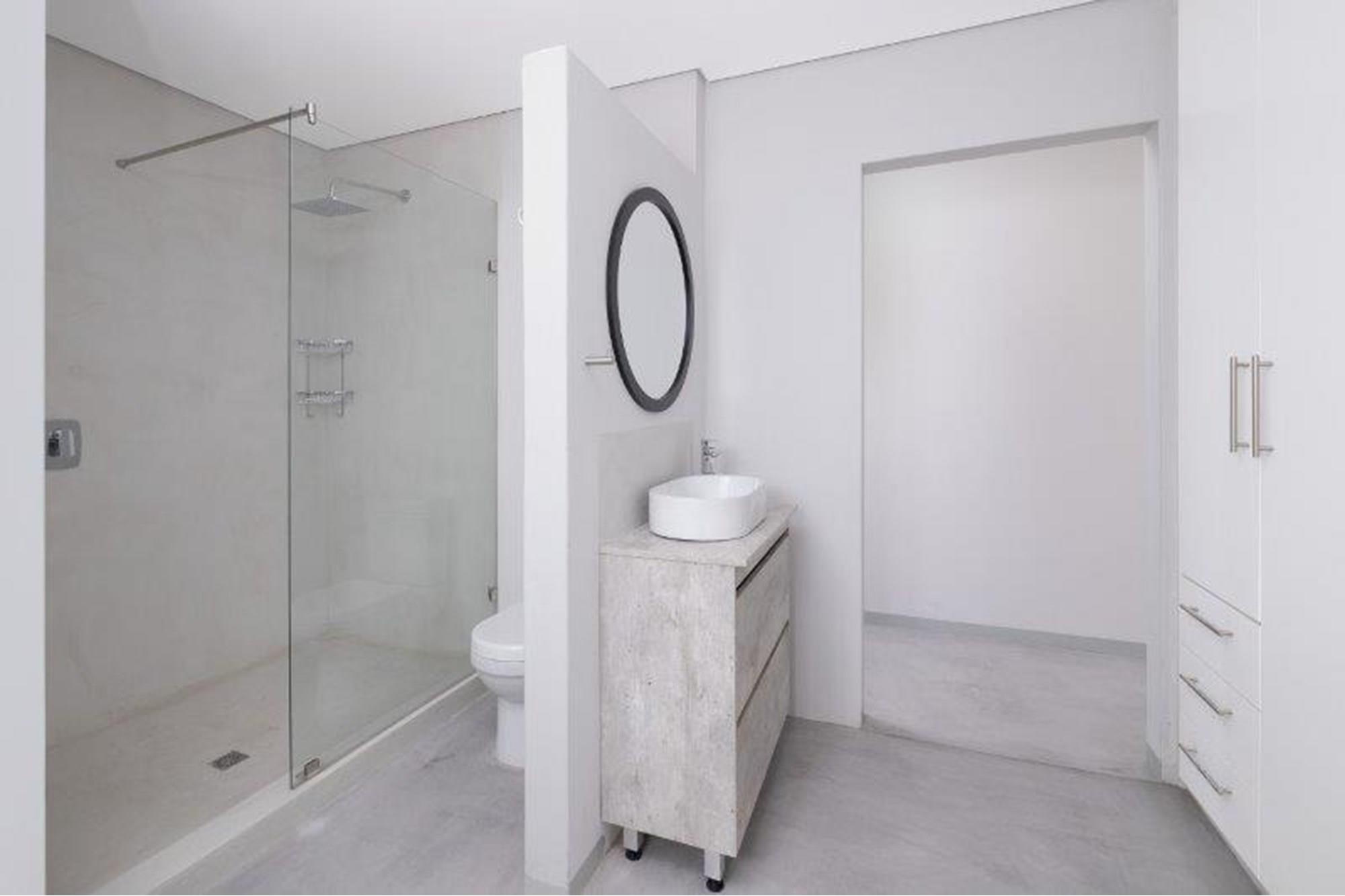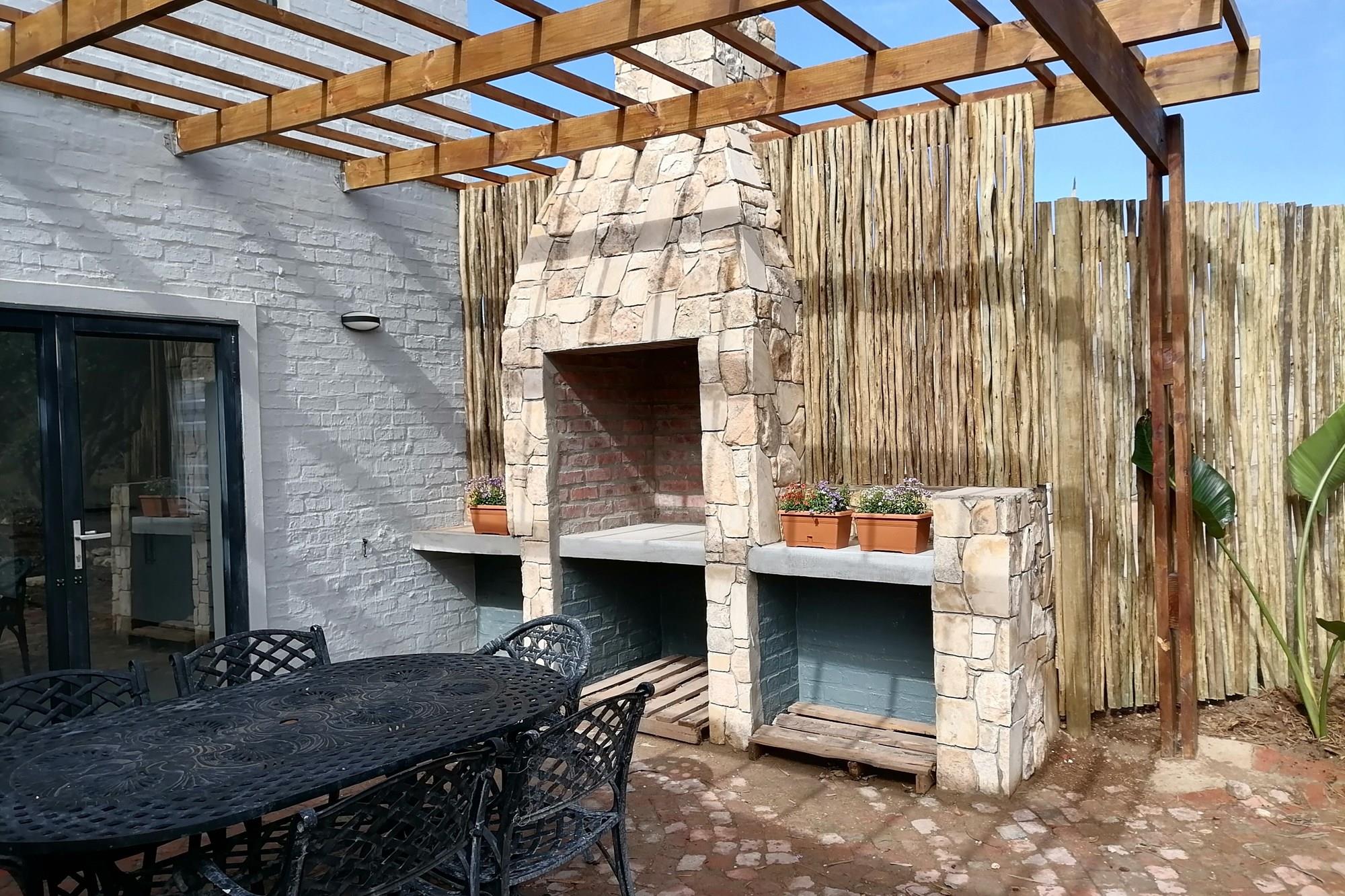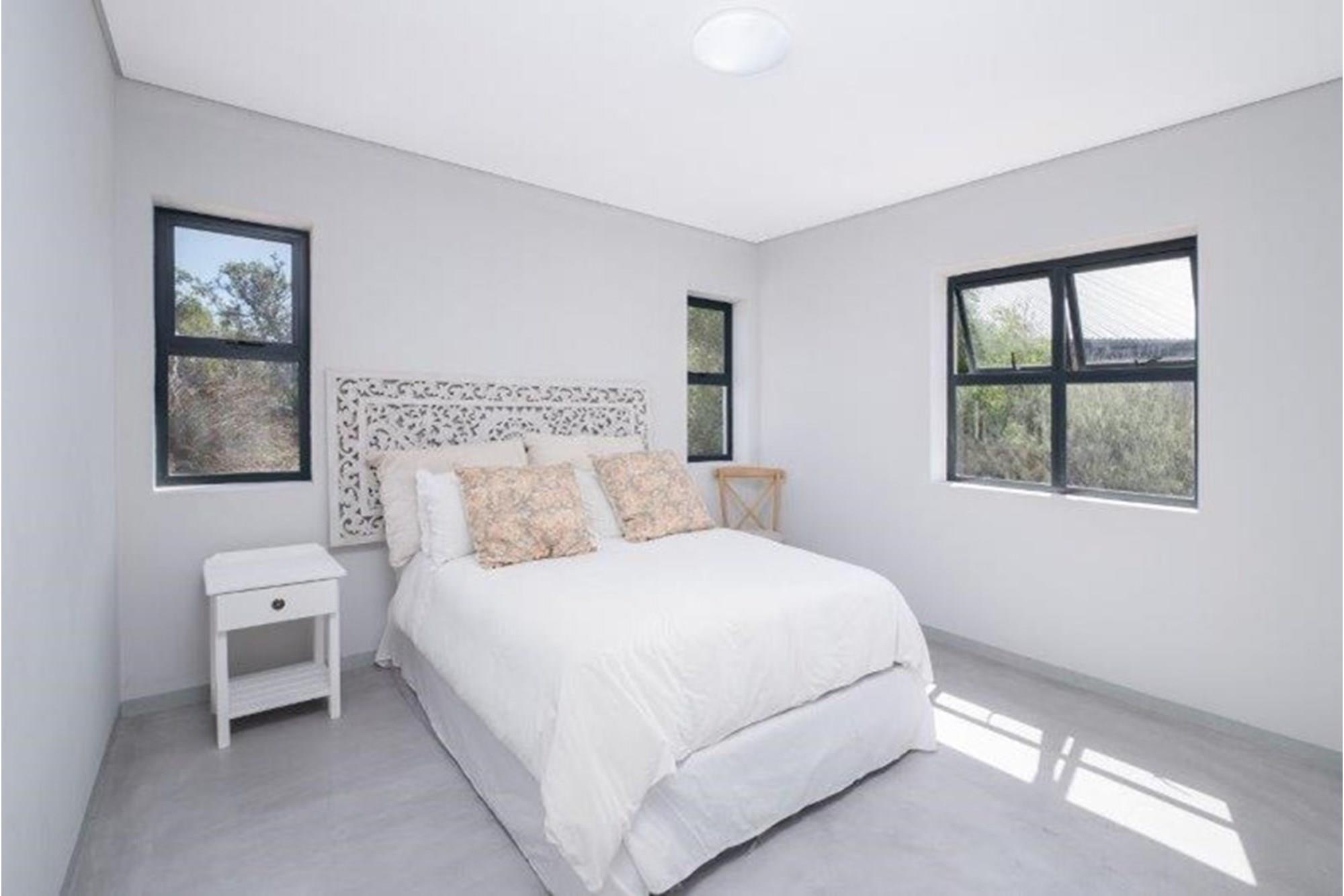 This immaculate newly constructed three-bedroom, three-bathroom home offers architectural elegance at every turn. Enter into the double-volume living and dining area with lovely detailing, complemented by a mezzanine floor in the front which leads to an outside balcony with distant sea views. The contemporary open-plan kitchen, complete with a separate scullery and laundry, displays modern finishes. A dedicated office space ensures productivity, while the outside patio with a built-in braai provides the perfect setting for year-round gatherings and relaxation. Ample cupboard space throughout the home takes care of all your storage needs. The double automated garage offers convenient in-house access, ensuring seamless living.