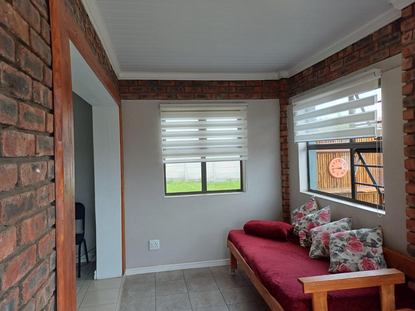 An enclosed front porch welcomes you into a spacious open-plan living and dining area, designed for effortless family living and entertaining. The indoor built-in braai enhances the versatility of the space, while sliding doors open to a private patio and outdoor braai area—perfect for relaxed gatherings with friends and family.