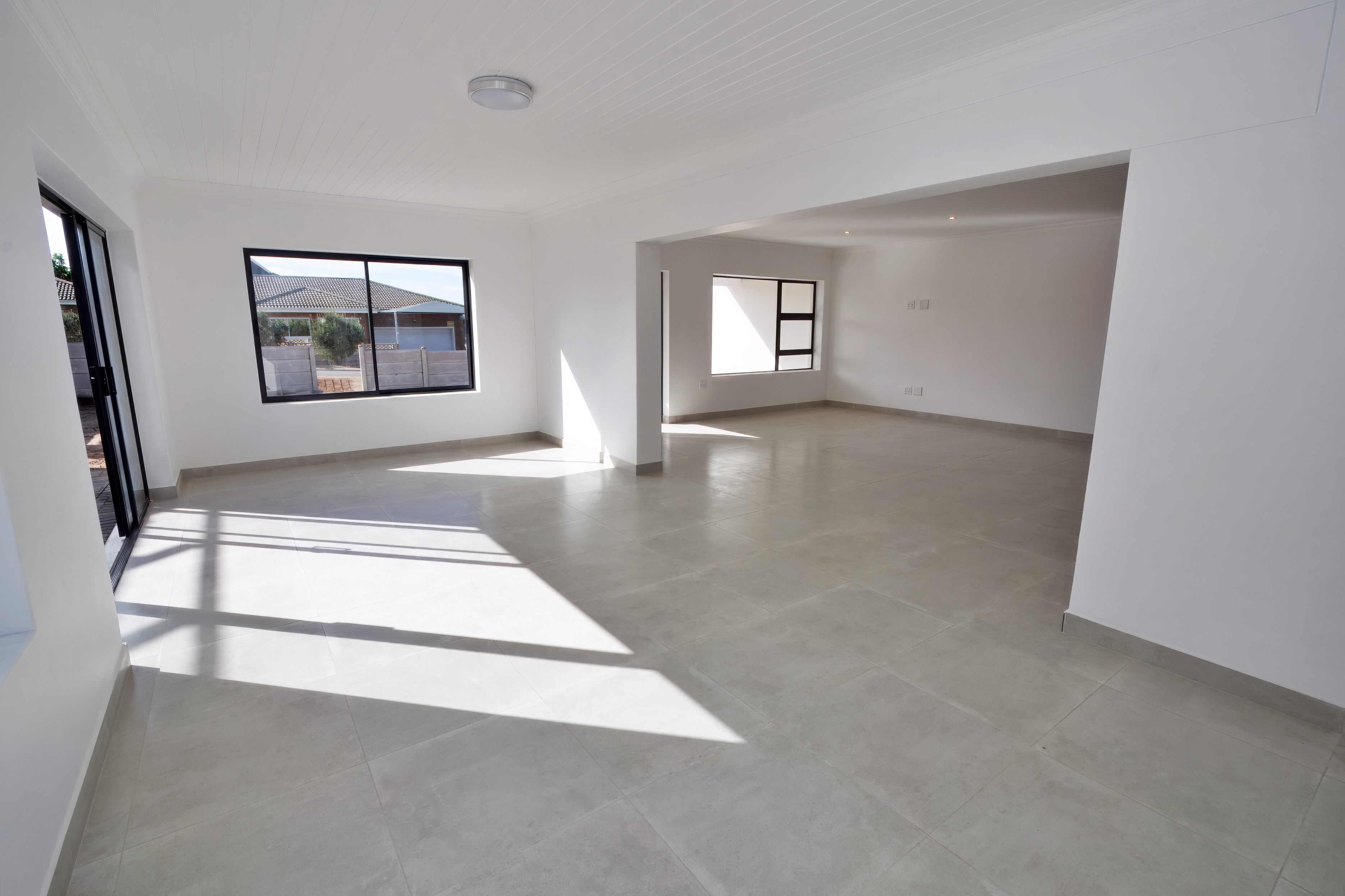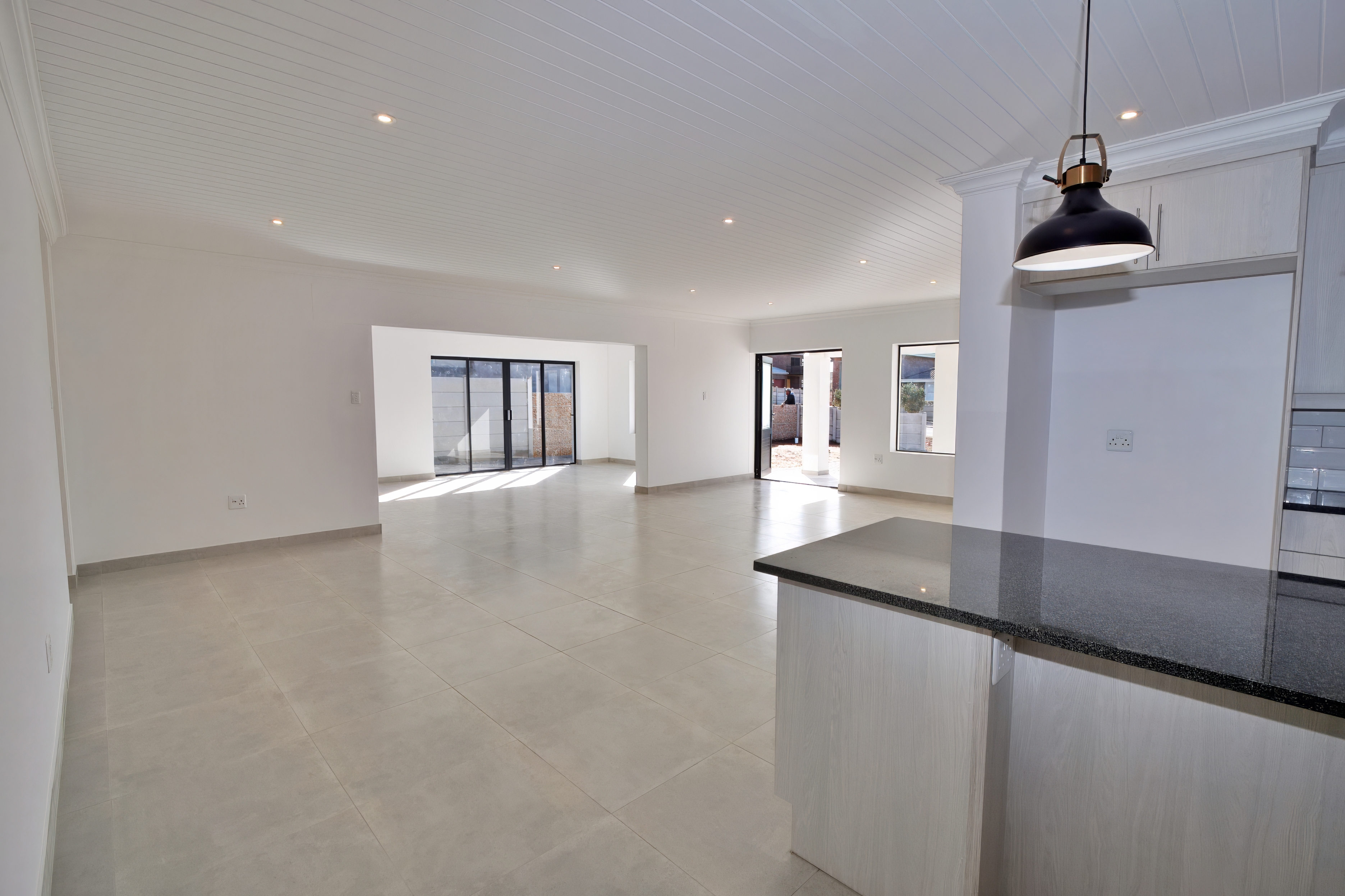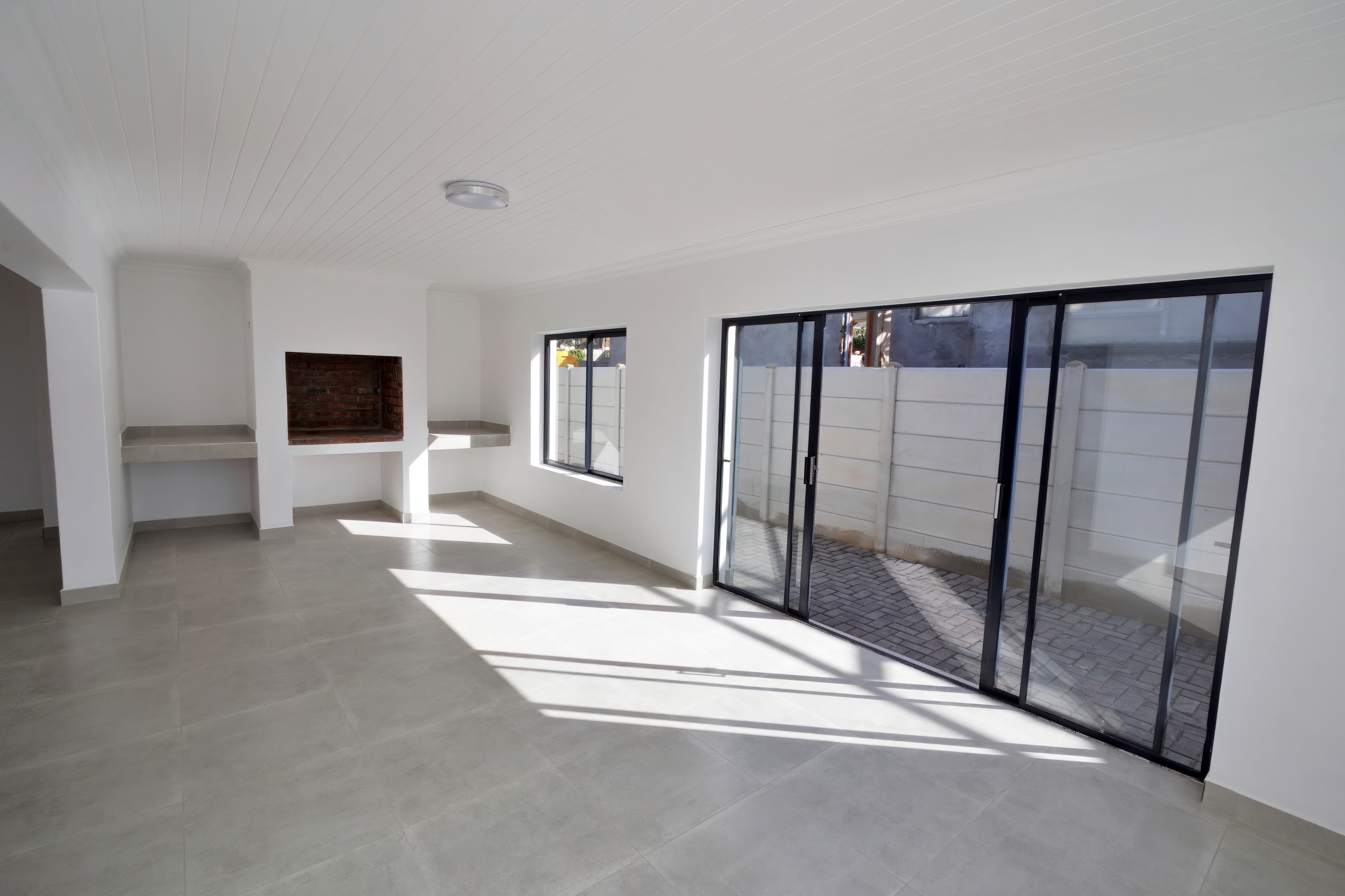 The home features an inviting open-plan layout that seamlessly connects the kitchen, dining, living, and indoor braai area – ideal for both family living and entertaining guests. A separate scullery adds extra convenience and practicality.