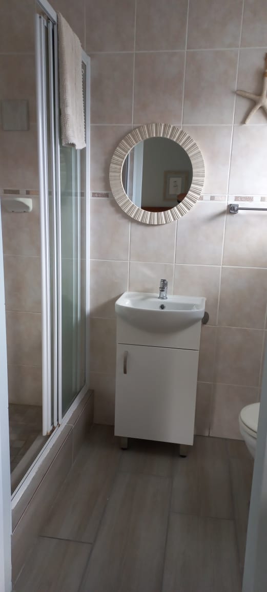 The master bedroom features its own en-suite bathroom, and a second bathroom caters to the additional bedroom and guests.