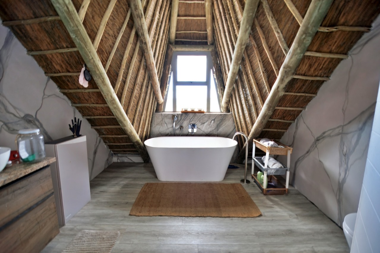 Set on over 3 hectares within the secure, eco-conscious Fisantekraal Reserve, this ±1200m2 home artfully blends rustic charm with modern luxury. The light-filled, open-plan living spaces are perfect for entertaining, featuring a built-in braai, elegant dining area, and a gourmet kitchen with walk-in pantry and scullery. The main level hosts a lavish master suite with full en-suite bathroom and walk-in closet, while upstairs, two additional bedrooms offer stunning vistas of fynbos and the distant ocean.