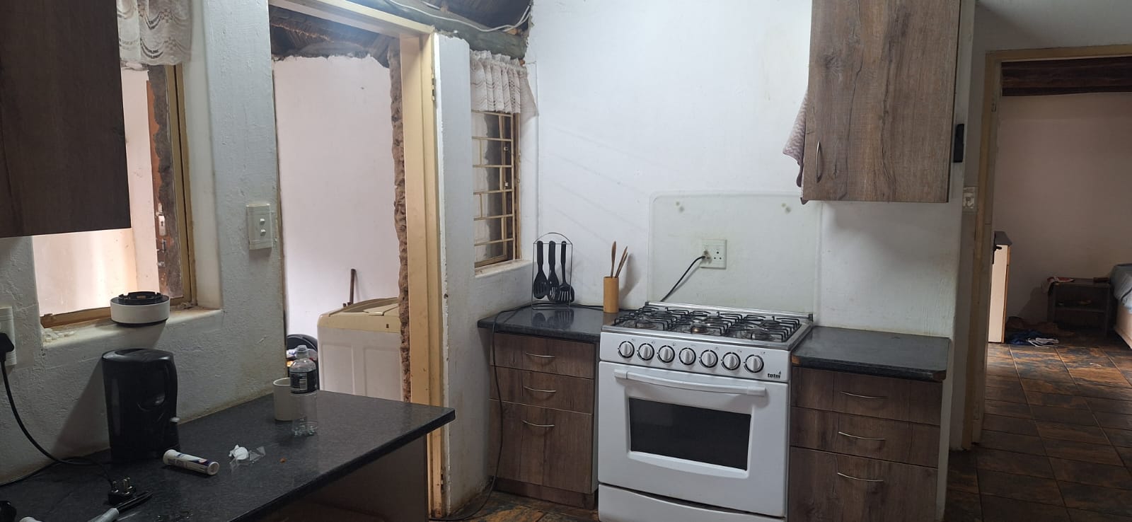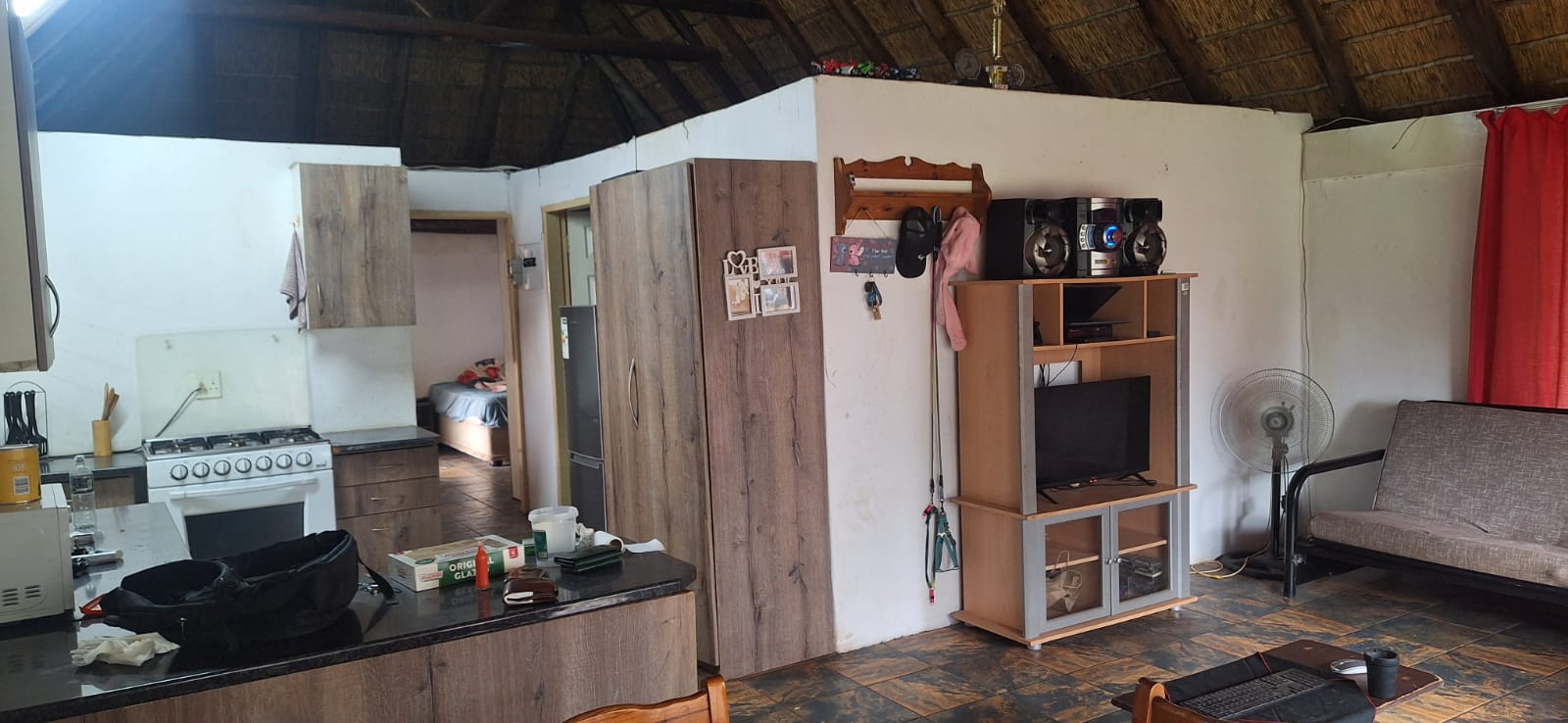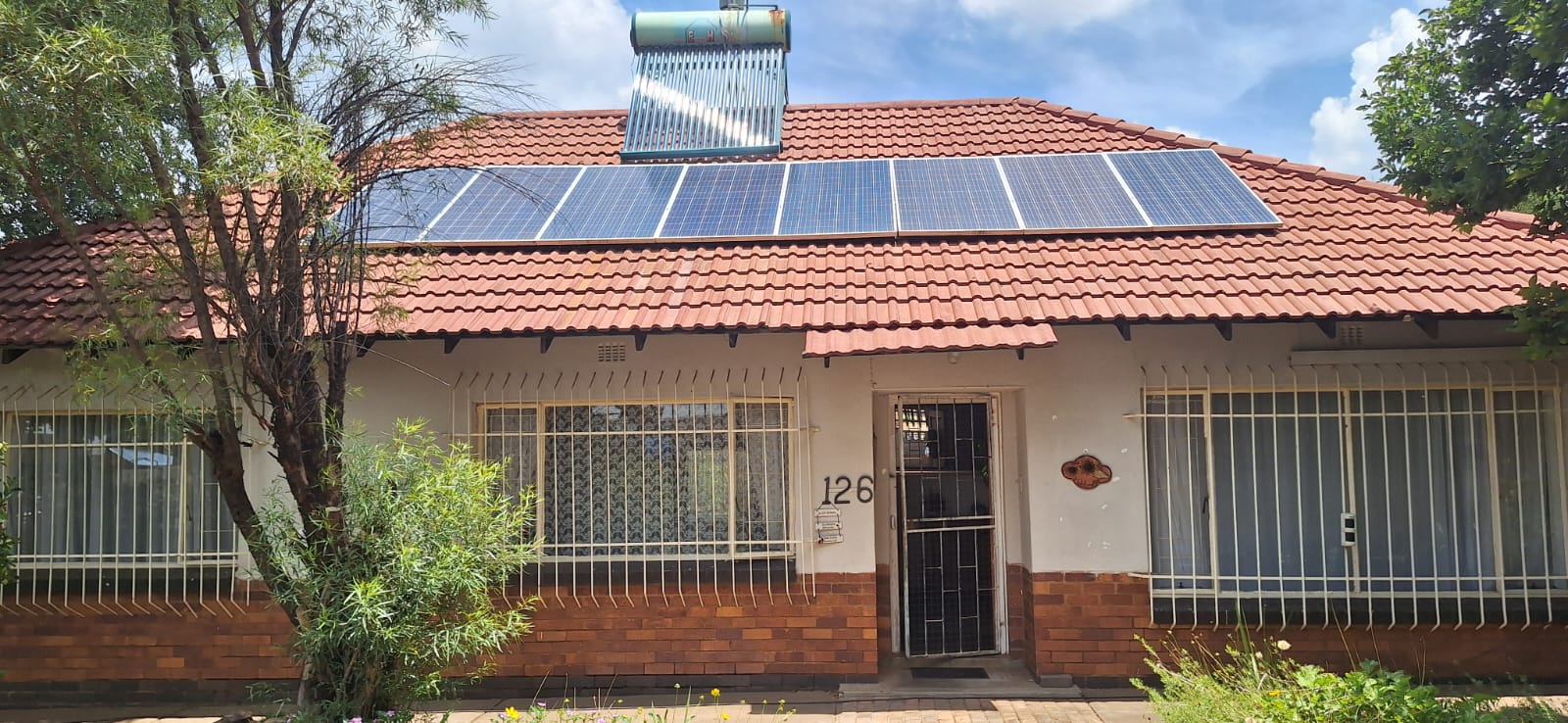 The main house comprises three well-sized bedrooms and includes an additional room that can be utilised as a study or storage room. The home is equipped with 10 solar panels (battery required), a solar geyser, and a borehole, offering significant savings and added convenience.