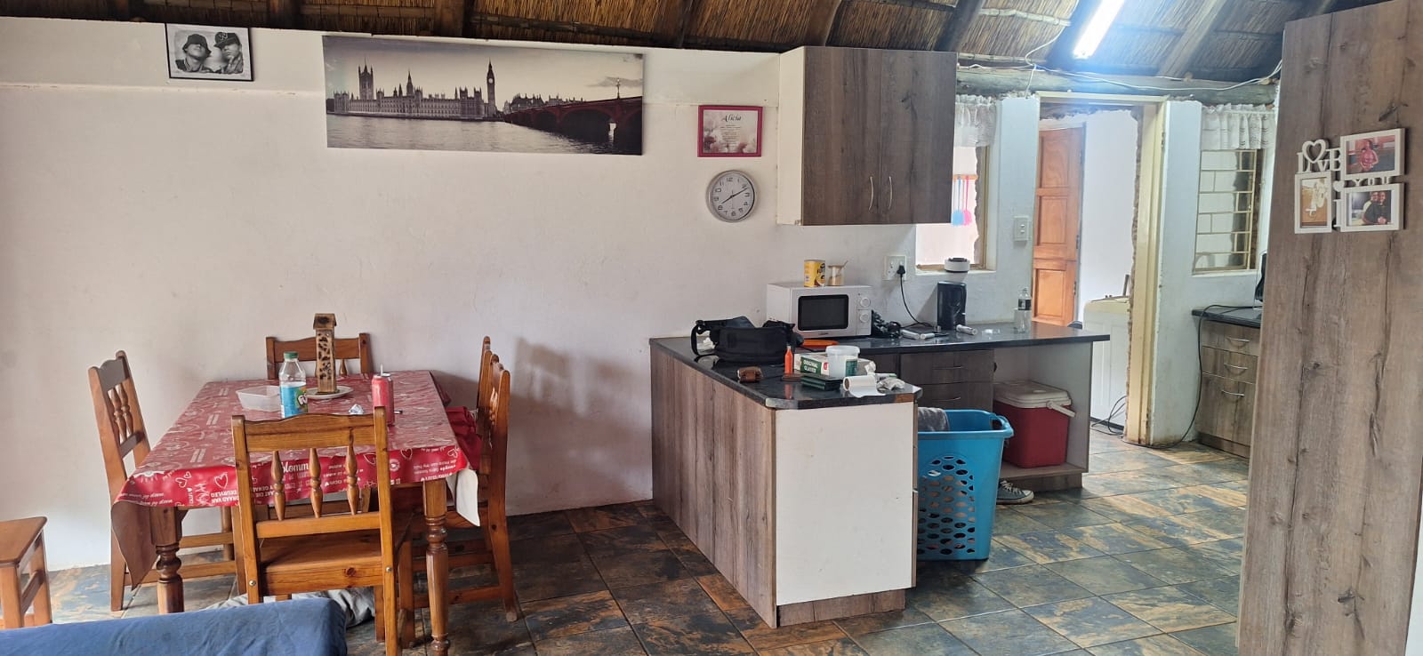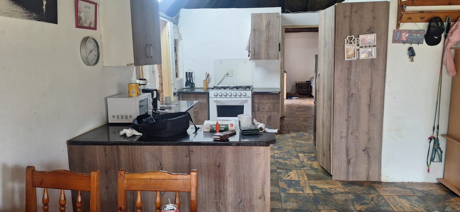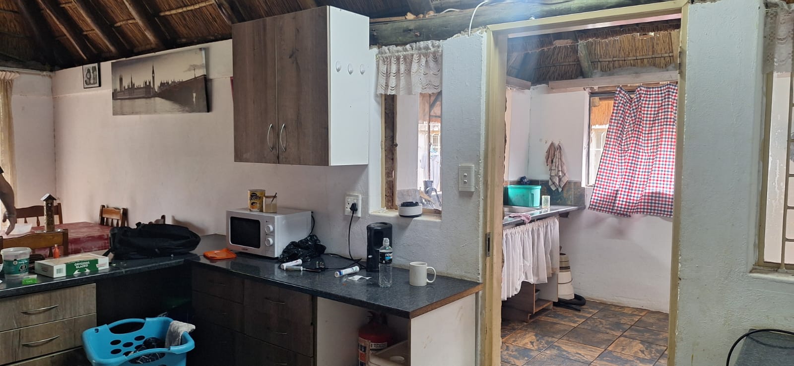 The main house comprises three well-sized bedrooms and includes an additional room that can be utilised as a study or storage room. The home is equipped with 10 solar panels (battery required), a solar geyser, and a borehole, offering significant savings and added convenience.