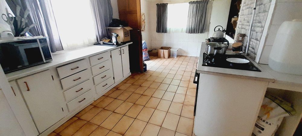 The modern kitchen is equipped with ample cupboard space, designed to make meal preparation effortless. A separate scullery and laundry area ensures convenience and extra functionality. All three well-sized bedrooms come with built-in cupboards, while the main bedroom includes a private ensuite bathroom. An additional guest bathroom provides comfort for family and visitors alike.