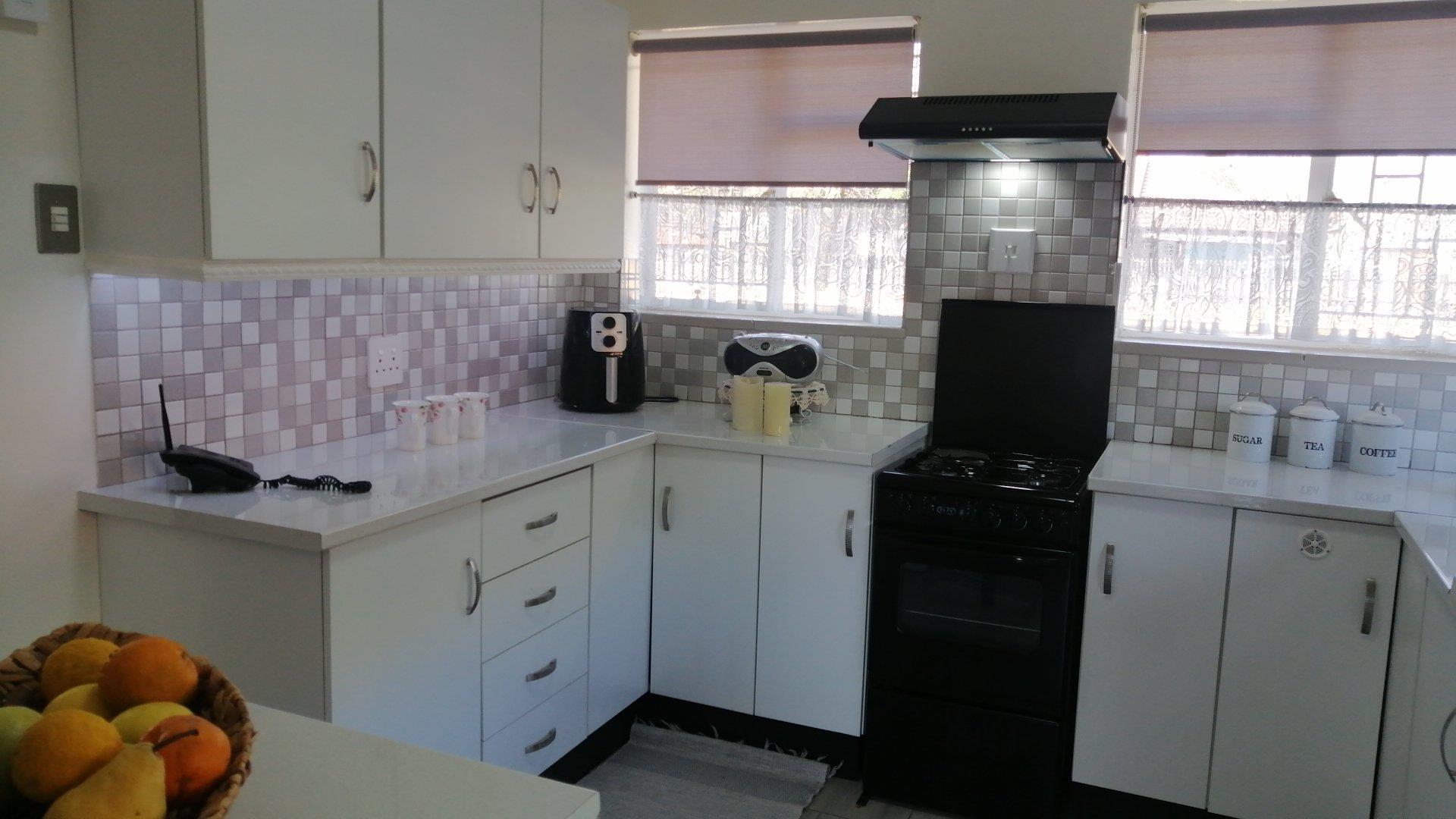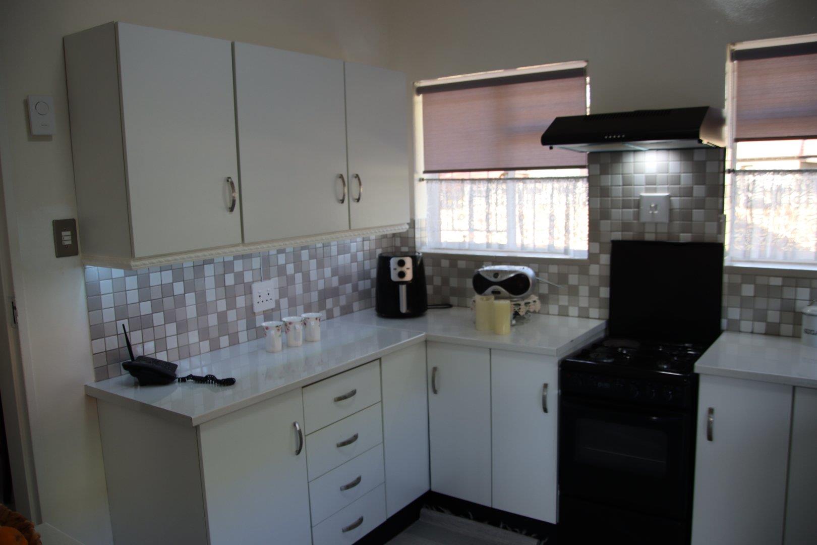 Enjoy peace of mind with a decorative stone perimeter wall, palisade fencing, security gates, and a reliable alarm system. Parking is a breeze with three covered spaces and a single garage, which is attached to an outbuilding that can be converted into a flatlet for extra rental income. A neat scullery and ample kitchen cupboards provide convenience, while the well-kept garden offers space to relax and for children to play. With its attractive price point, this gem presents an exceptional opportunity to create your dream home or expand your property portfolio.