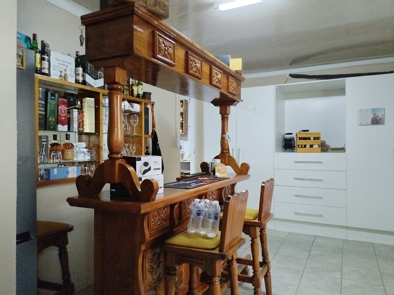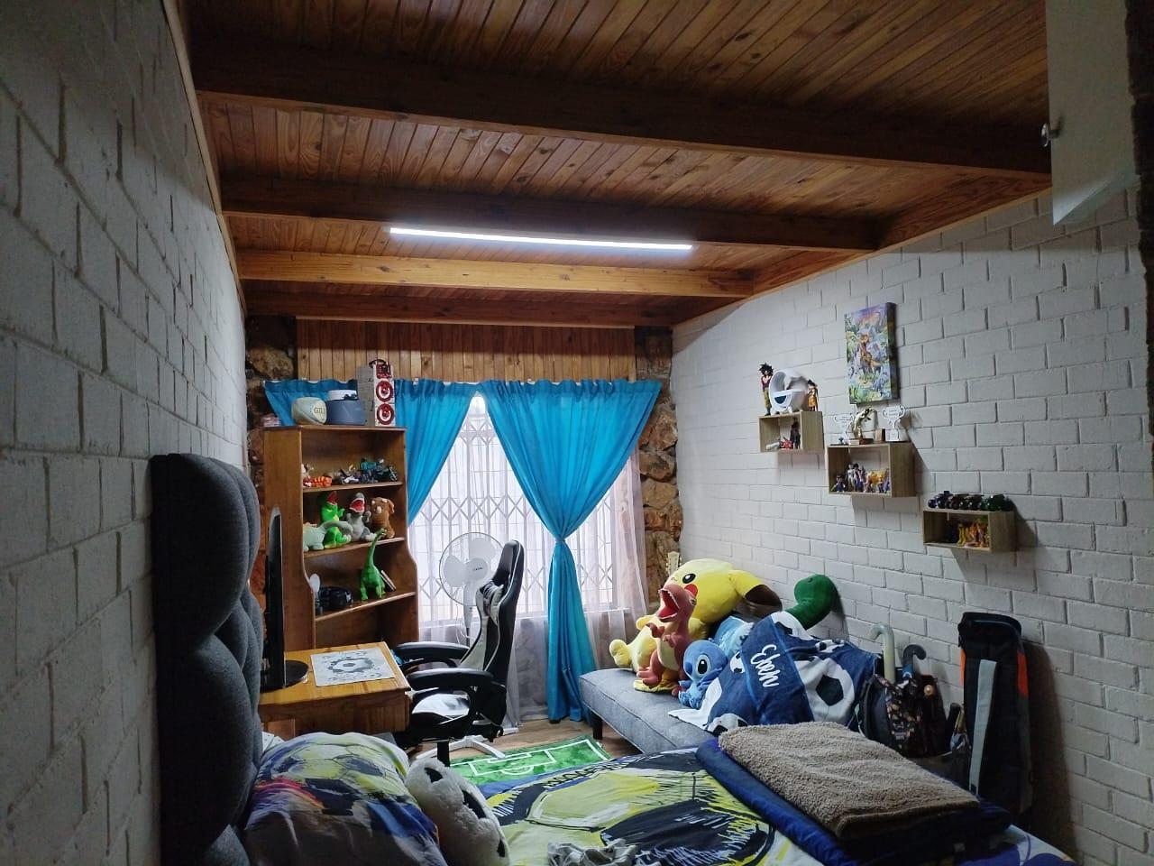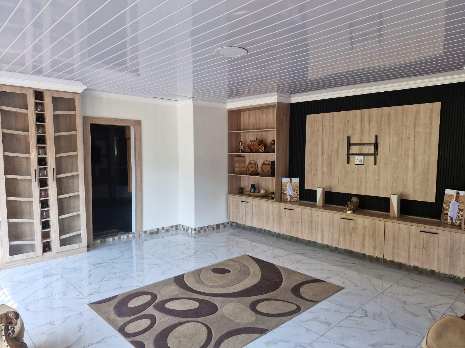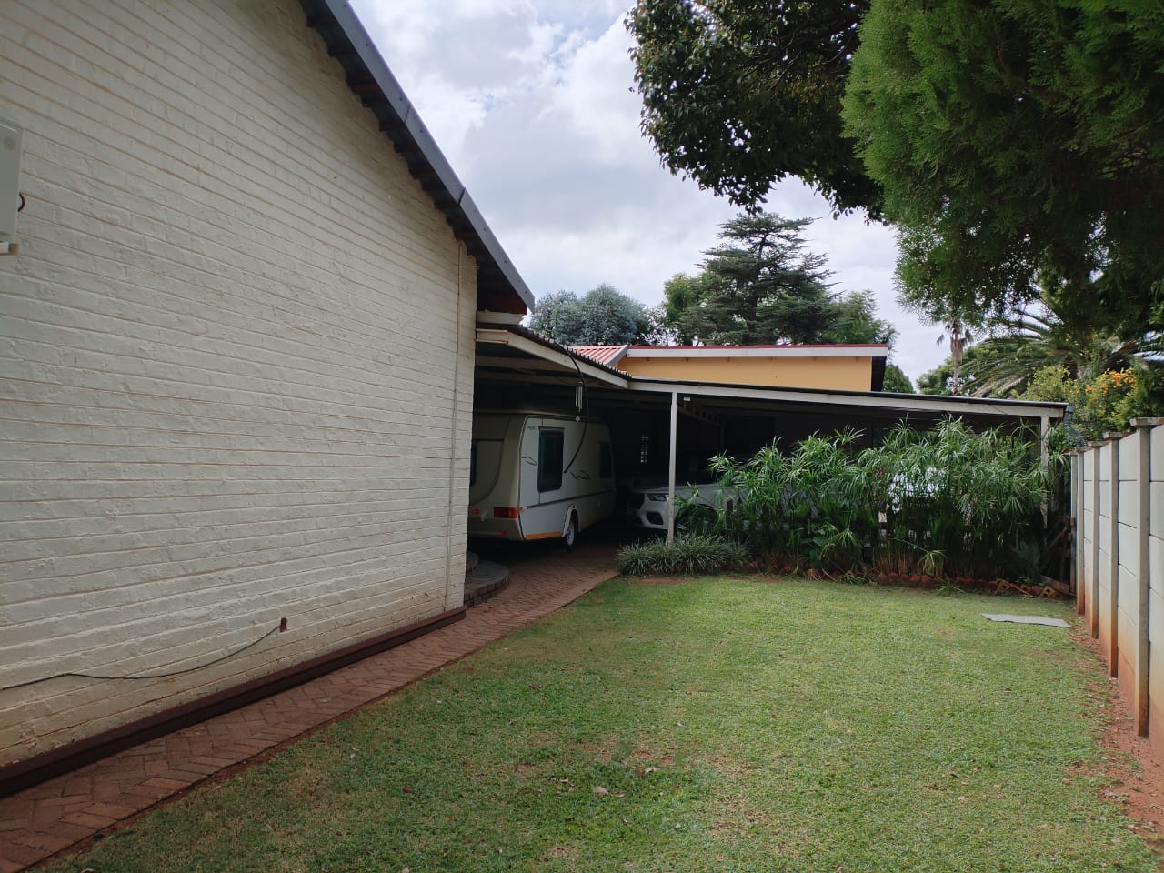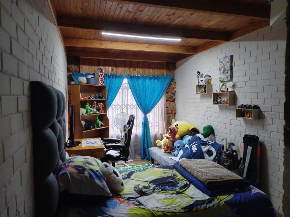 The landscaped garden is maintained with a sprinkler system, while security is top-notch with CCTV cameras, burglar bars, safety gates, palisade fencing, and a security gate. Practical features abound: lock-up carport for five vehicles, parking for a caravan, tool shed, servant’s room with outside toilet, smart home capabilities controlled via mobile device, 5kW inverter (solar-ready), and a newly sealed roof.