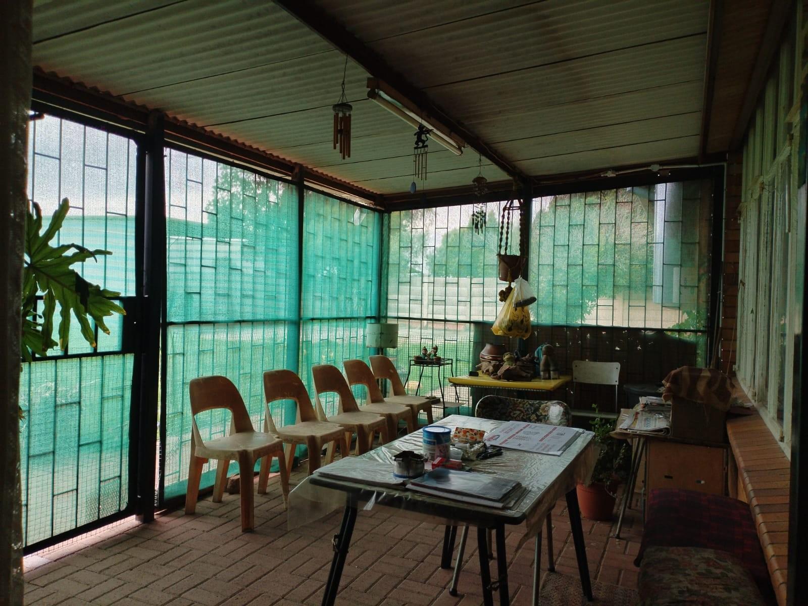 Closed in sunny stoep, walking out towards lapa and braai area.