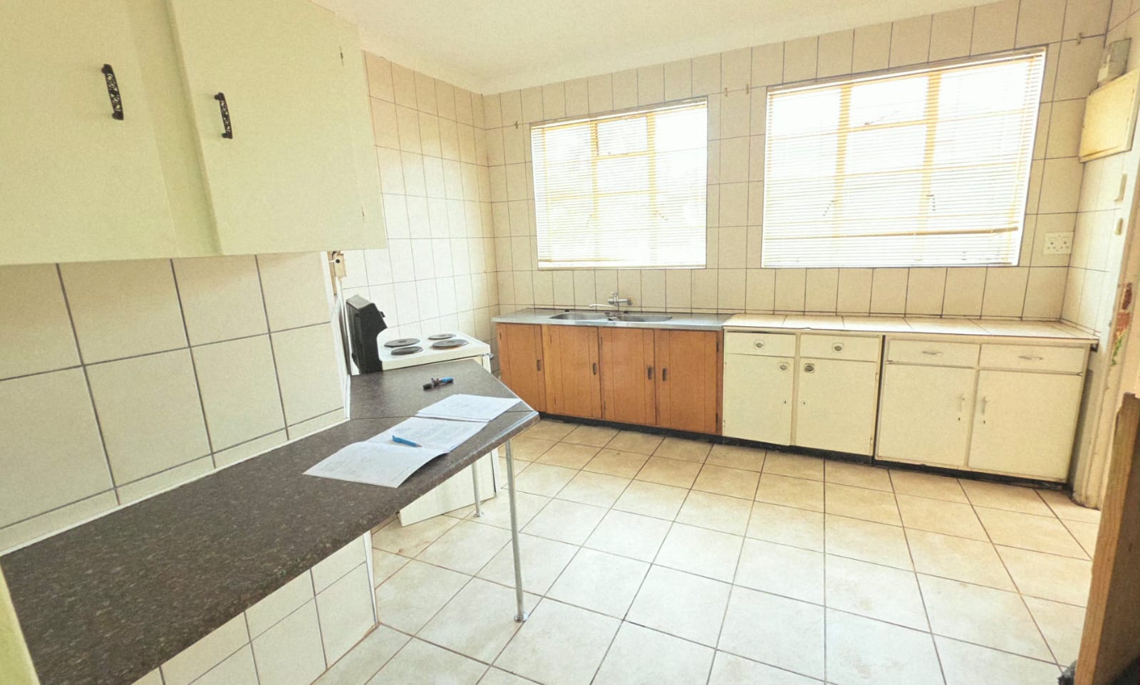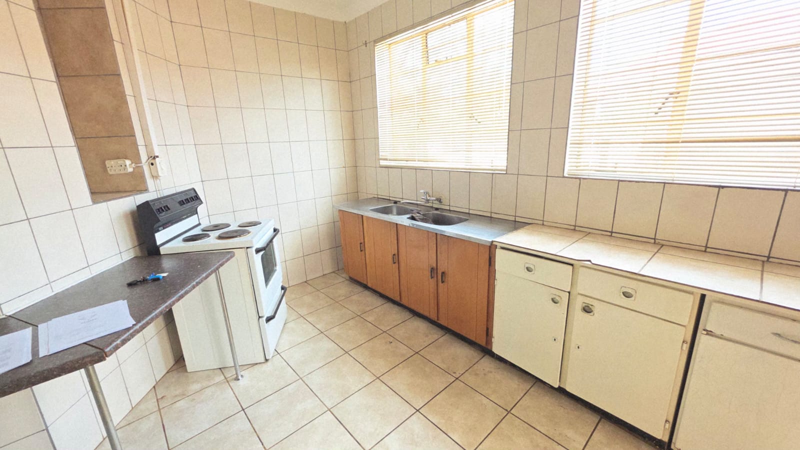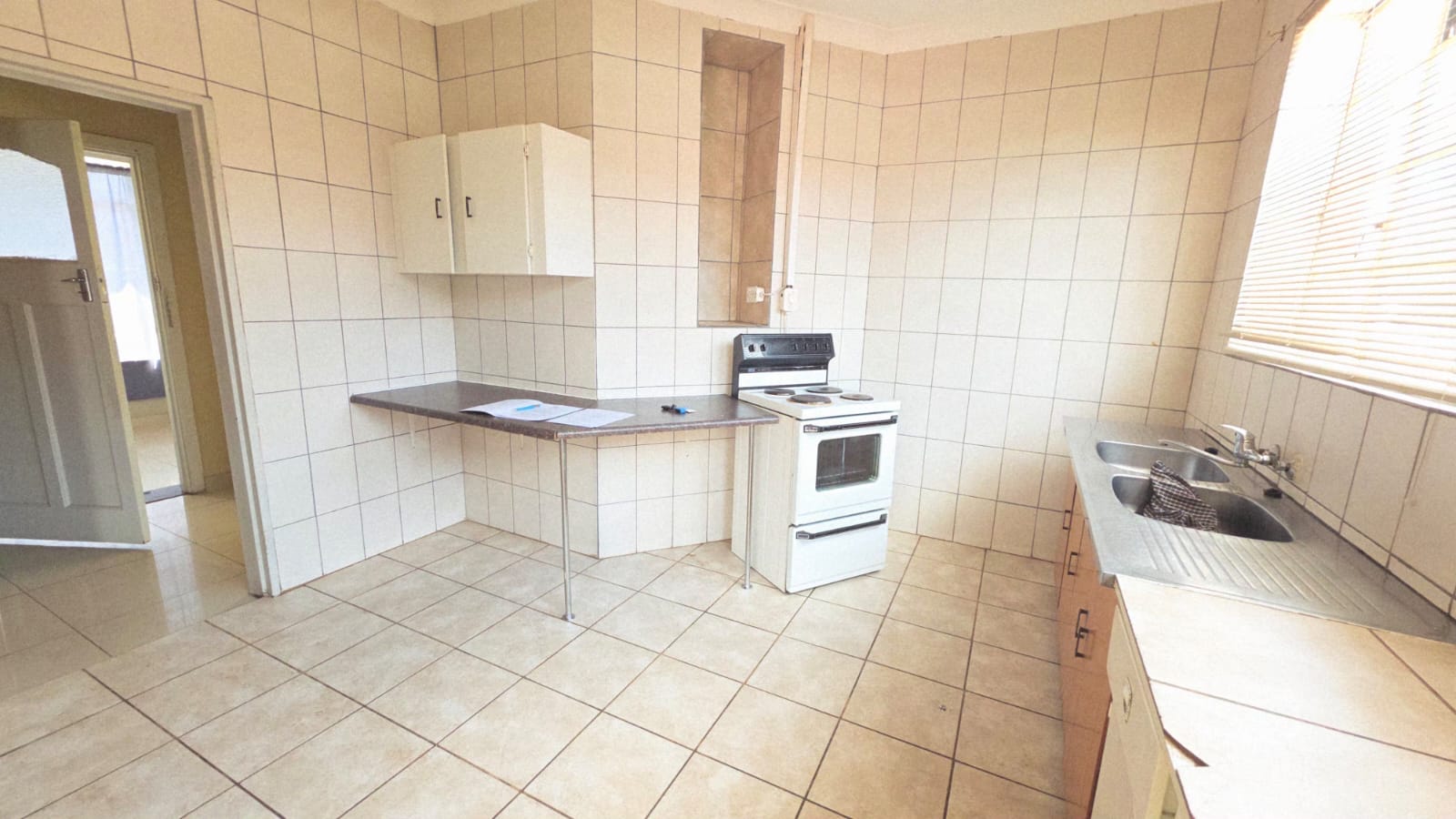 Come on over and check out this lovely 3-bedroom home in Stilfontein Ext 1, perfect for comfortable living! As you step inside, you'll find a spacious lounge with neat tiled flooring, neutral walls, and a charming decorative fireplace, making it super cozy. The kitchen is practical with tiled floors and walls, a double sink, and plenty of counter space, plus a handy pantry for all your goodies. You'll also find a family TV room, great for movie nights or just chilling out.