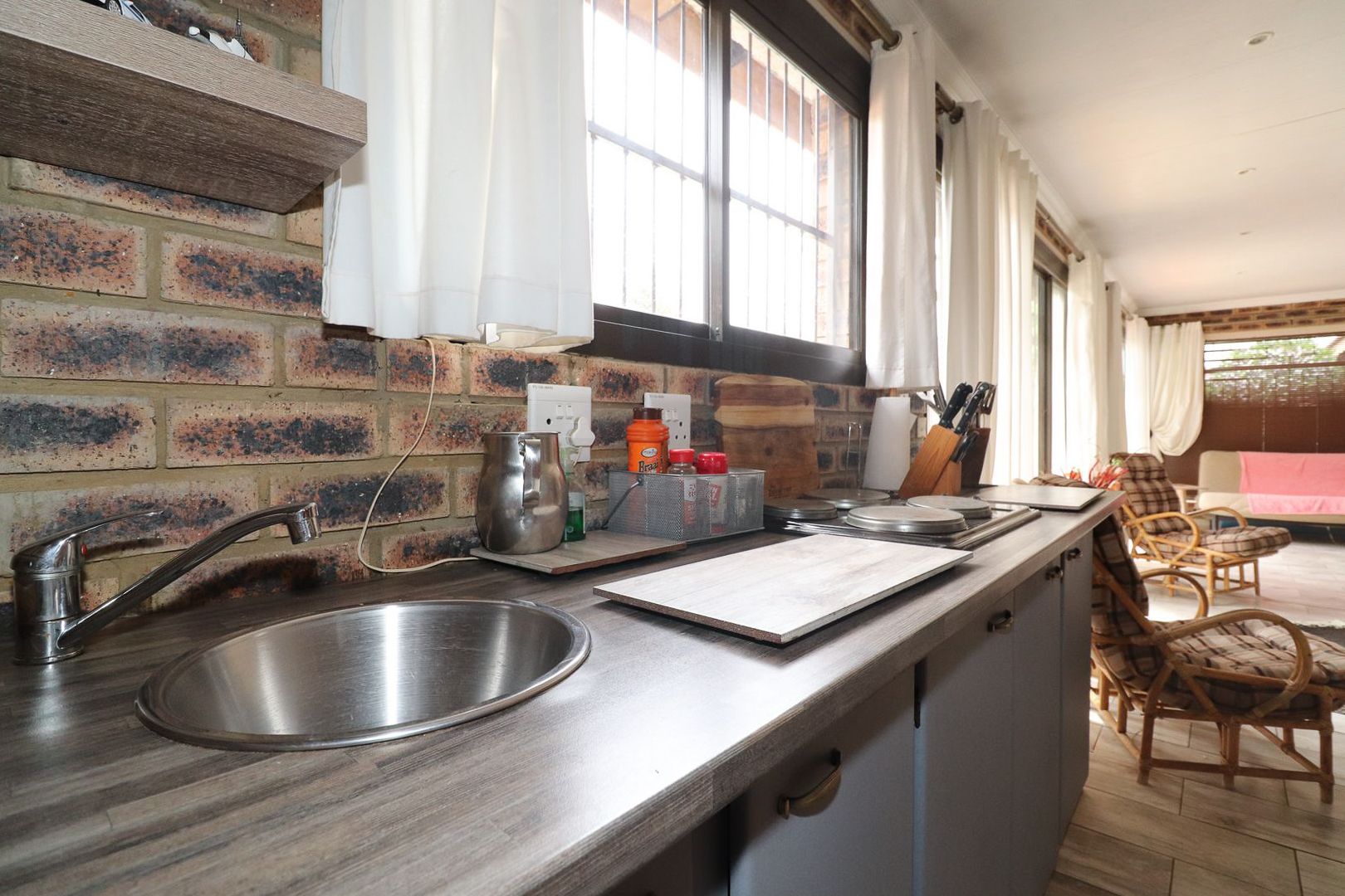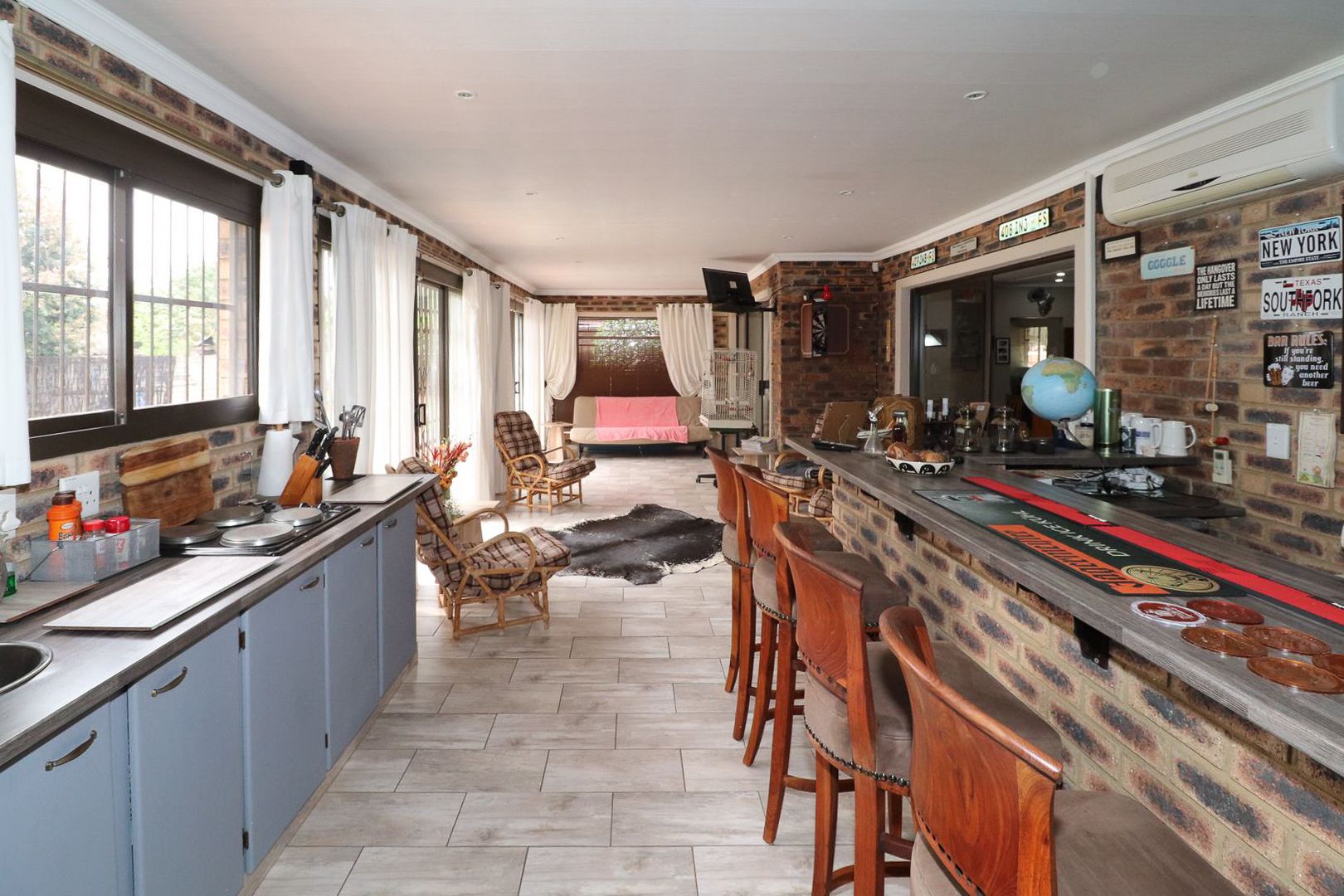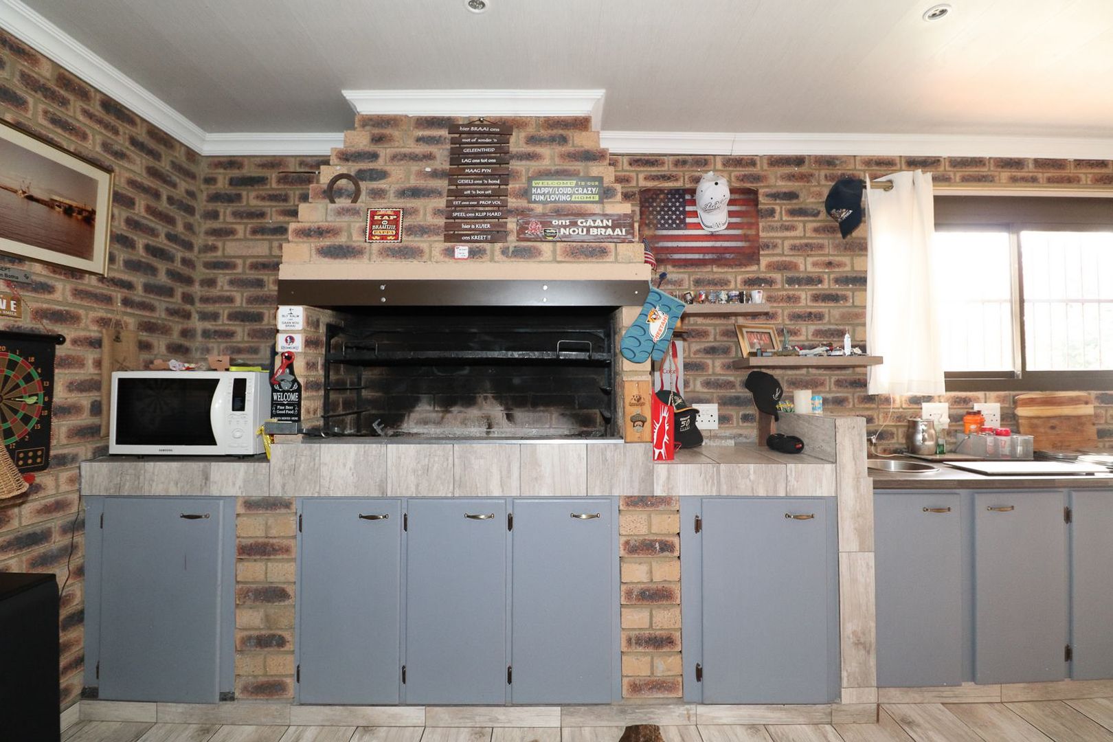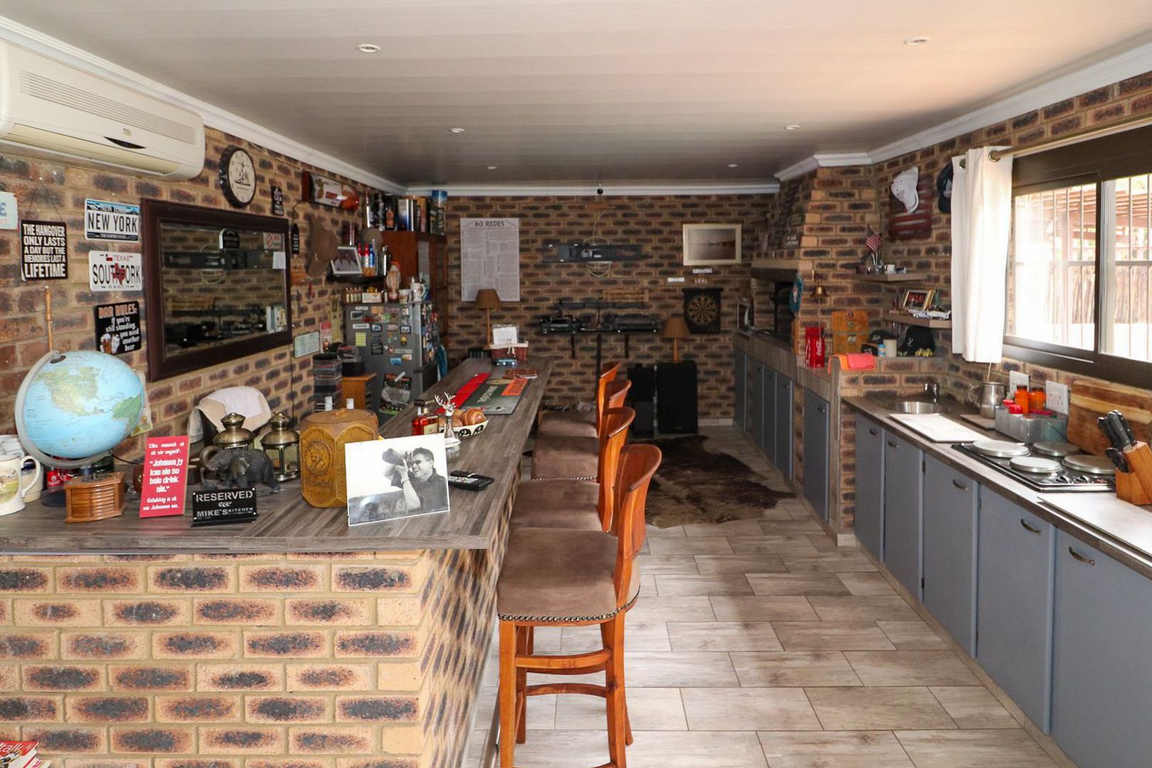This immaculate home in Extension 4, Stilfontein, is a true entertainer's dream, designed with precision and elegance. The open-plan living area seamlessly flows into a well-thought-out indoor entertainment space, complete with sliding doors that open to a beautifully manicured garden and sparkling swimming pool. The entertainment area is fully equipped with a built-in bar, braai, wash basin, and a 4-plate hob - ideal for hosting friends and family year-round.