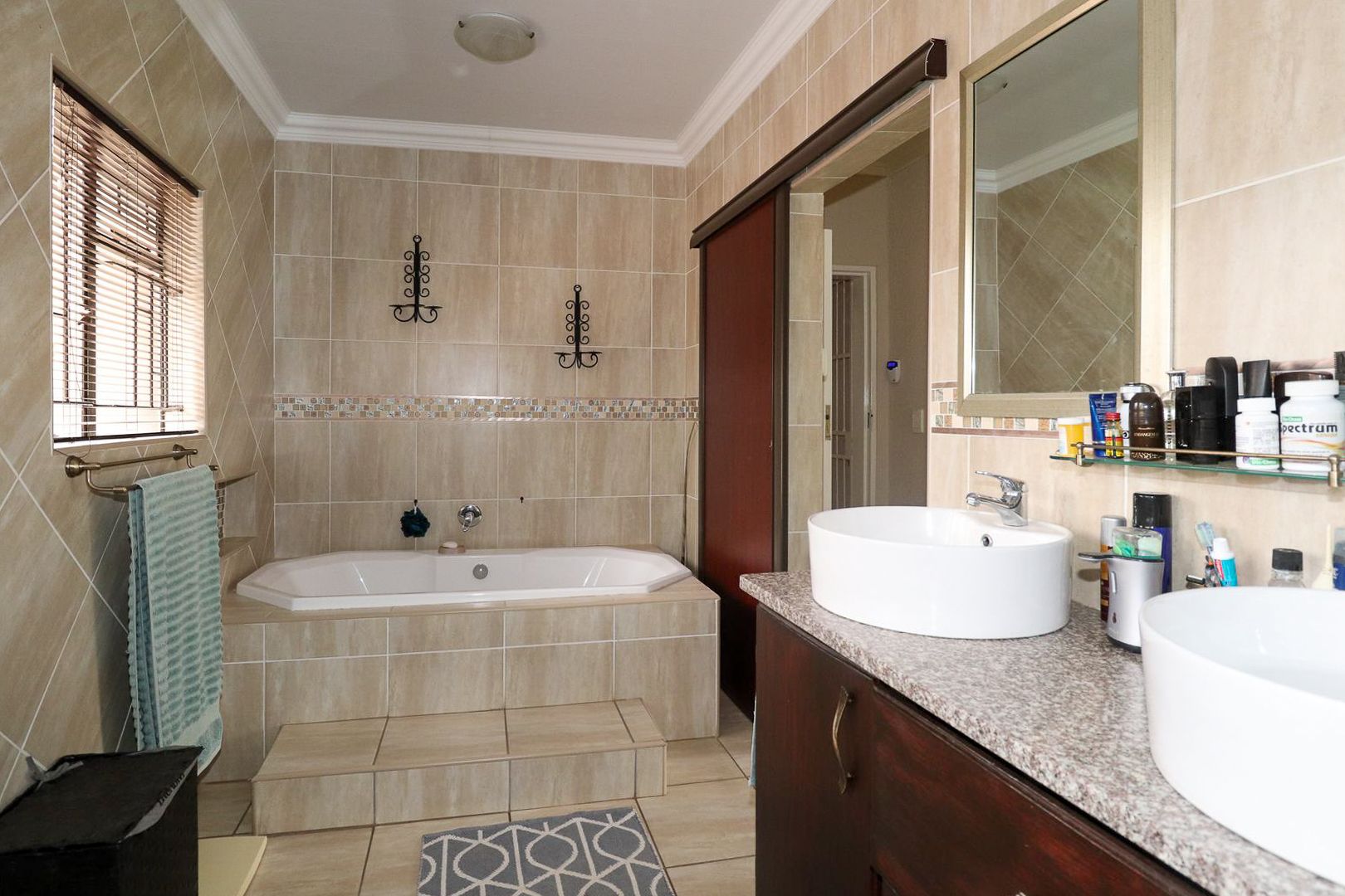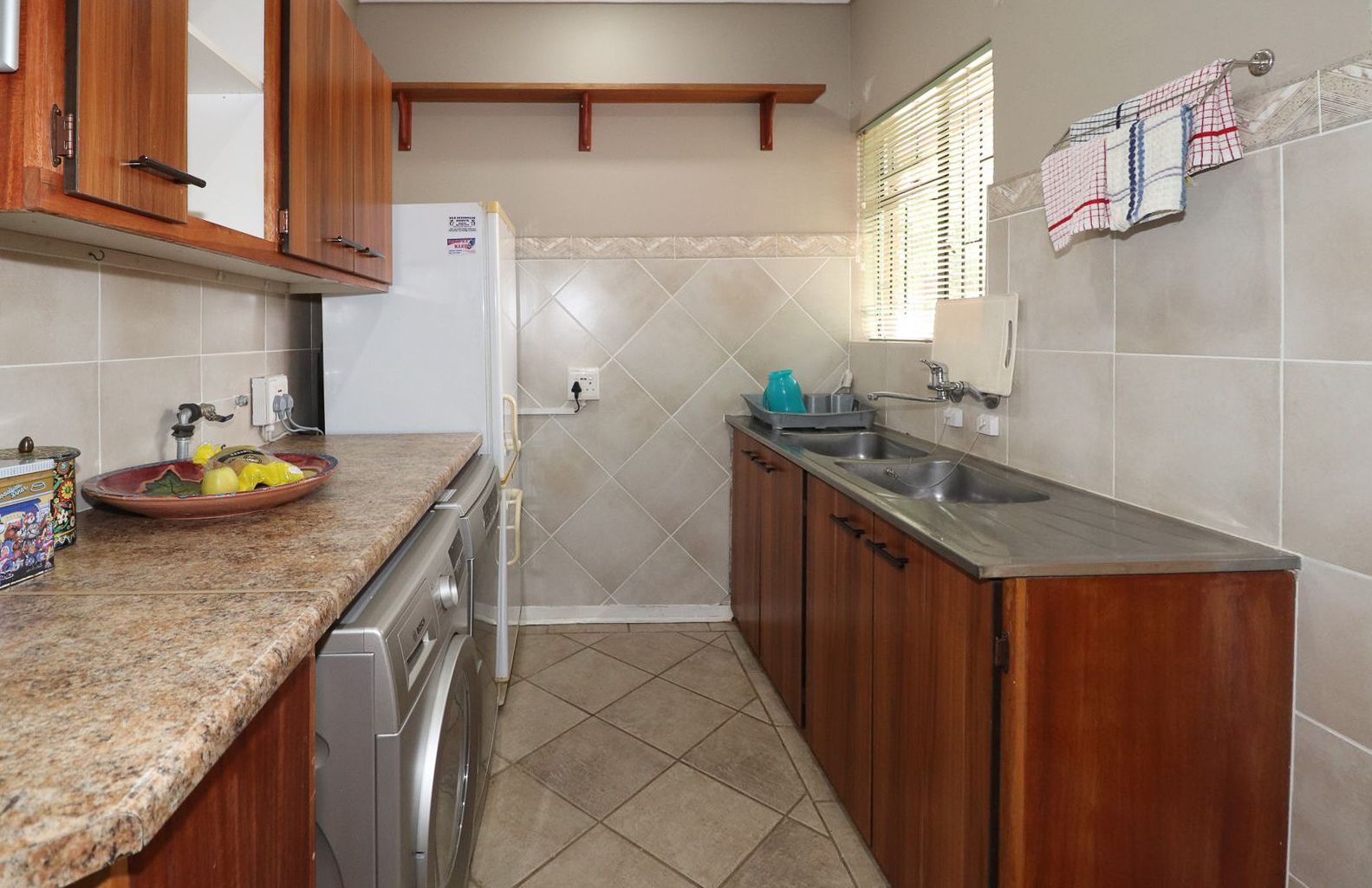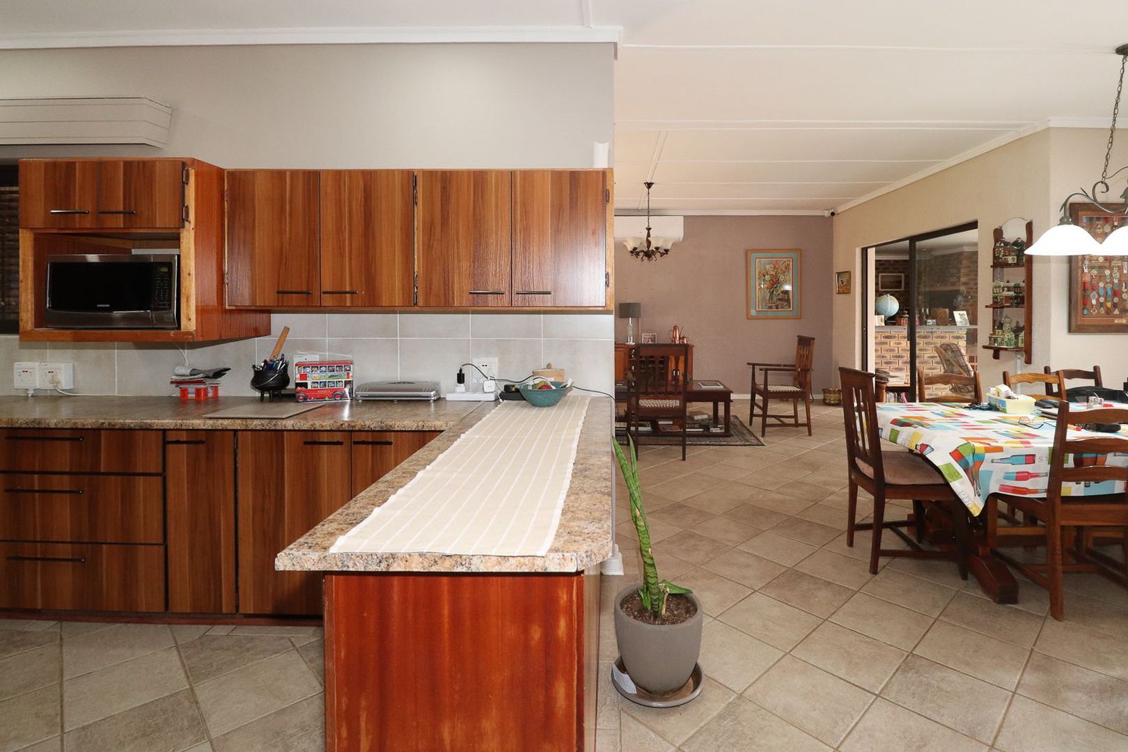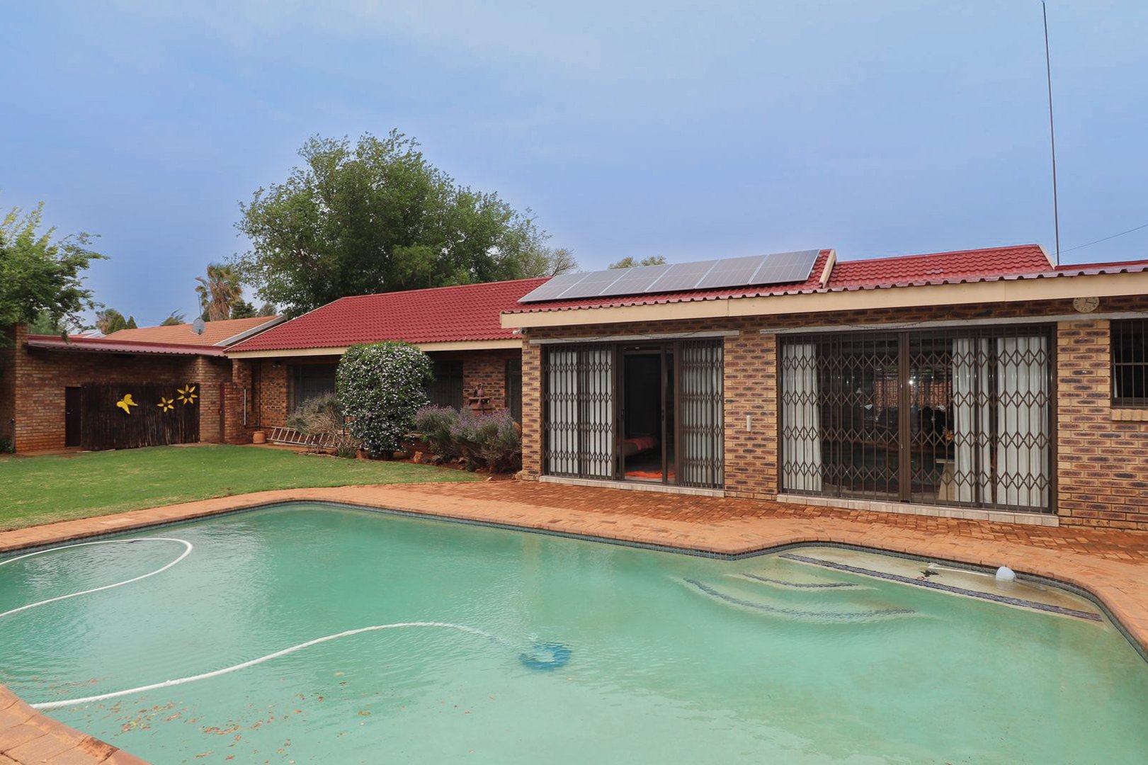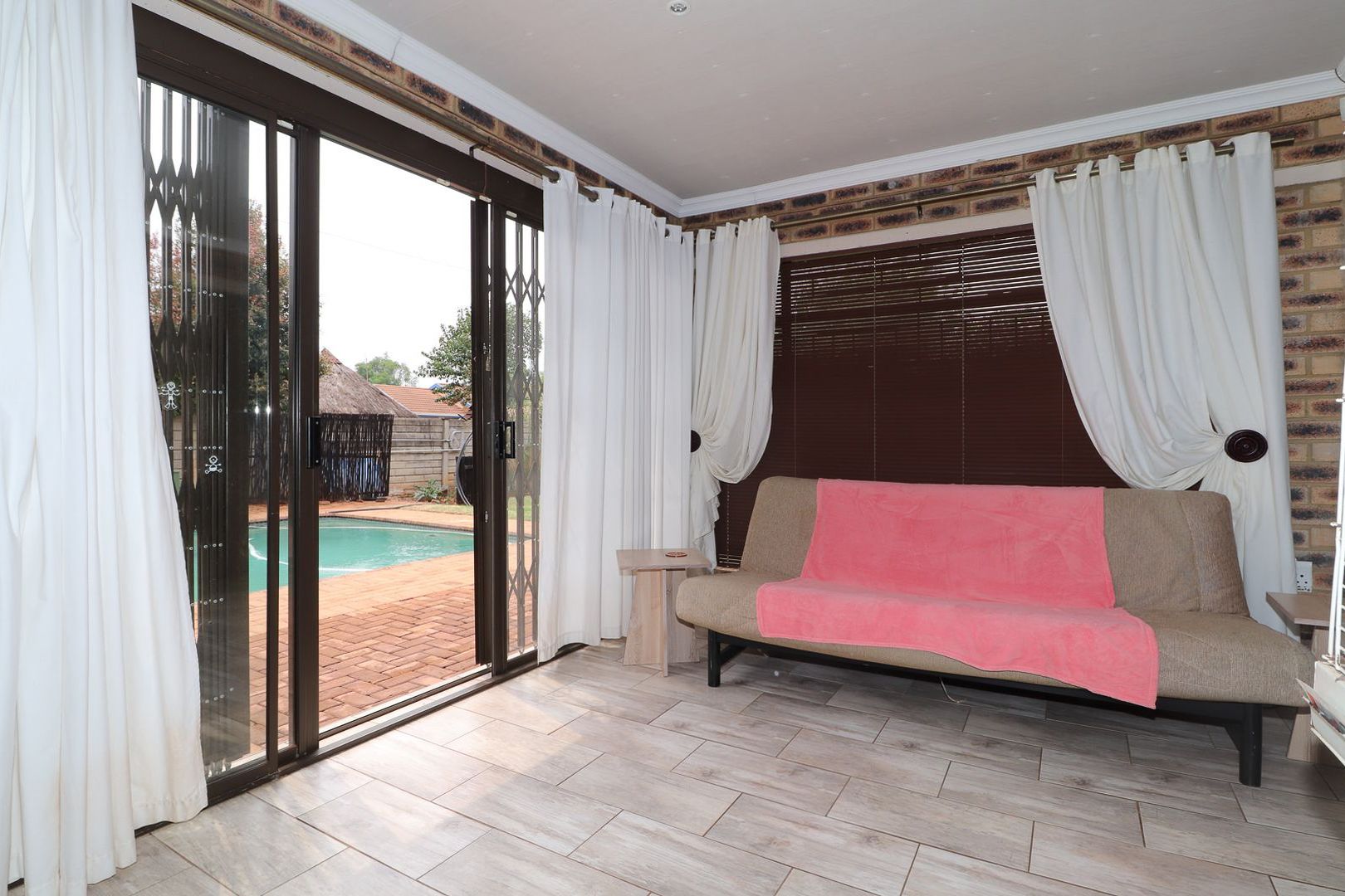 This immaculate home in Extension 4, Stilfontein, is a true entertainer's dream, designed with precision and elegance. The open-plan living area seamlessly flows into a well-thought-out indoor entertainment space, complete with sliding doors that open to a beautifully manicured garden and sparkling swimming pool. The entertainment area is fully equipped with a built-in bar, braai, wash basin, and a 4-plate hob - ideal for hosting friends and family year-round.