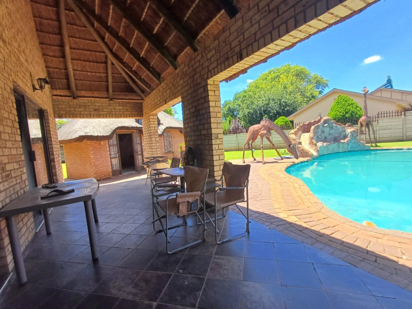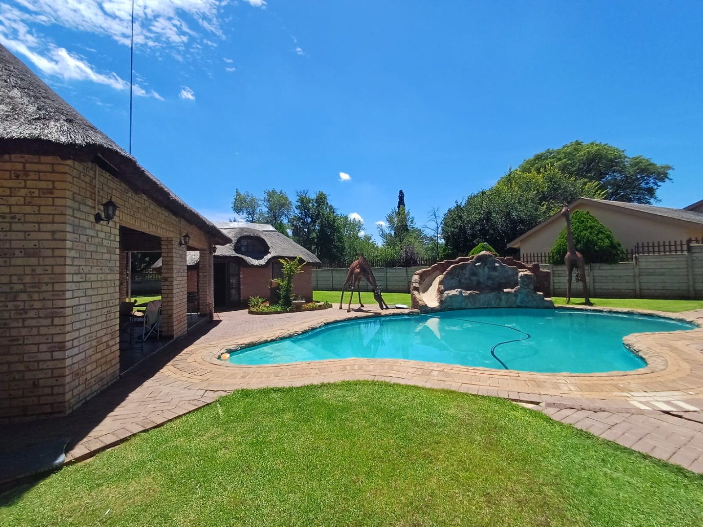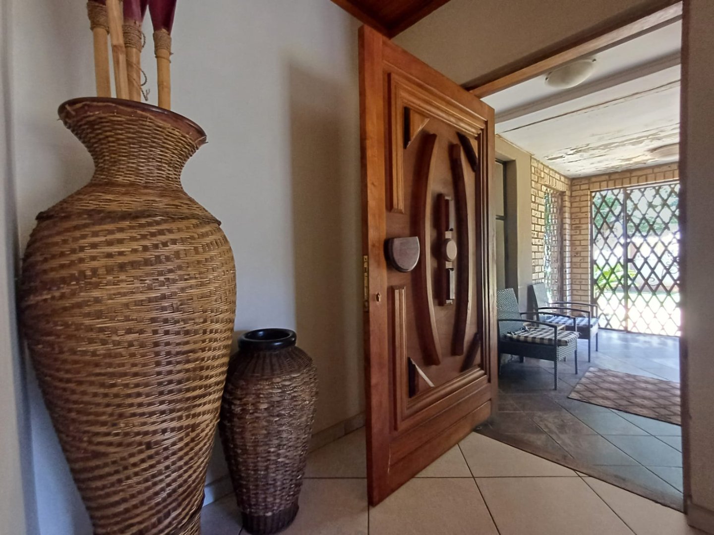 Designed for entertainment, the private swimming pool is complemented by a spacious thatched entertainment room, perfect for gatherings. An additional thatched space is currently used as a gym but can easily be converted into a granny flat. Ample parking is available with two lock-up garages and a carport for at least five vehicles.