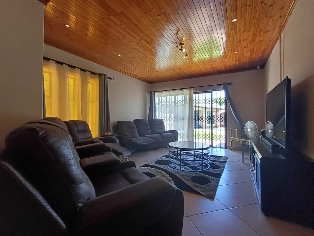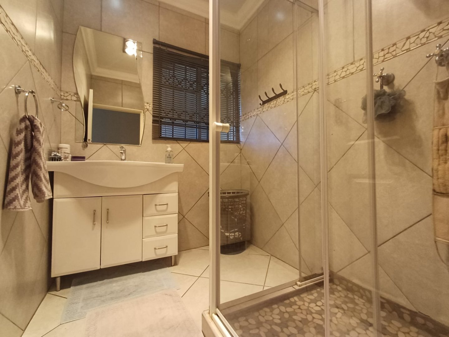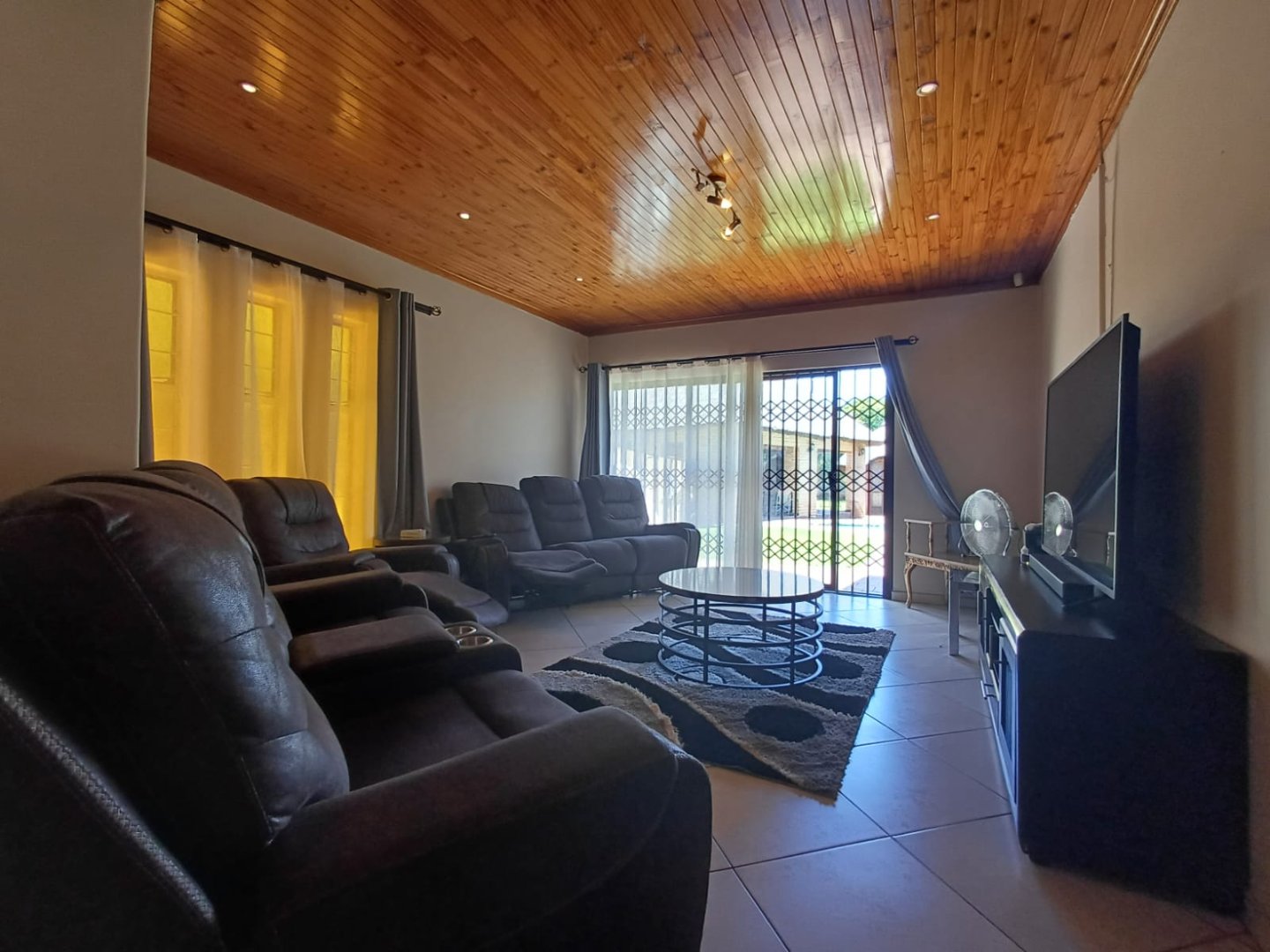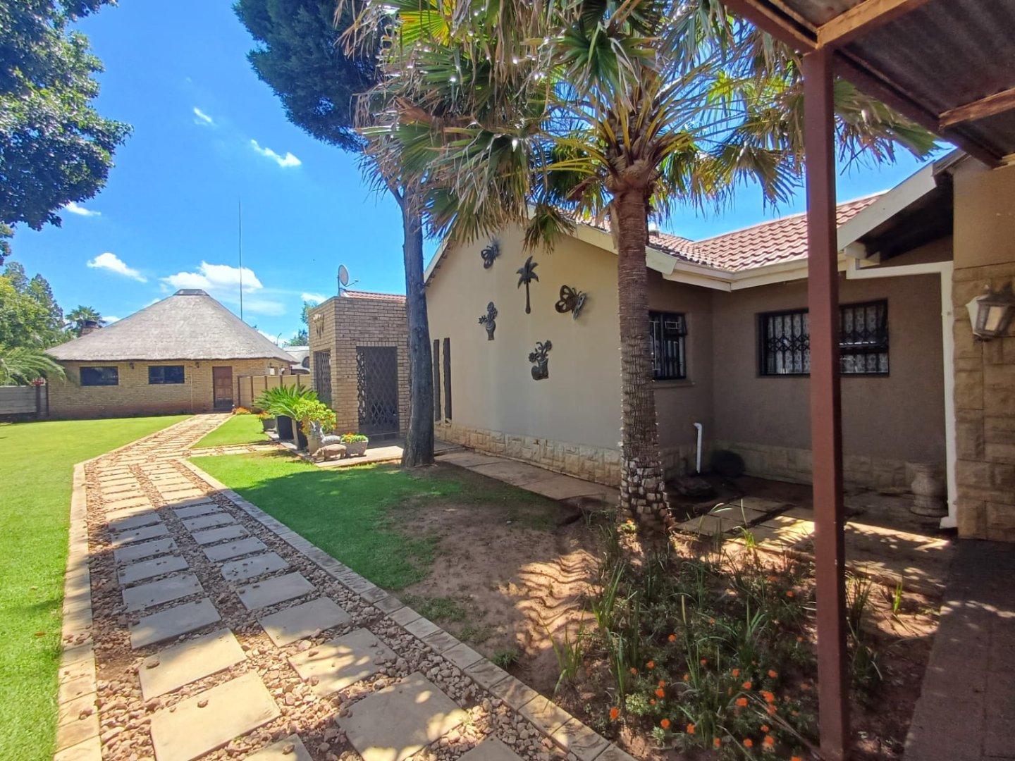 Designed for entertainment, the private swimming pool is complemented by a spacious thatched entertainment room, perfect for gatherings. An additional thatched space is currently used as a gym but can easily be converted into a granny flat. Ample parking is available with two lock-up garages and a carport for at least five vehicles.