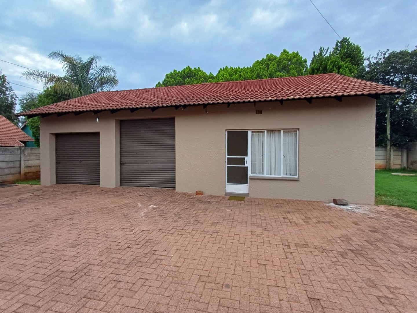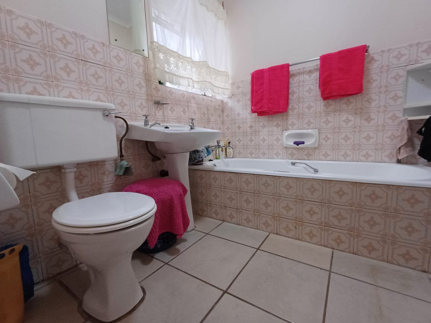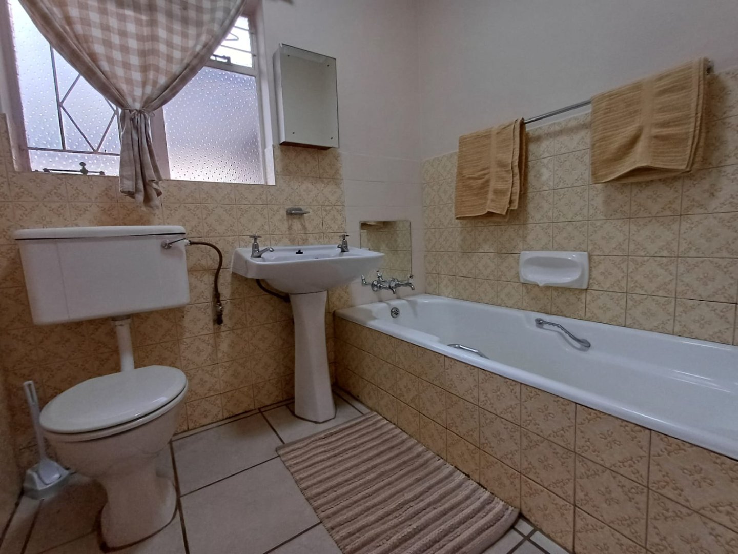 The main house features a separate tiled lounge and dining room, along with a well-equipped kitchen boasting ample wooden built-in cupboards, a stove, eye-level ovens, and a scullery area. The three generously sized bedrooms are tiled, with the main bedroom offering a full en-suite bathroom. A second guest bathroom completes the home.