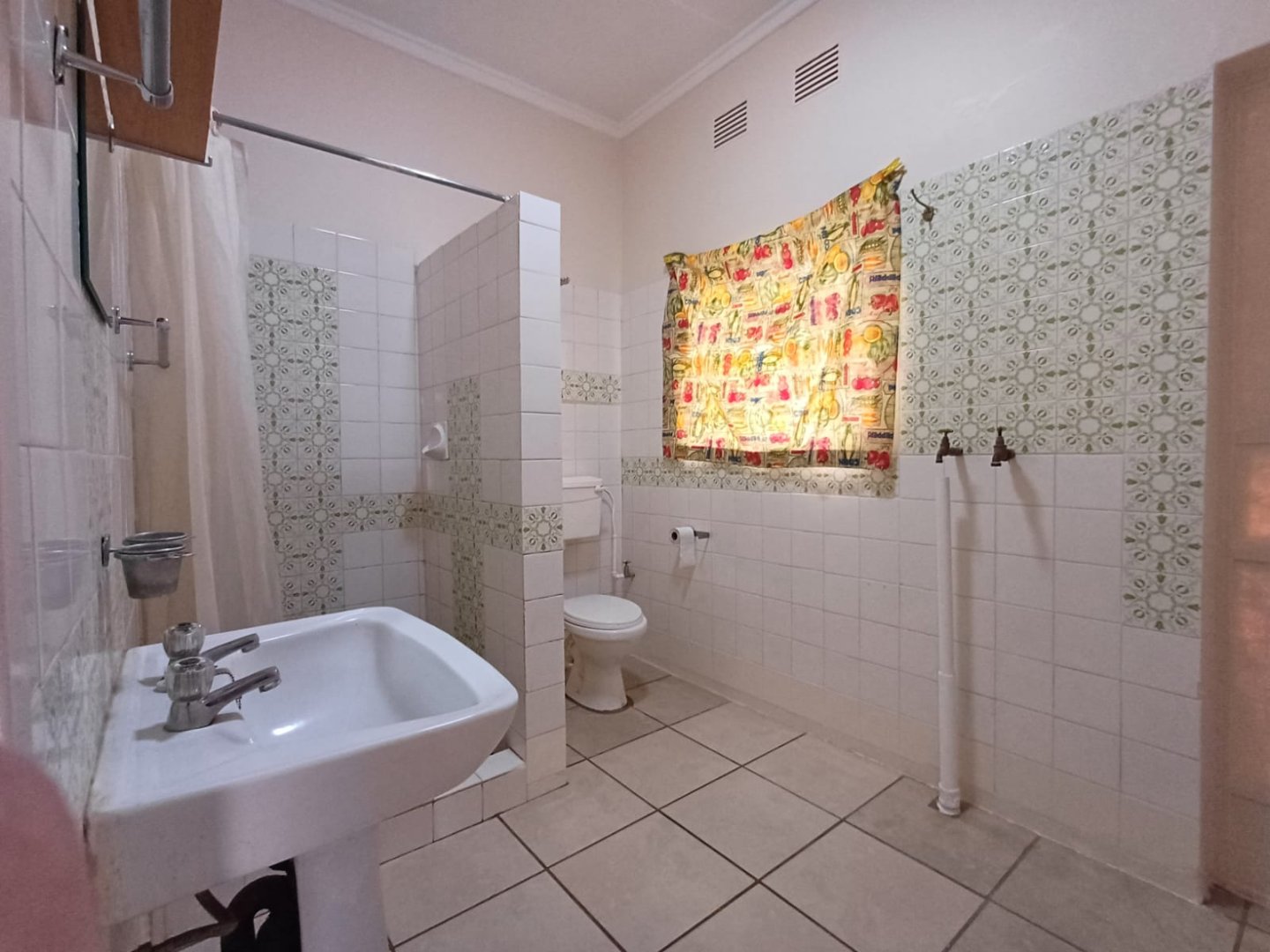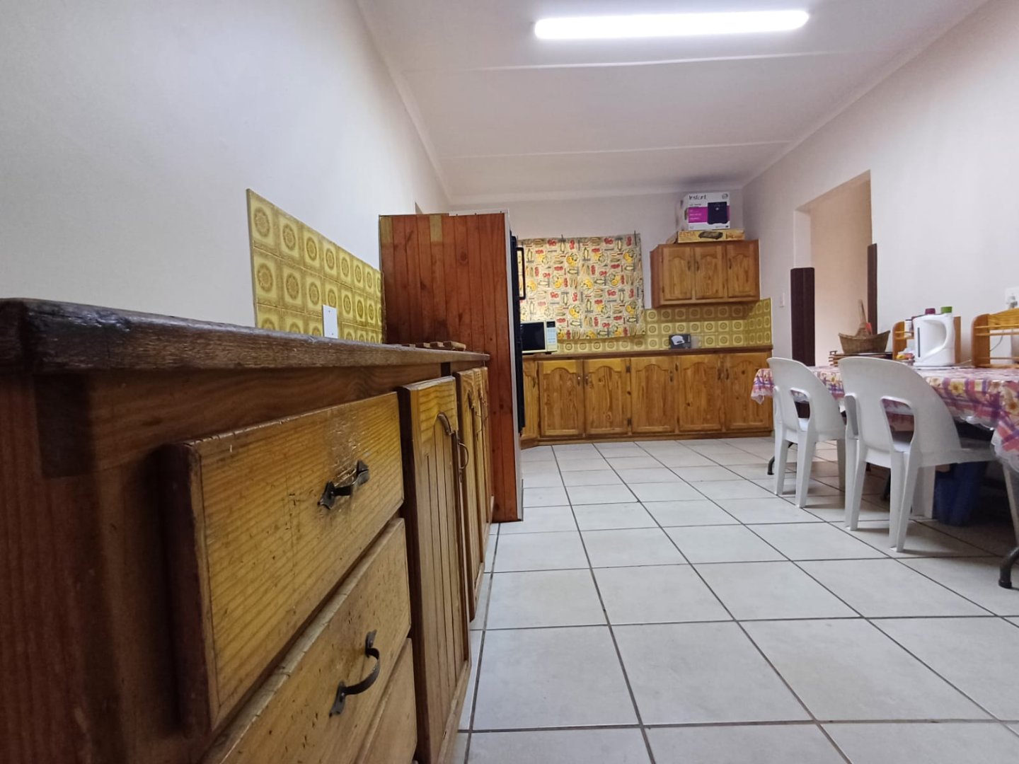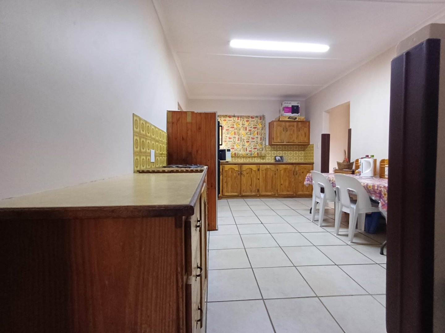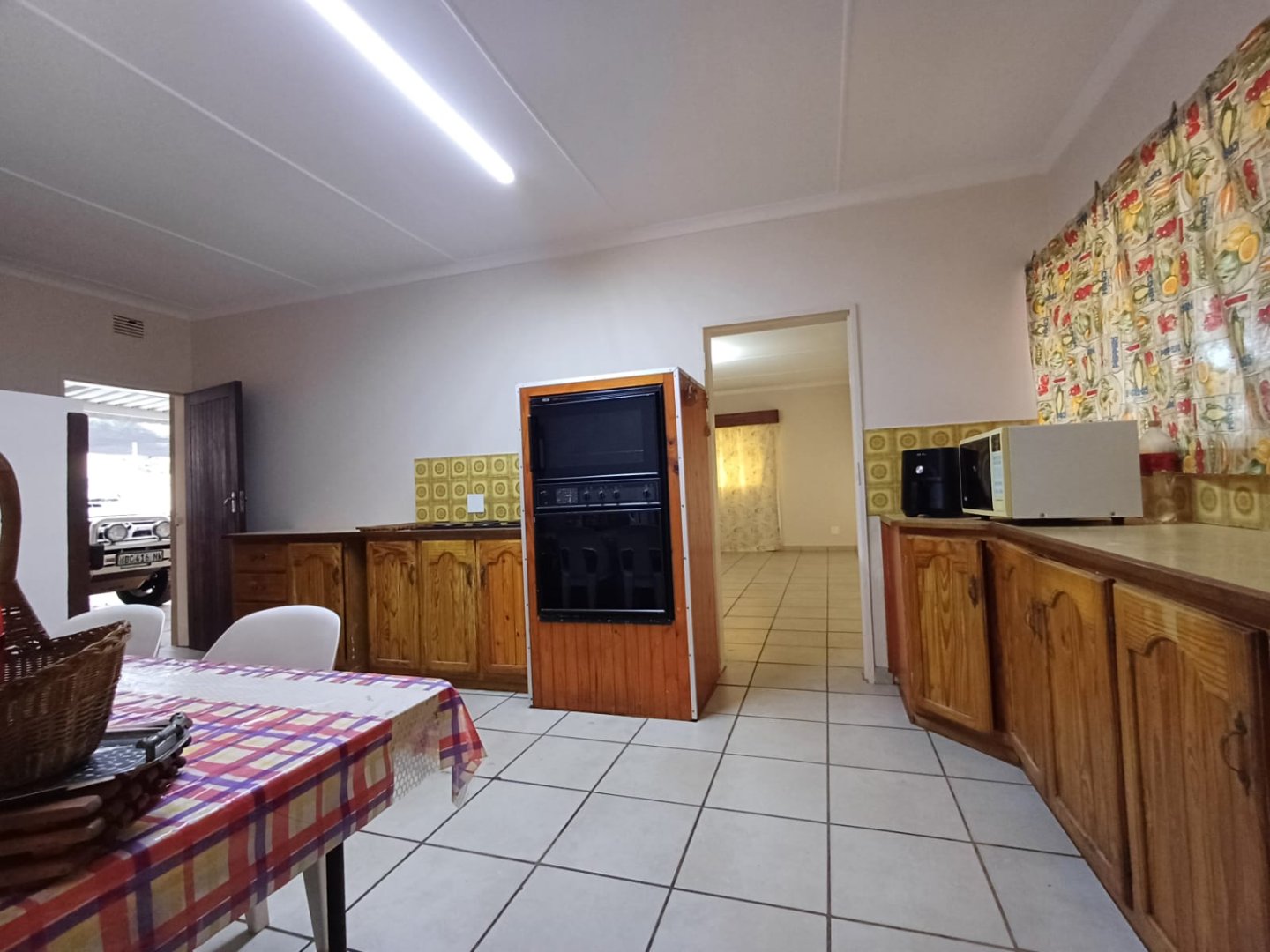 The main house features a separate tiled lounge and dining room, along with a well-equipped kitchen boasting ample wooden built-in cupboards, a stove, eye-level ovens, and a scullery area. The three generously sized bedrooms are tiled, with the main bedroom offering a full en-suite bathroom. A second guest bathroom completes the home.