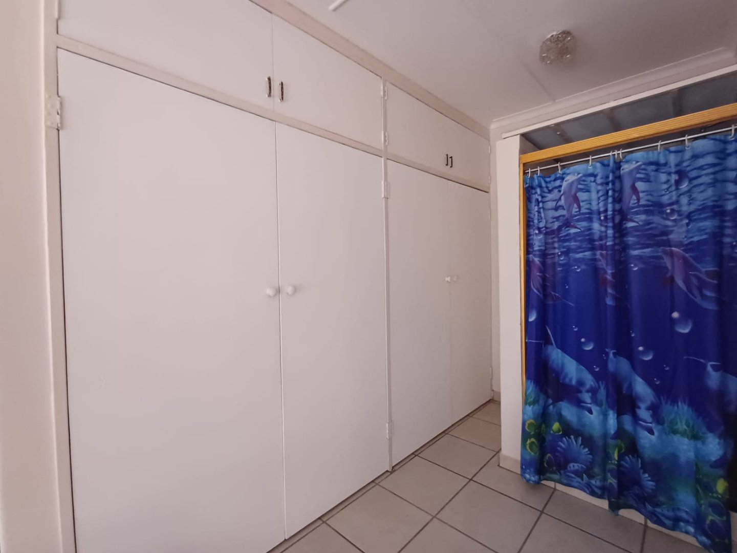 Situated on a manageable 953m2 stand, the property includes a shade net carport for two vehicles, two garages (one large enough for a caravan), burglar bars, safety gates, and prepaid electricity.