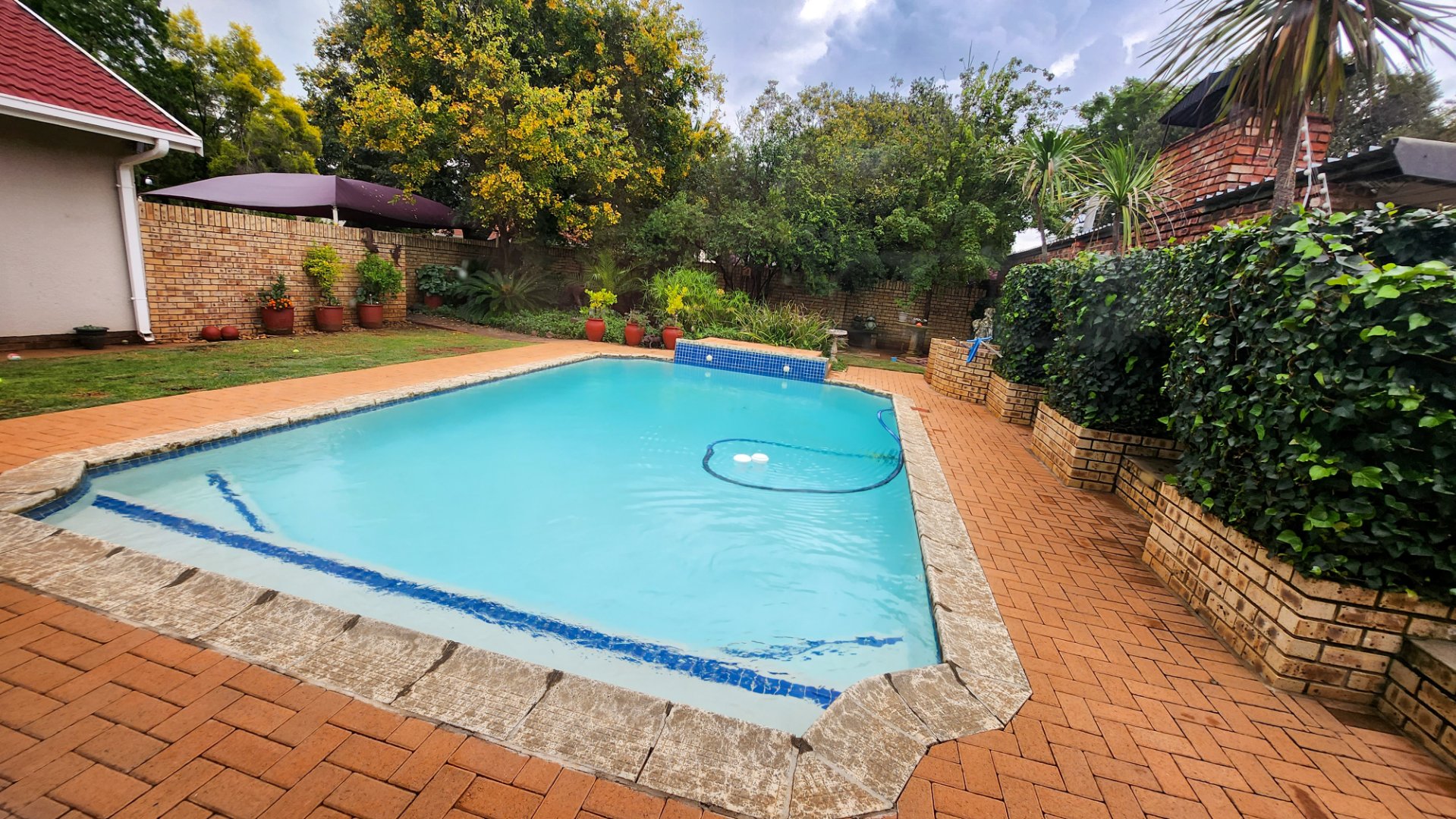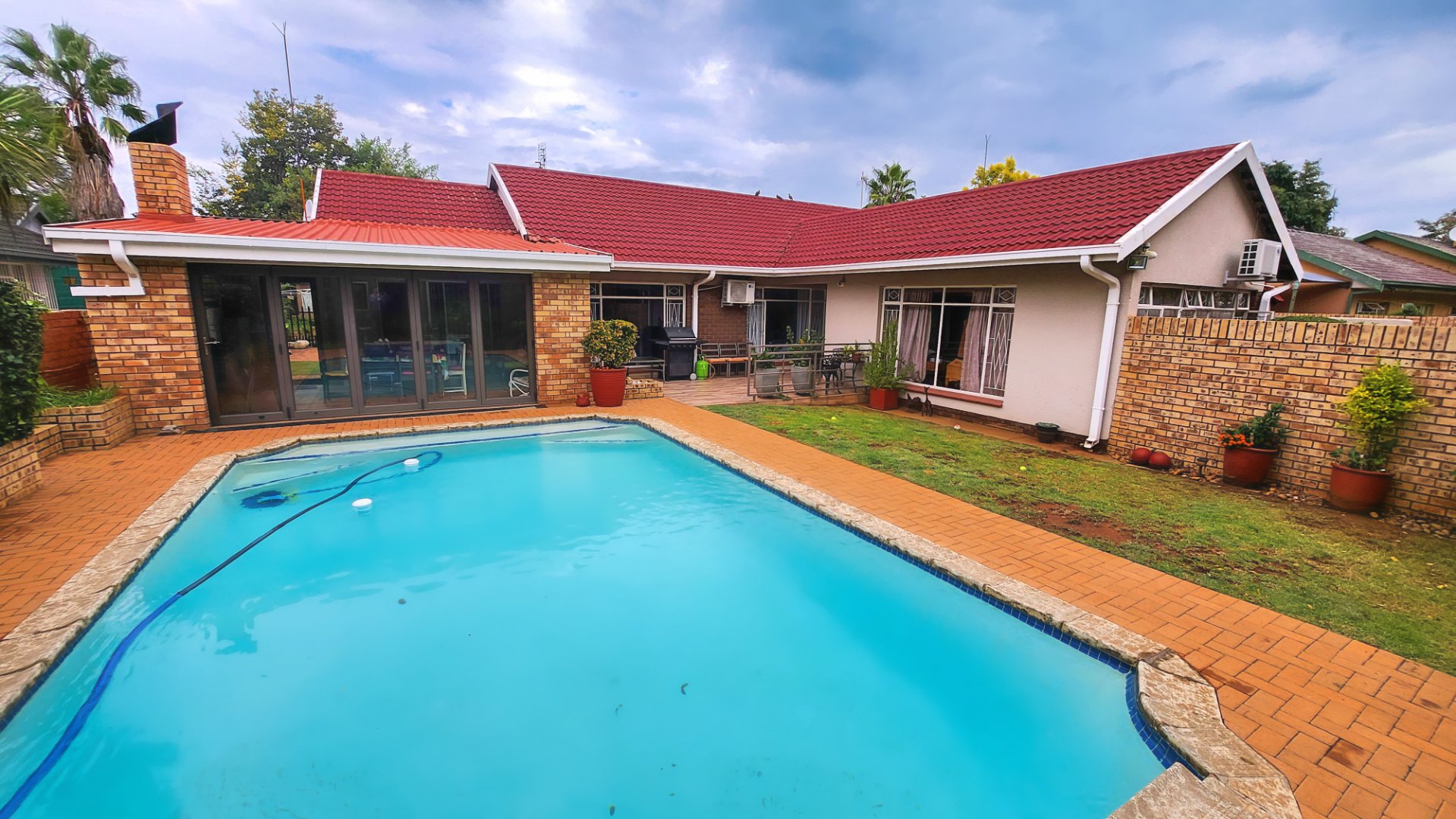 Entertainment is effortless with a dedicated entertainment area, featuring a built-in braai—perfect for hosting friends and family all year round. Step outside to the beautifully maintained garden and take a refreshing dip in the sparkling swimming pool, making warm summer days even more enjoyable.