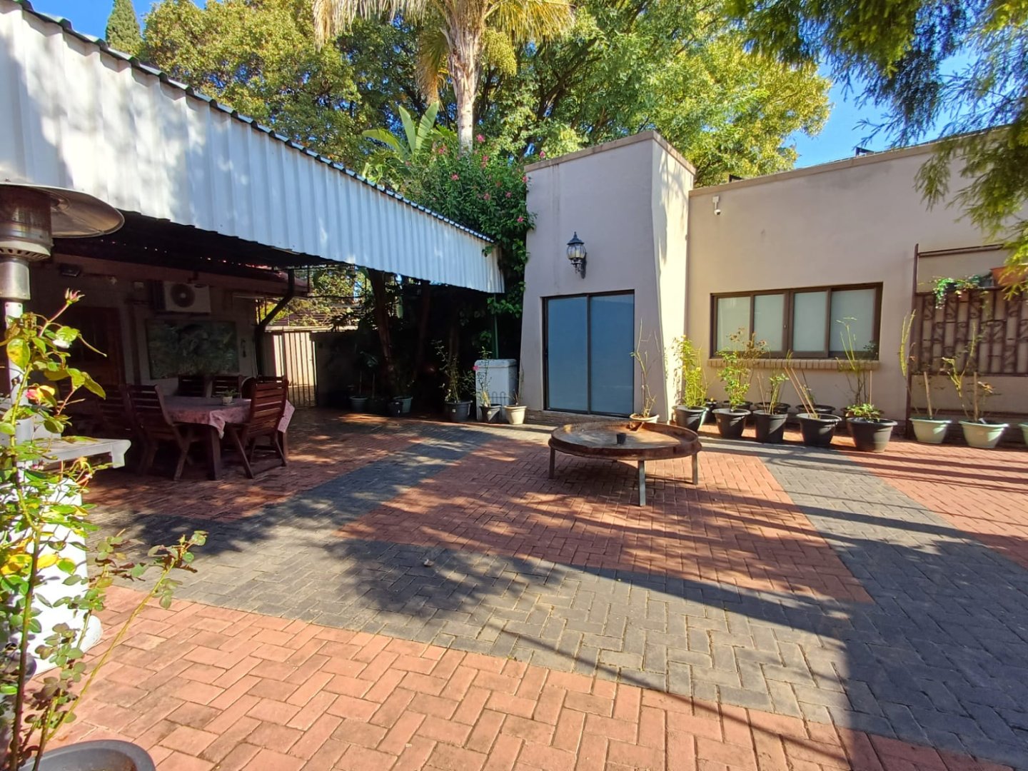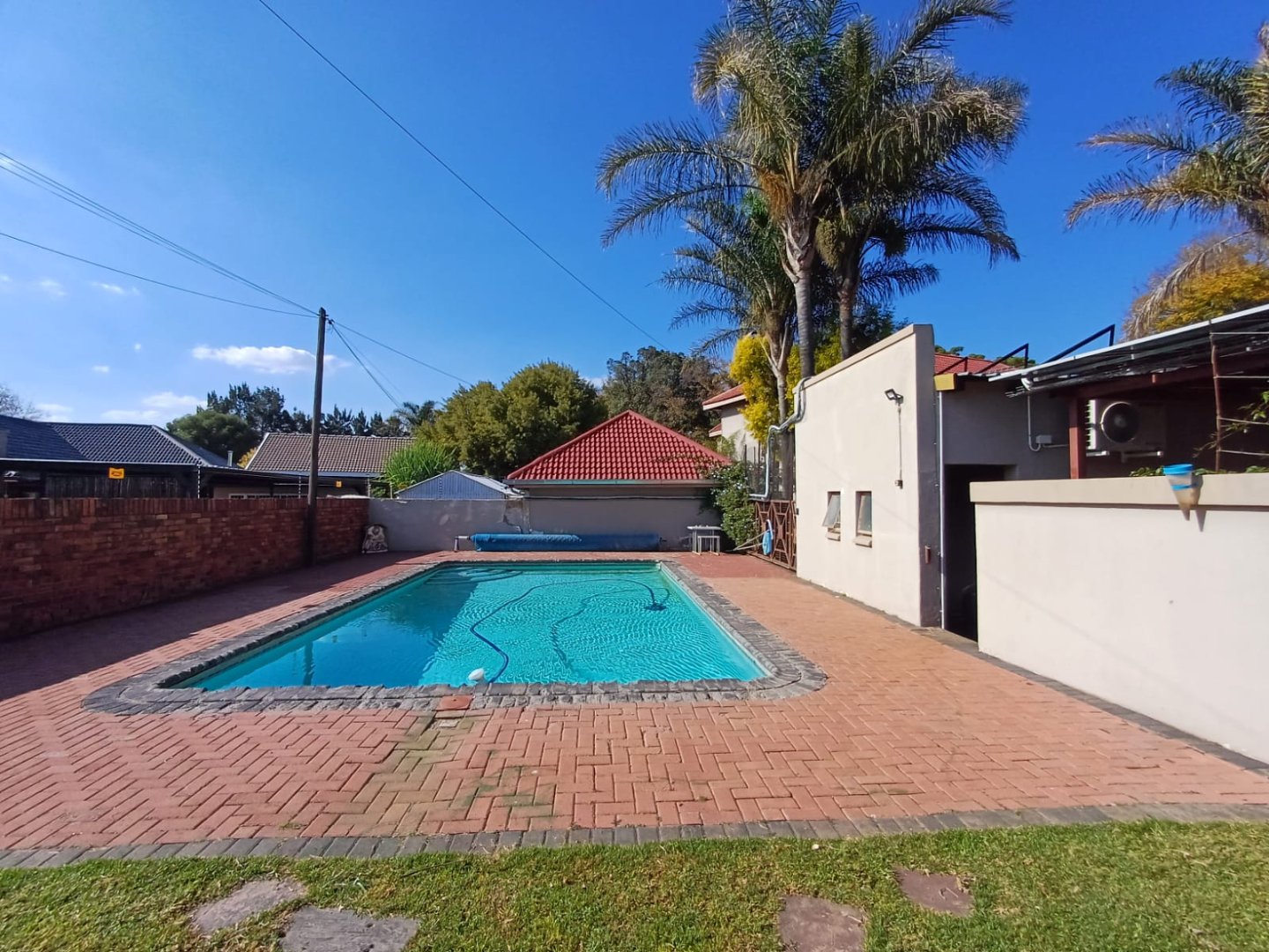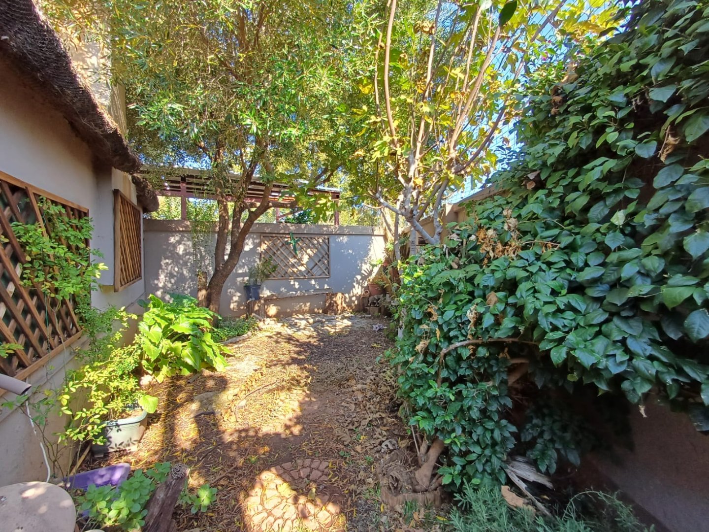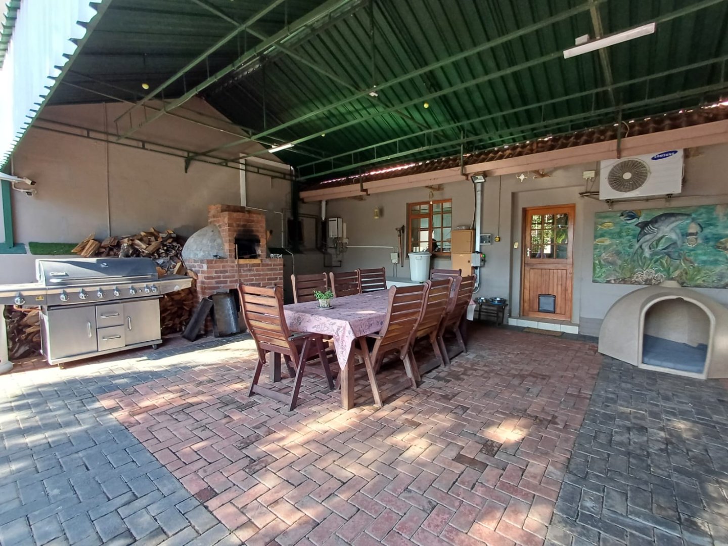 Entertainment is effortless with a thatched lapa featuring a built-in braai and pizza oven, all overlooking a sparkling swimming pool complete with electric heating, fencing, a safety net, and automated cleaning equipment. A separate bachelor flat with air conditioning and a full bathroom offers comfortable private accommodation for guests or a live-in family member.