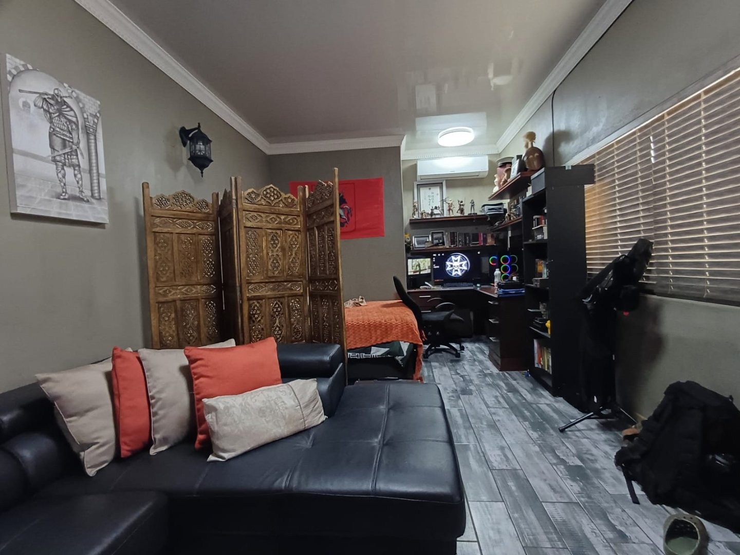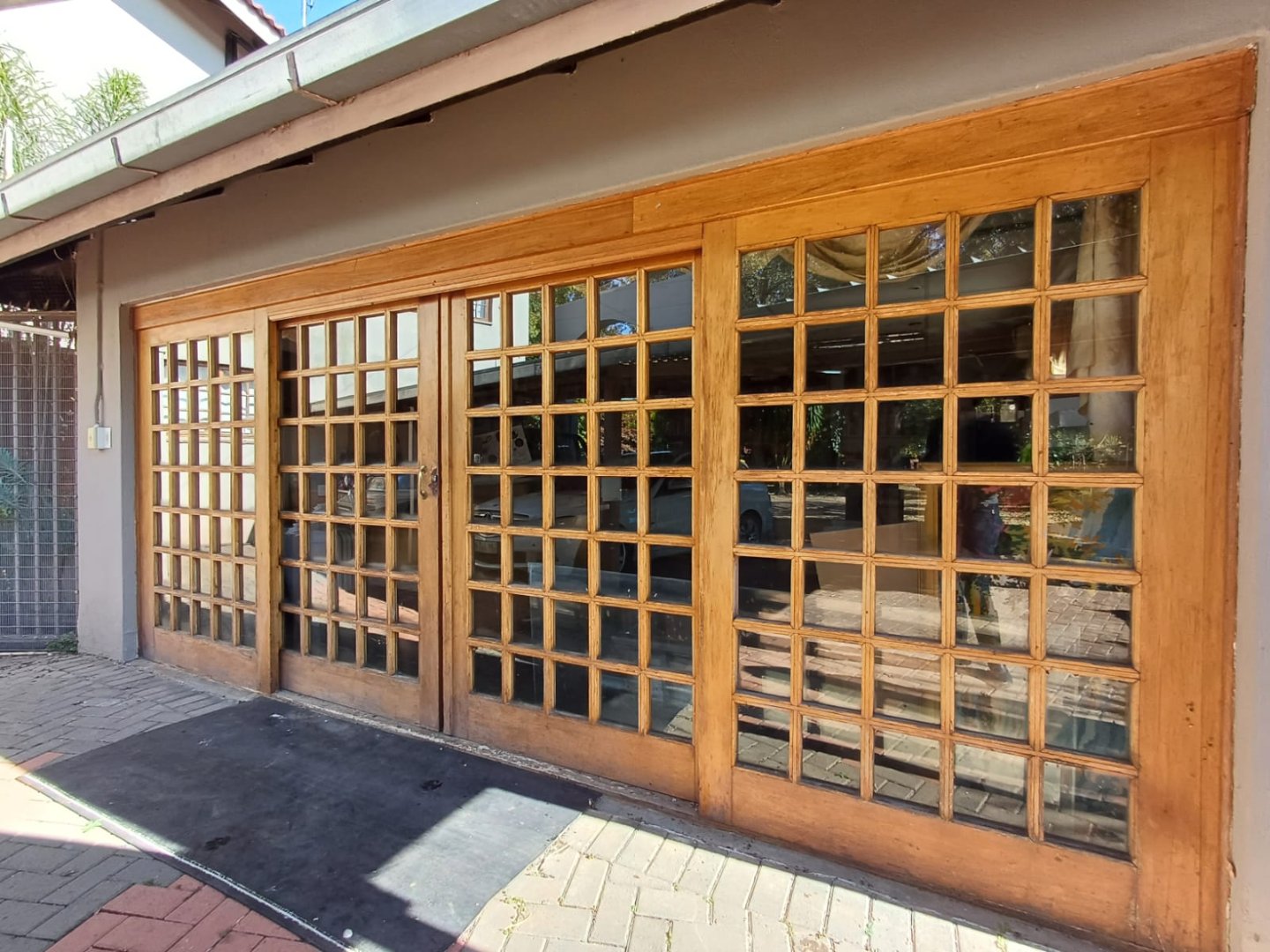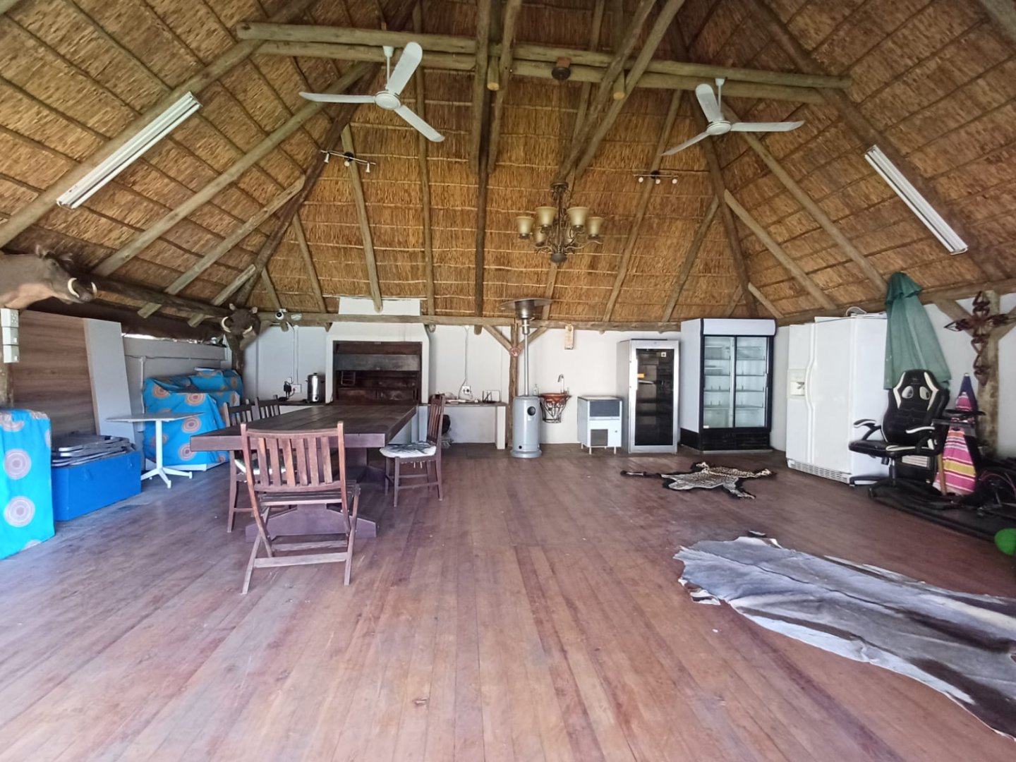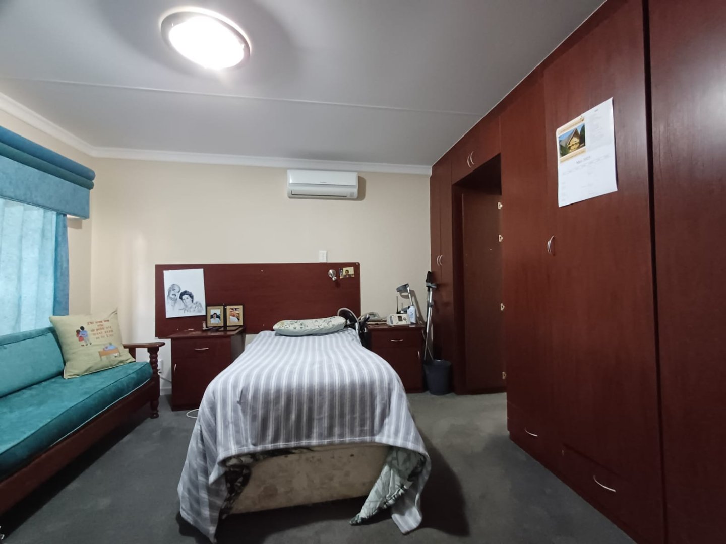 Entertainment is effortless with a thatched lapa featuring a built-in braai and pizza oven, all overlooking a sparkling swimming pool complete with electric heating, fencing, a safety net, and automated cleaning equipment. A separate bachelor flat with air conditioning and a full bathroom offers comfortable private accommodation for guests or a live-in family member.