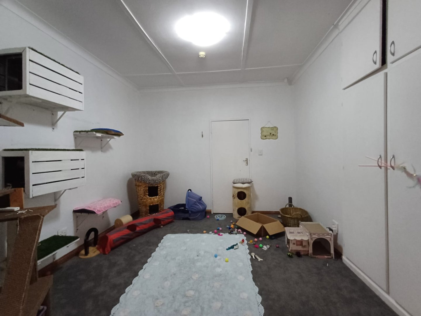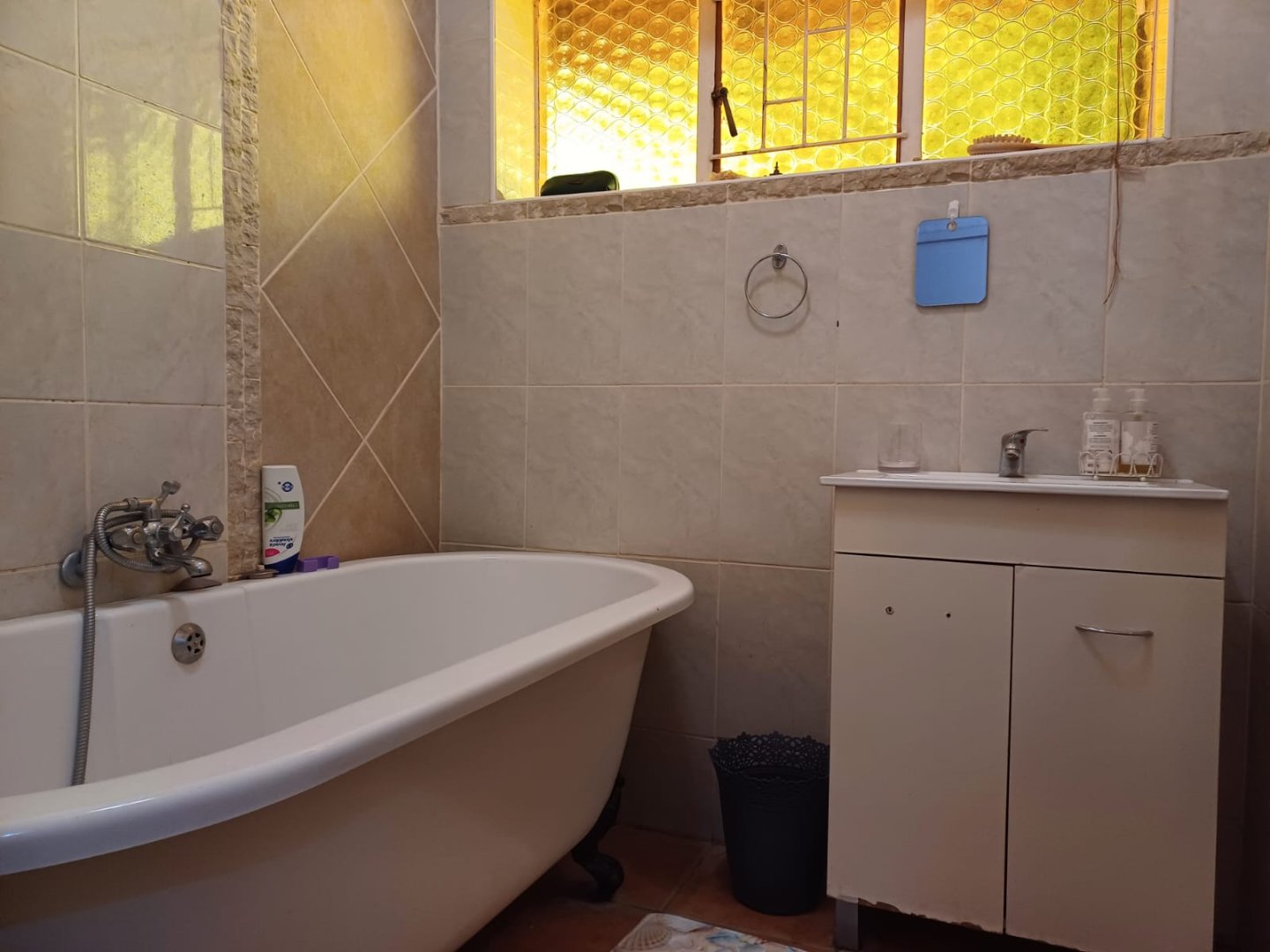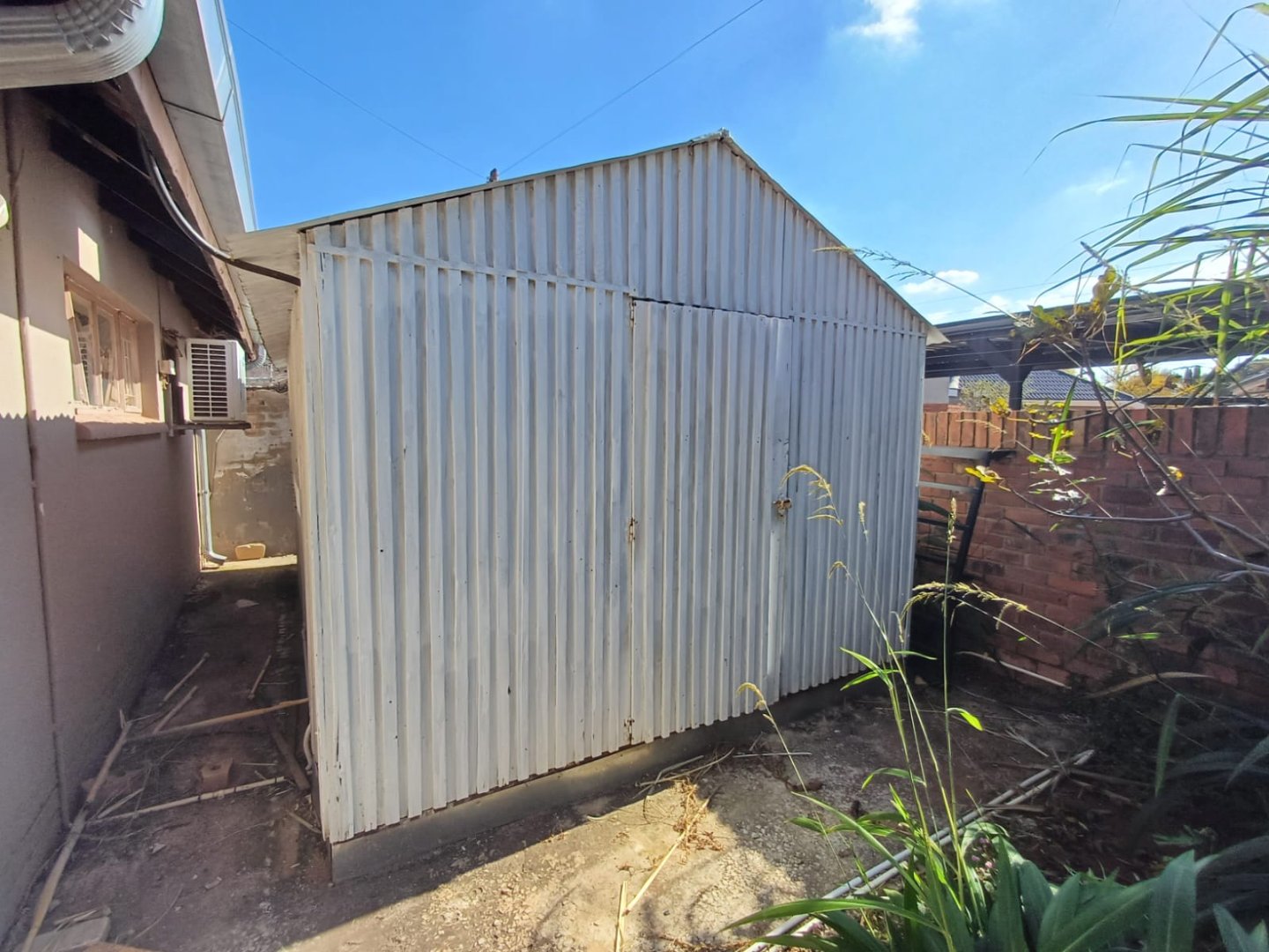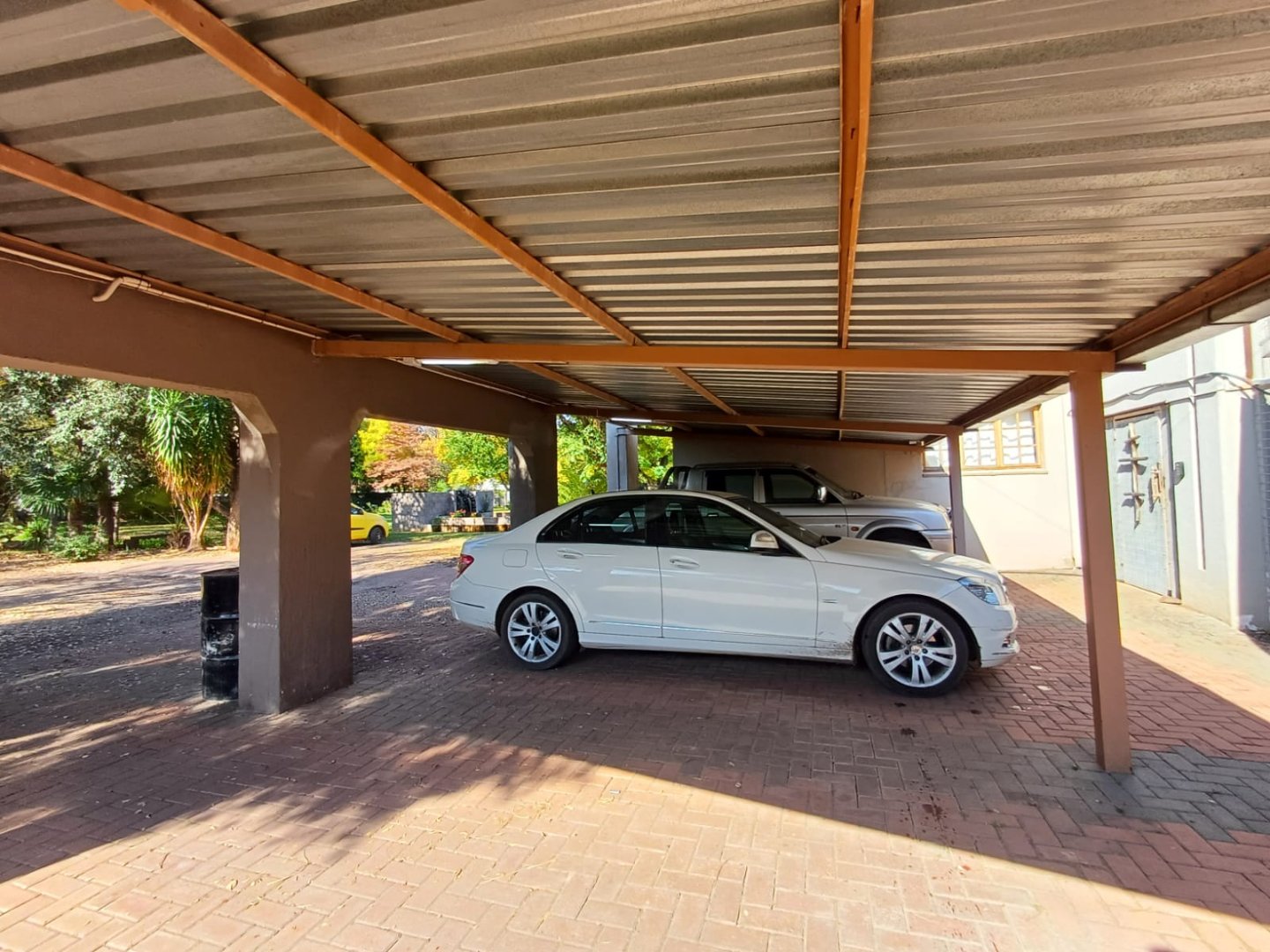 Security is paramount, with features including electric fencing, outdoor and indoor beams, alarm system, 24-hour armed response, security gates, burglar bars, and a 1.8-metre perimeter wall. Additional conveniences include a carport for three vehicles, a domestic bathroom, a Wendy house, and prepaid electricity.