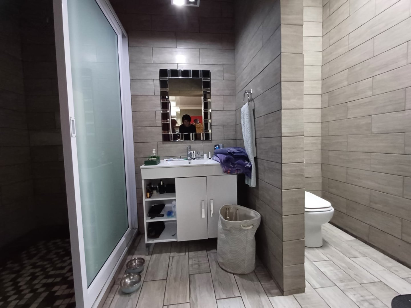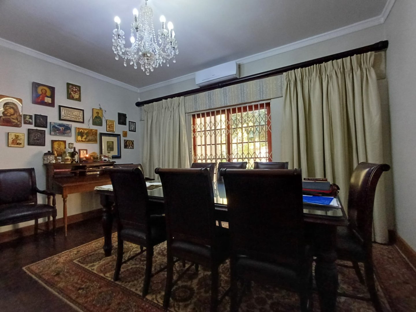 The ground floor offers generous living spaces including a lounge, dining room, and private study. A beautiful library and a fully equipped gym room provide ideal spaces for leisure and wellness. The heart of the home is the modern kitchen, fitted with granite tops, a centre island, gas hob, scullery, and a separate laundry area, all complemented by air conditioning and sleek tiled floors.