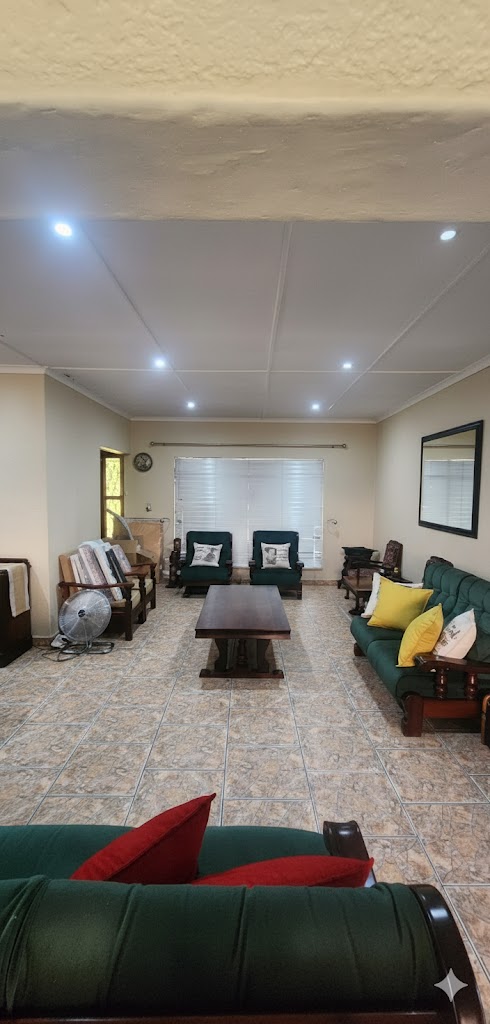 Expansive lounge and entertainment area flowing into a tiled lapa-style entertainment space, perfect for hosting
