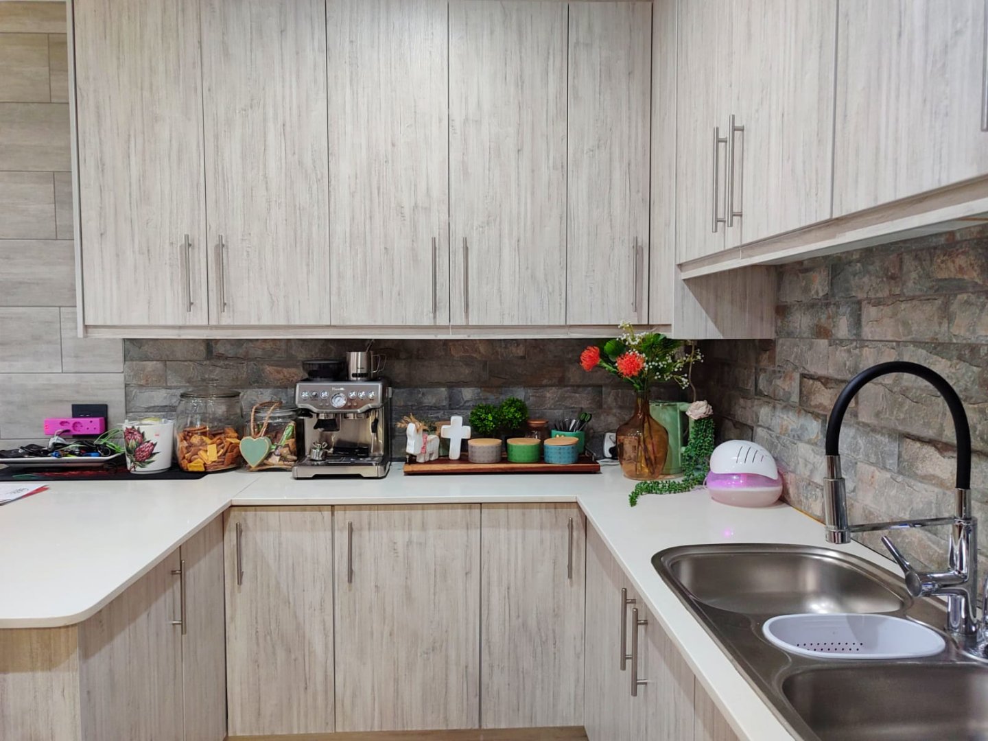 This home truly stands out with its impressive sustainability features: 20 solar panels, 2 x 5kVA inverters, 4 lithium batteries, borehole, 10 000L JoJo tank, and automated irrigation system.