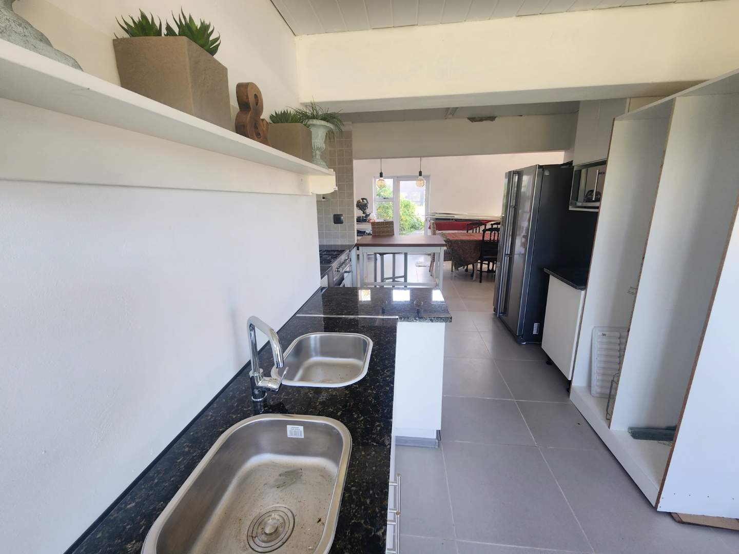 Another open plan living area complete with kitchen, built in-braai and its own entrance may be used as a separate guest bedroom wing or granny flat.