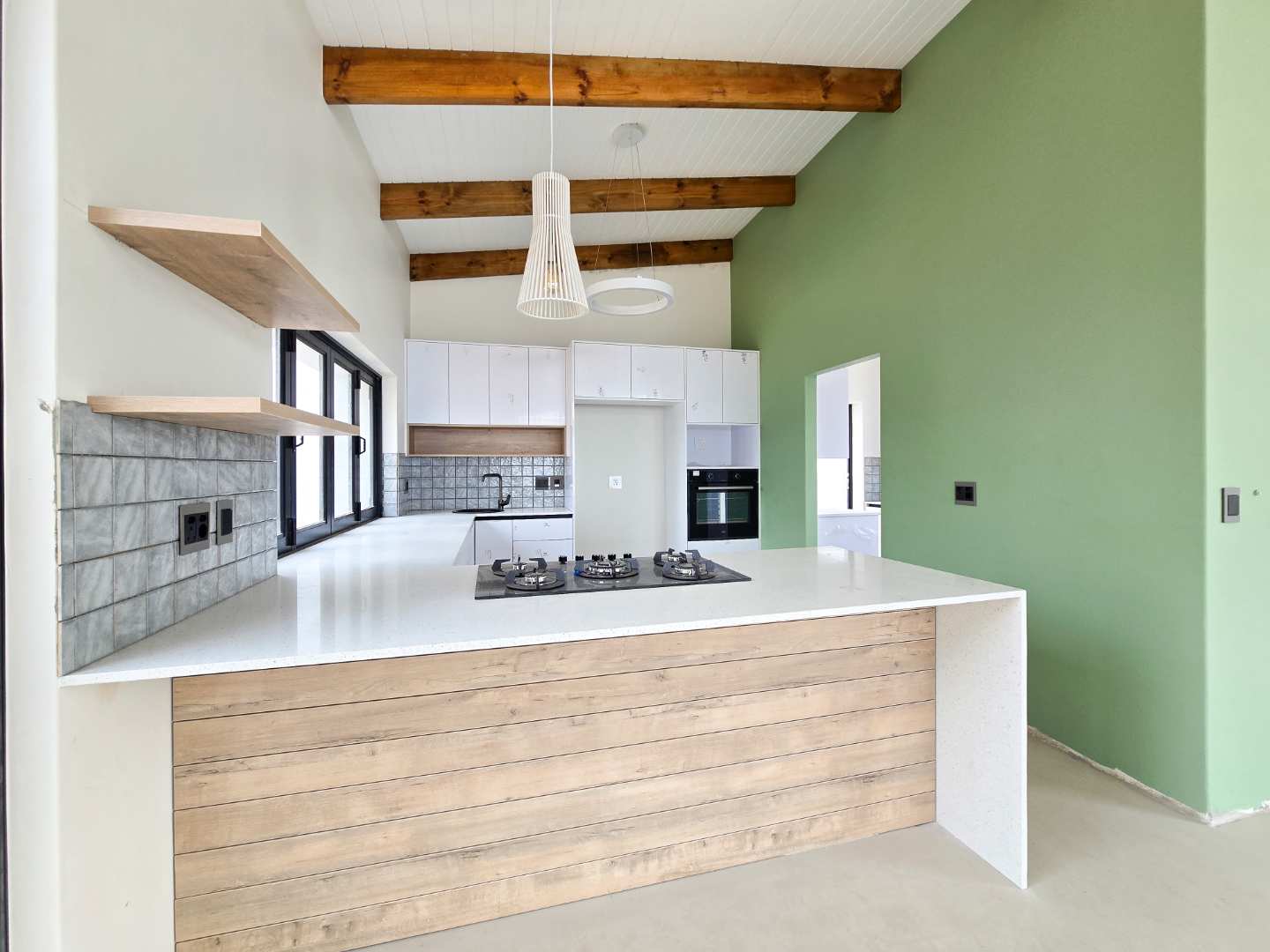 The heart of the home is a spacious open-plan living area, seamlessly combining style and functionality. The ultra-modern kitchen is a chef’s delight, featuring a striking granite-topped island that doubles as a breakfast counter, a gas hob, quality finishes, and a separate scullery for effortless entertaining. Flowing naturally from the kitchen are the lounge and dining areas, complemented by a separate family room ideal for relaxed living.