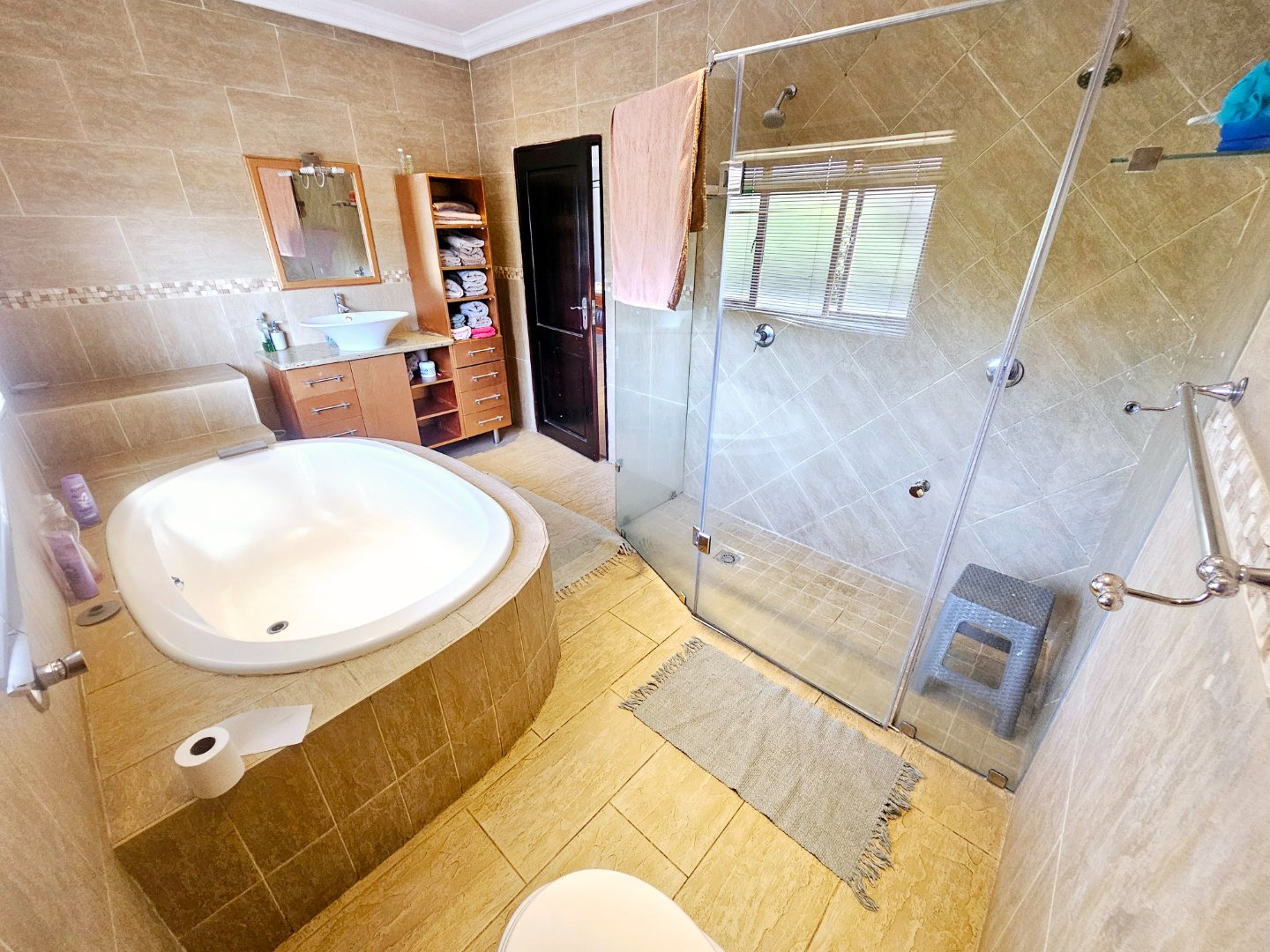 This home has 6 spacious bedrooms and 4.5 Bathrooms. It has 4 en-suites + an en-suite Domestic quarters.