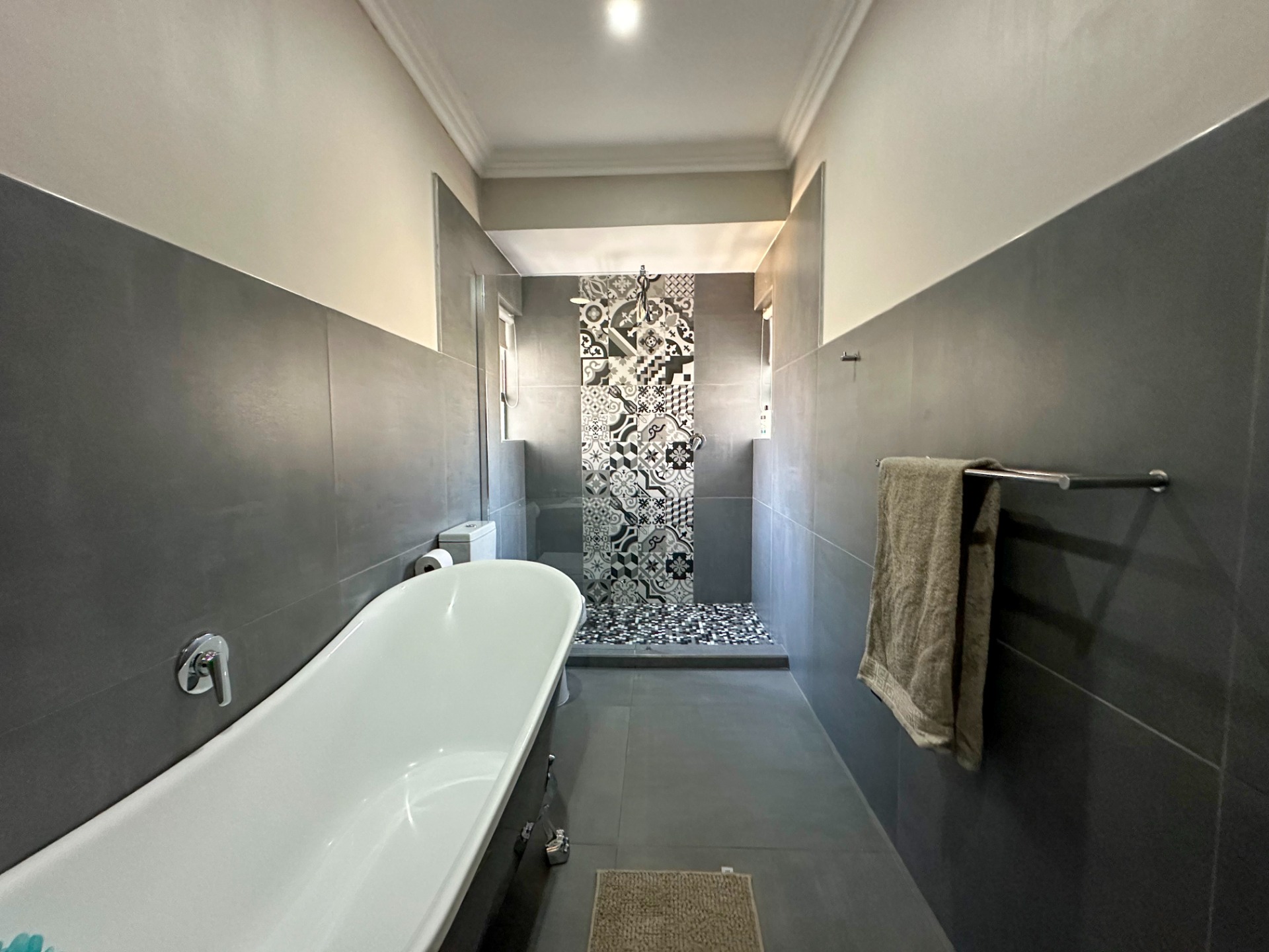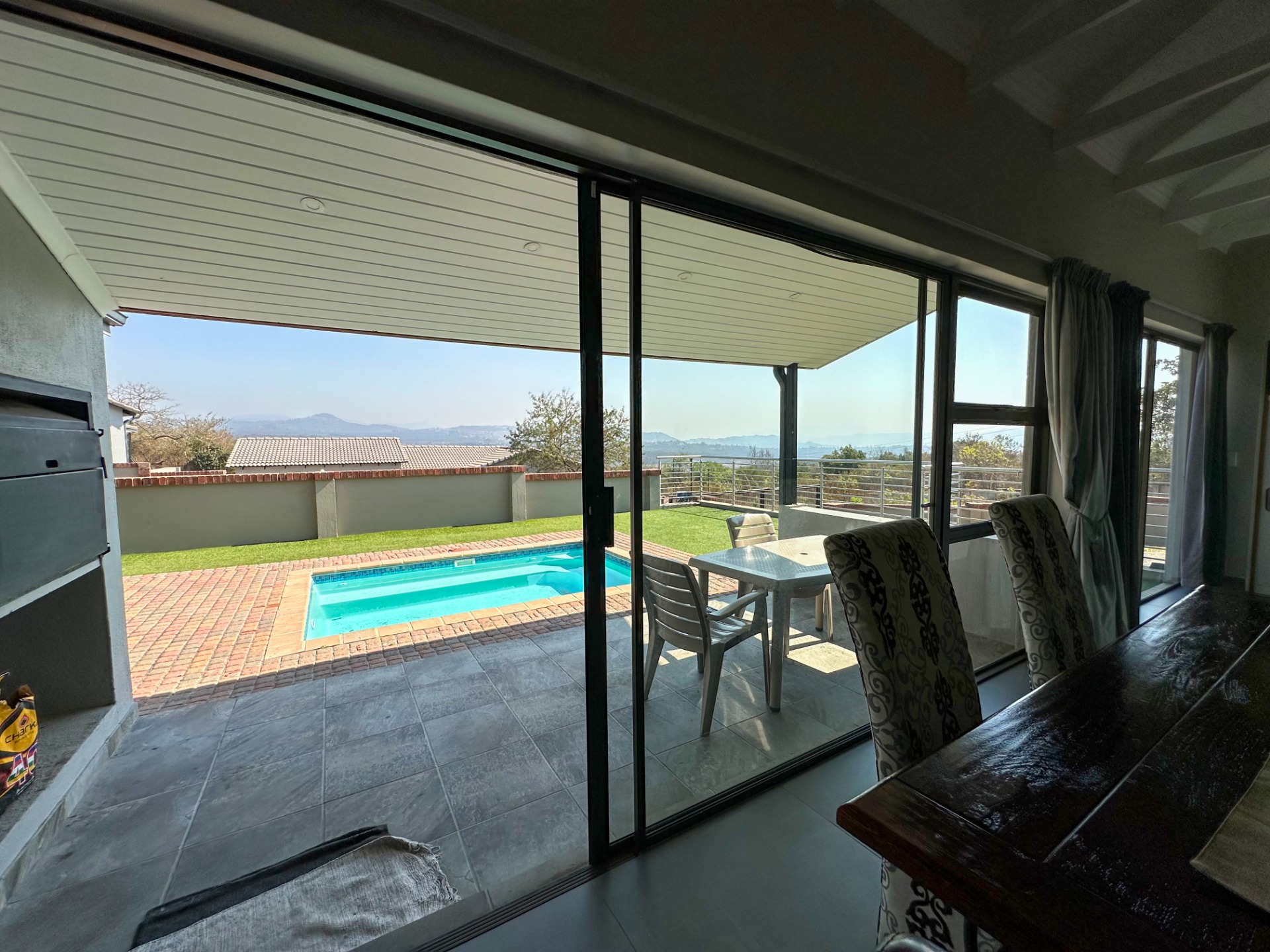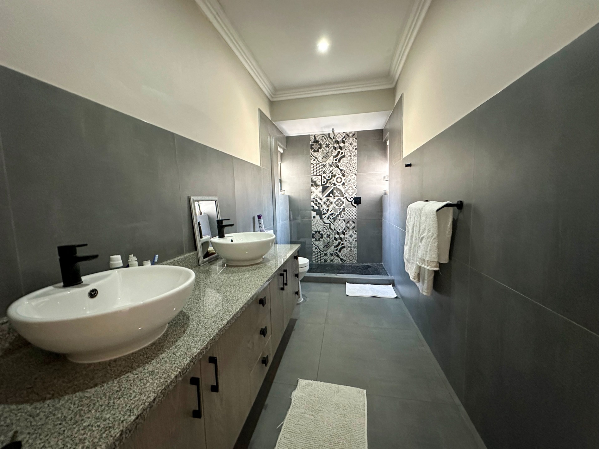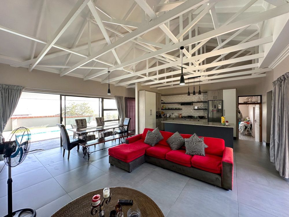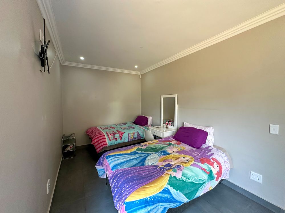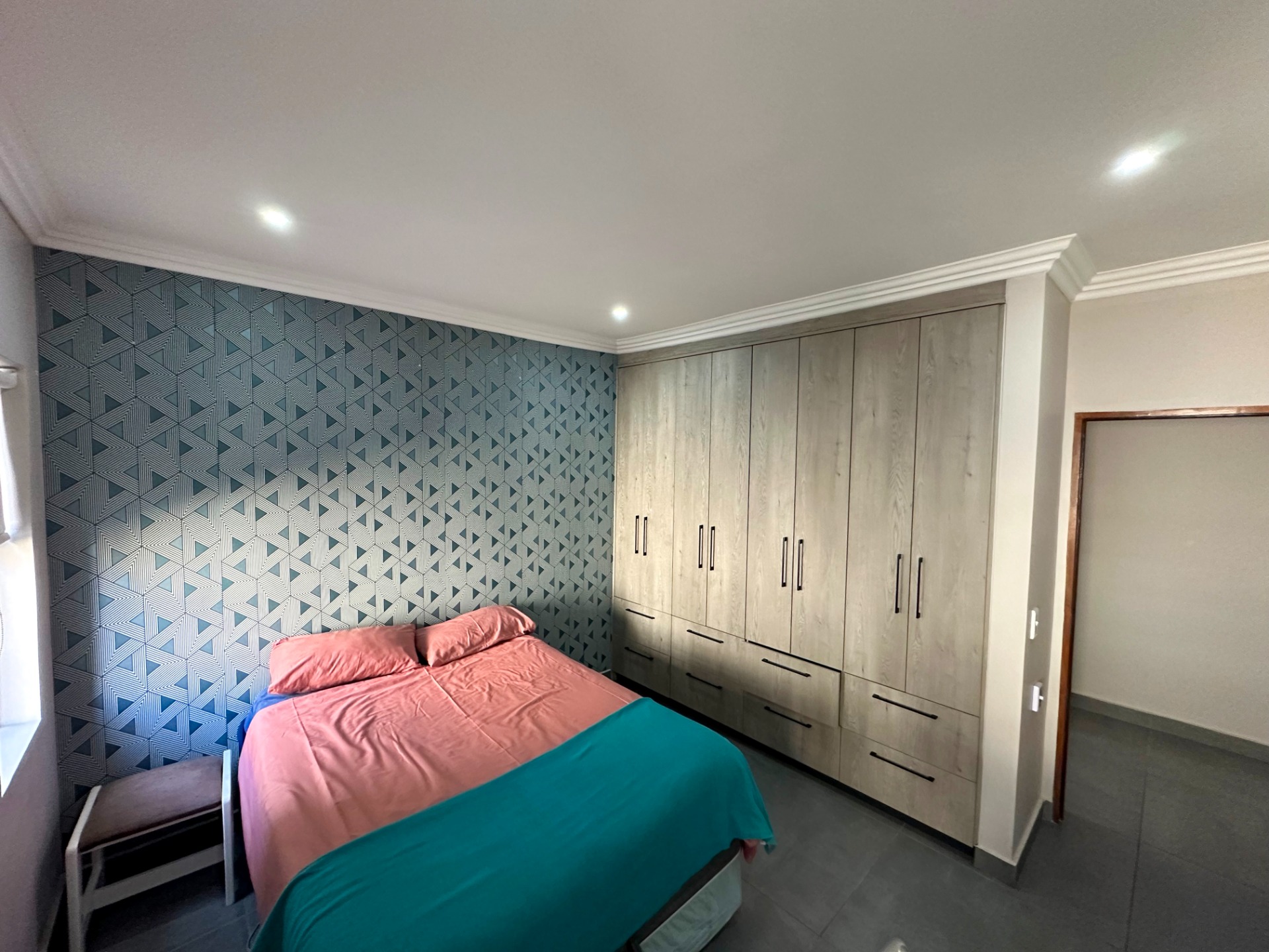 This stunning newly built property promises a quality and secure lifestyle, conveniently located near all major amenities. As you enter, you'll be greeted by a spacious open-plan living area, featuring glass doors that lead to a covered patio with a built-in braai, perfect for entertaining. The patio overlooks a sparkling pool, creating an inviting outdoor space.