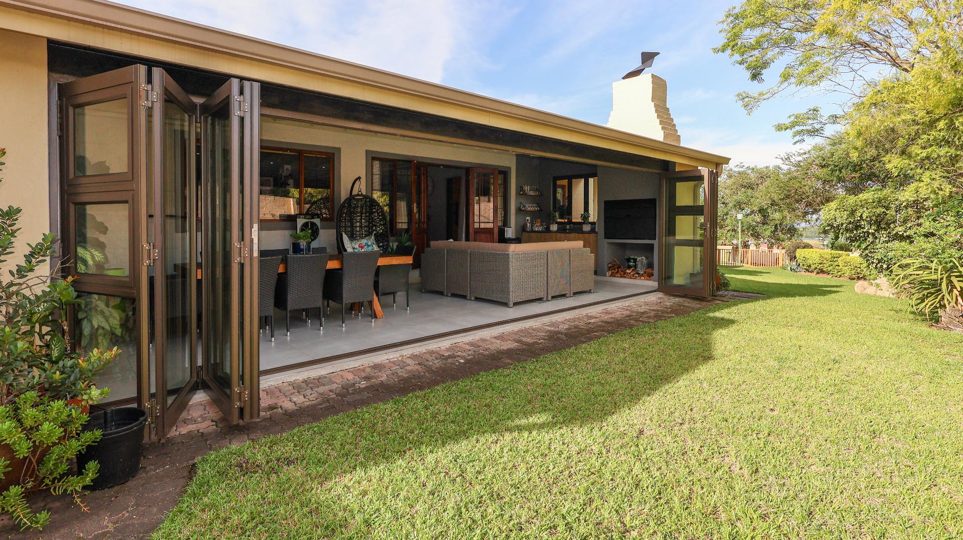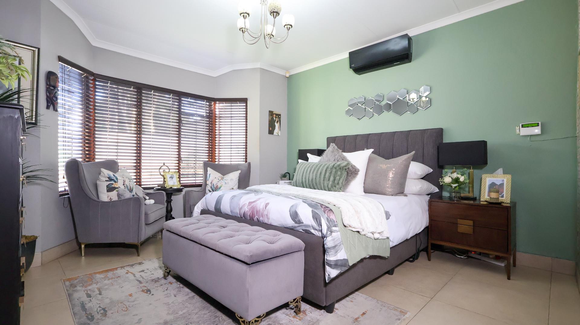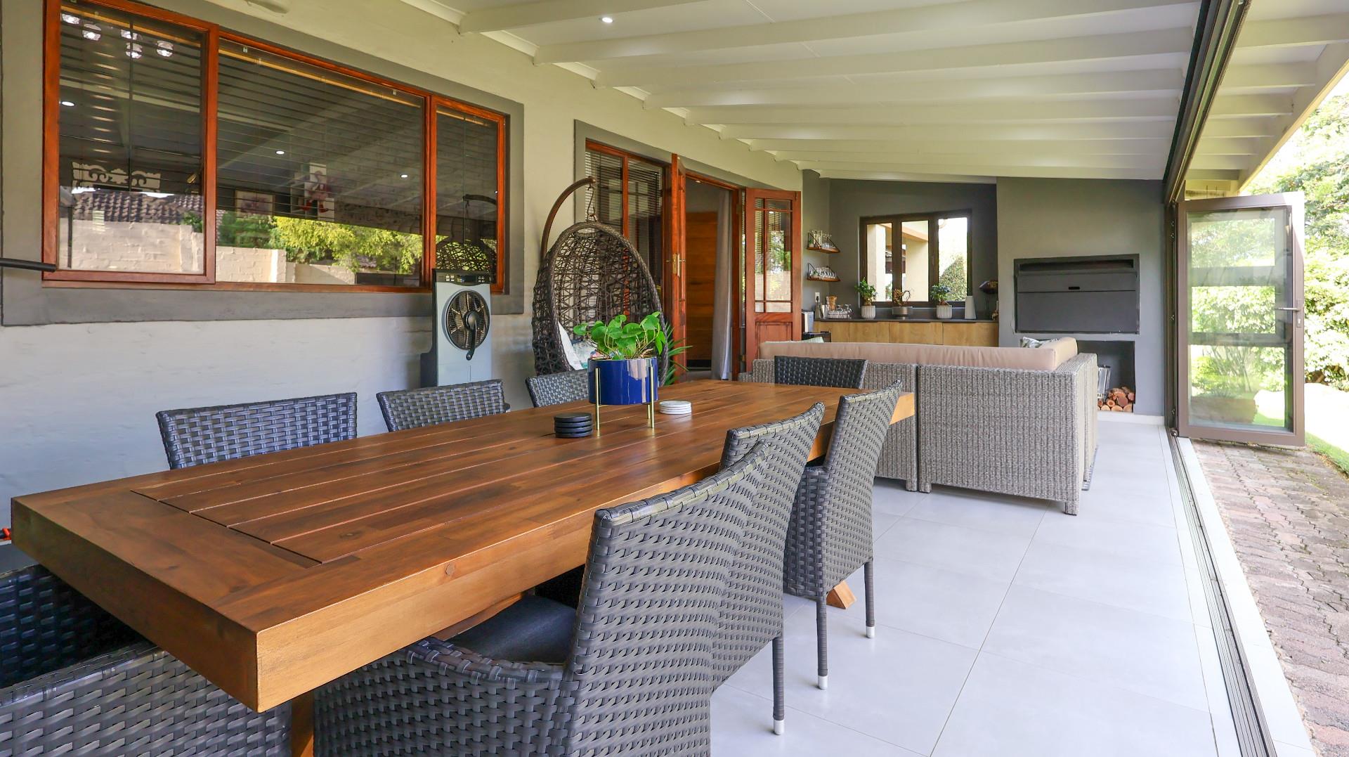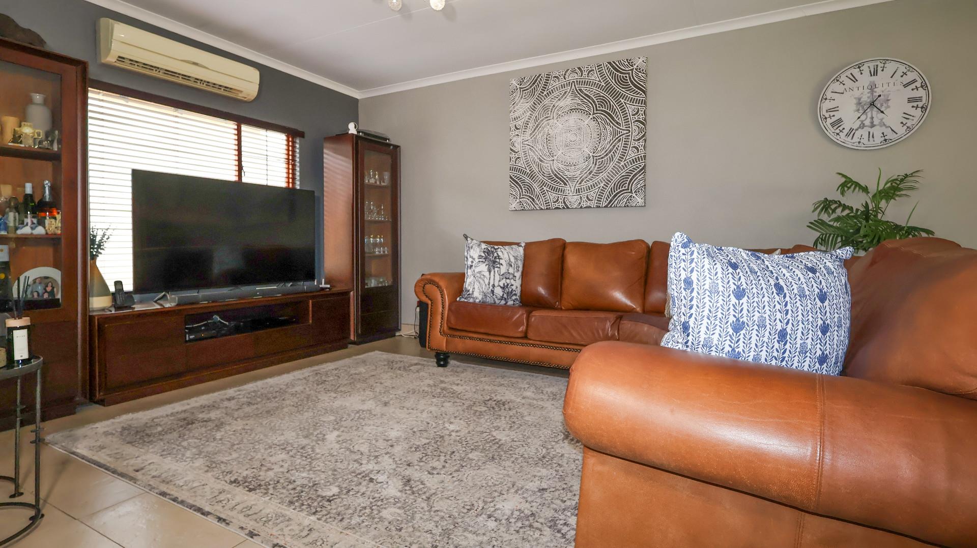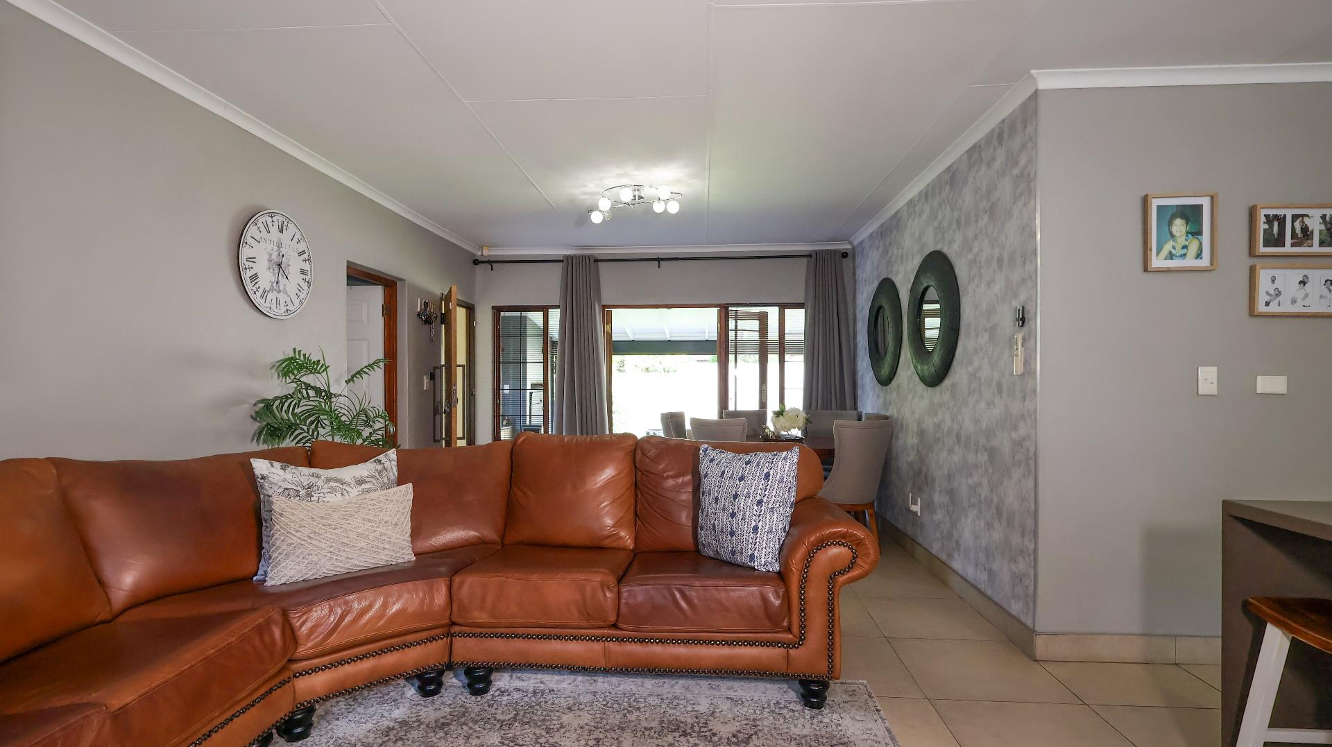 This immaculately maintained home features four spacious bedrooms, including a luxurious main en-suite, ensuring privacy and relaxation. With well-appointed bathrooms, a modern kitchen fitted with granite tops, and an open-plan layout, this property is perfect for both family life and entertaining guests. The dining room seamlessly flows into the lounge and TV room and the undercover patio and braai room,controlled creating an inviting atmosphere filled with natural light.