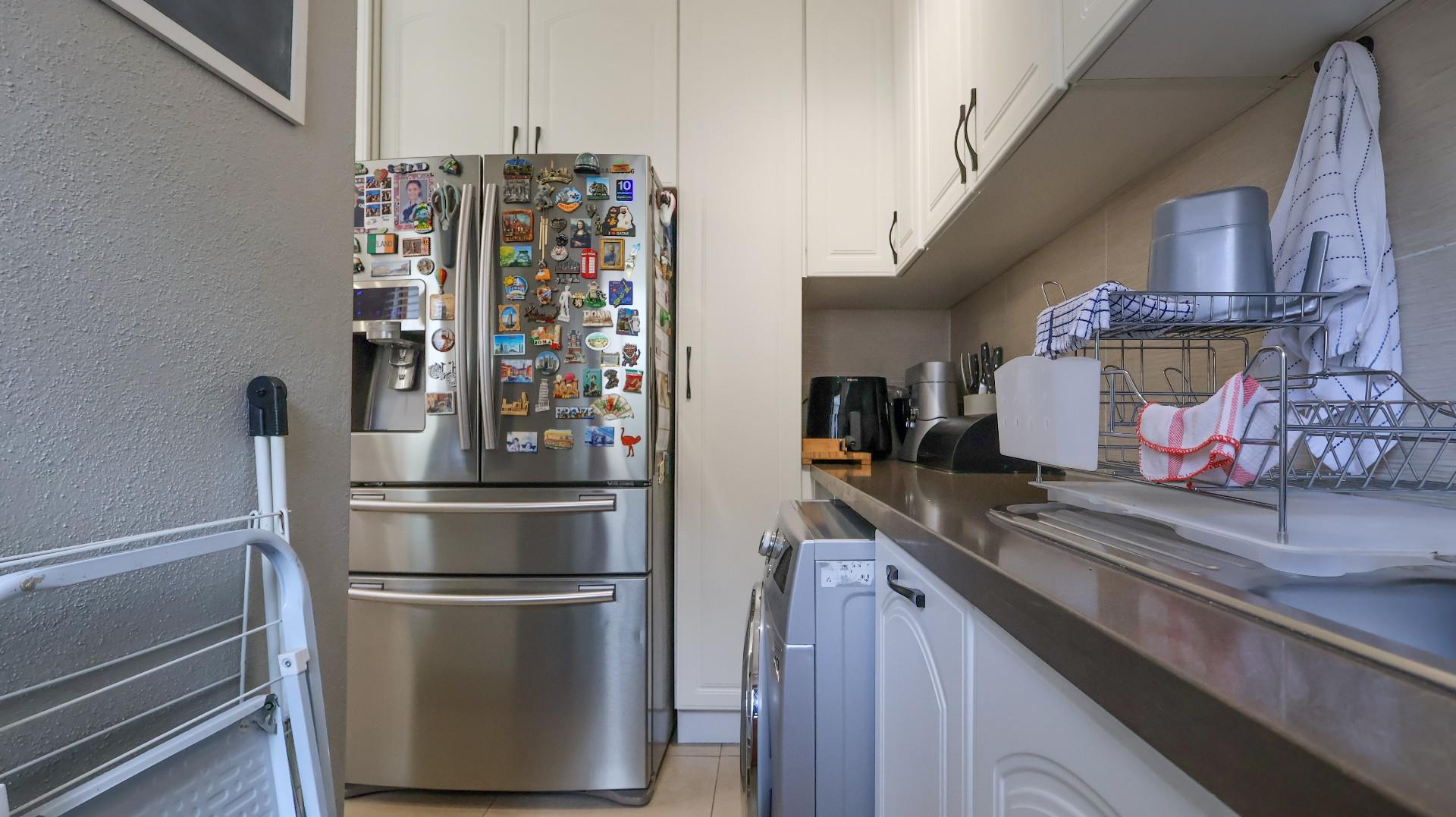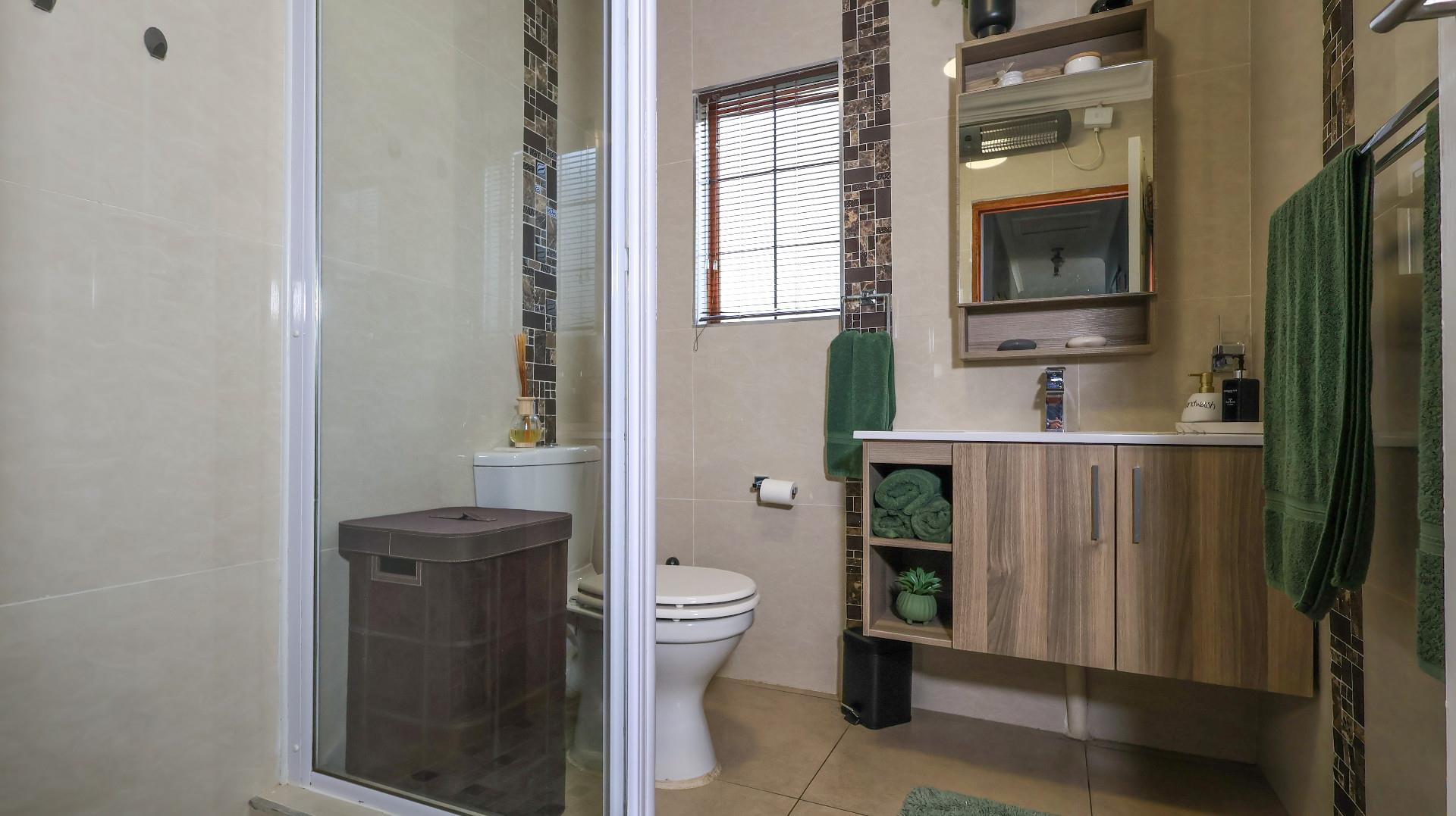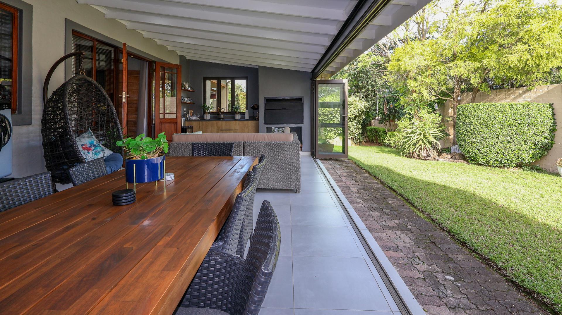 Step outside to enjoy the beautifully landscaped garden and covered patio, ideal for alfresco dining or enjoying a weekend braai with family and friends. Additional conveniences include a scullery, a braai room, and a single garage with automated doors, plus extra parking space with a carport.