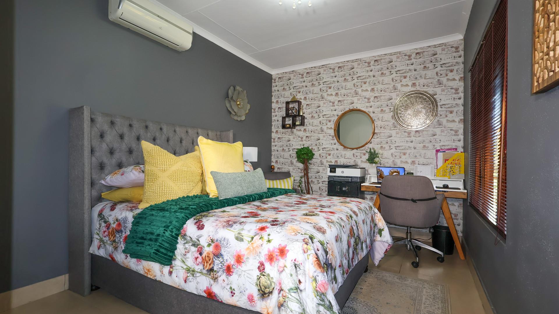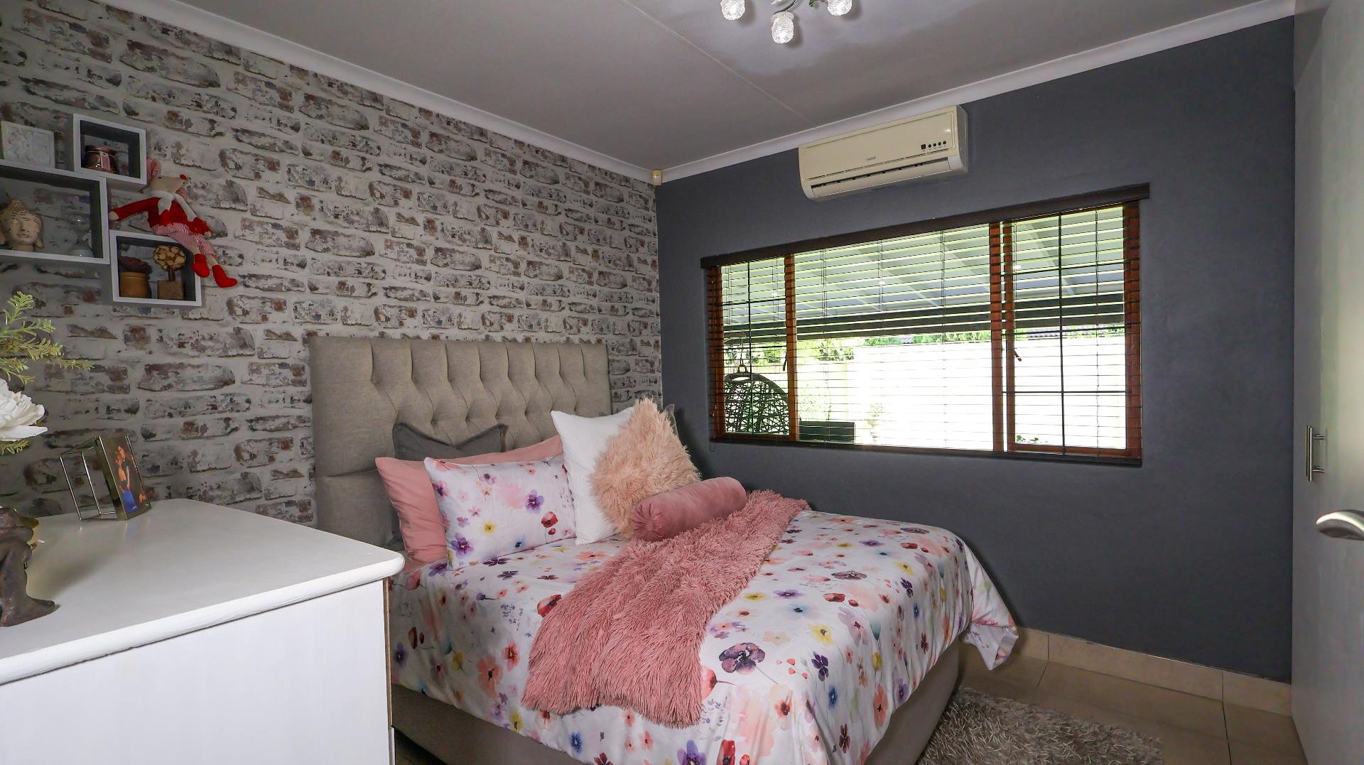 Security is a priority in this exclusive gated community, offering 24-hour controlled access, an electric fence, and a perimeter wall for peace of mind. The home is equipped with air conditioning, an alarm system, and aluminium windows for added comfort and security.