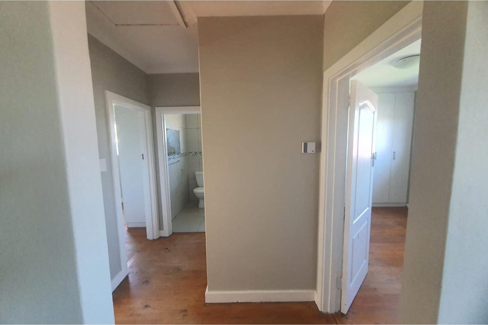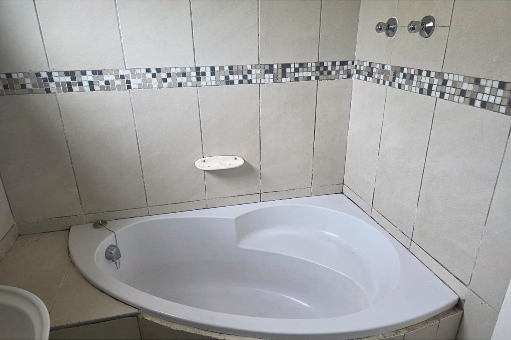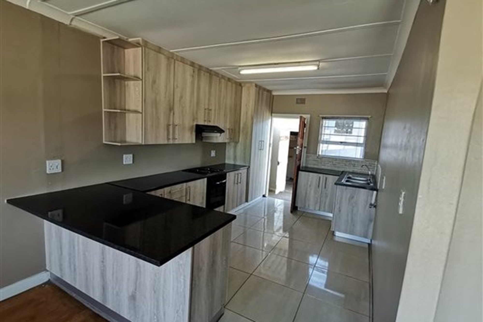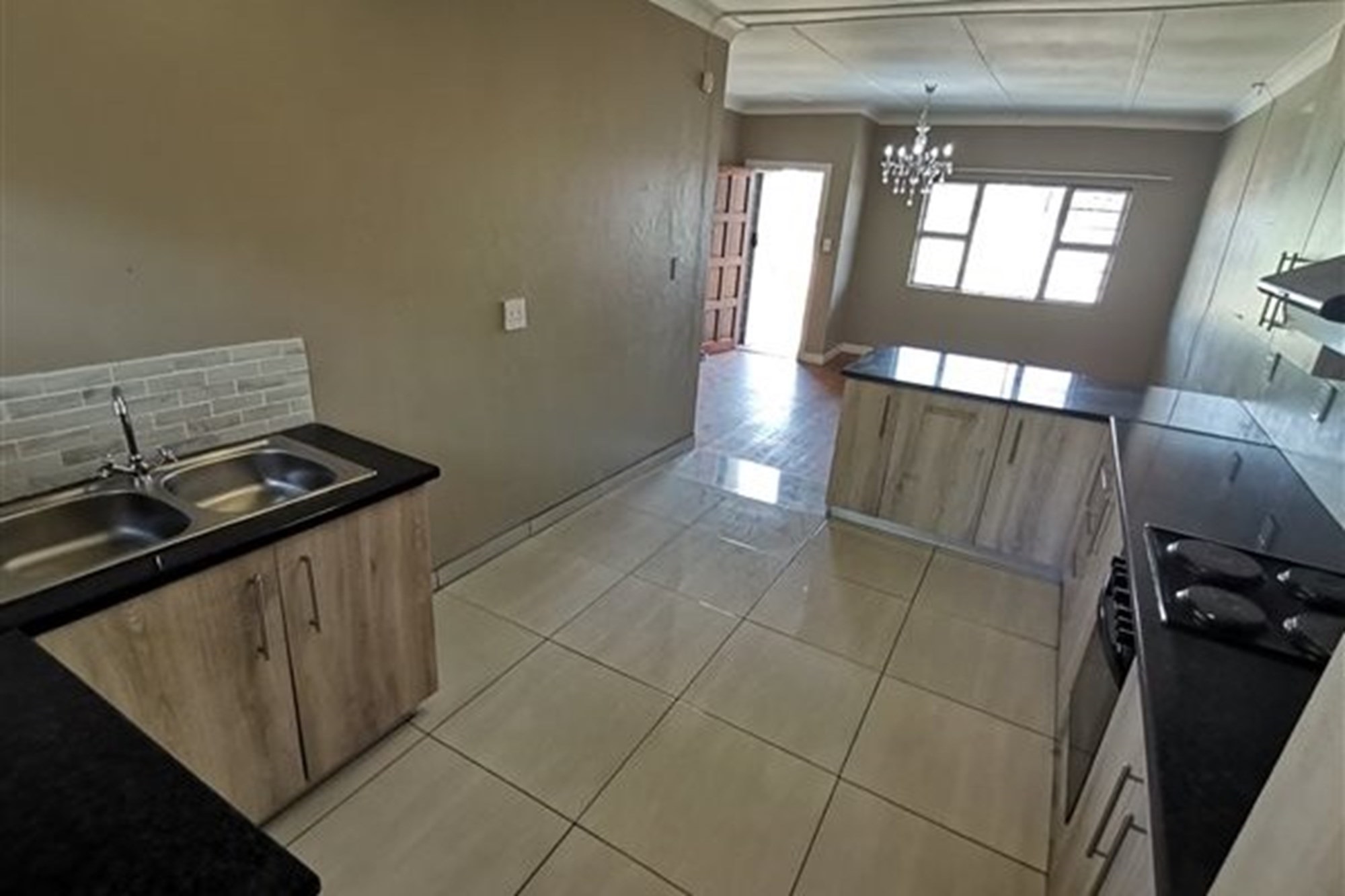 Thoughtfully designed with an open-plan layout, the living room flows seamlessly into the dining area and fully equipped kitchen boasting an electric oven and hob with additional gas stove which assists in times of load shedding. This kitchen with ample cabinets offering many storage options with a large grocery cupboard, is ideal for a home cook. This is an inviting space ideal for family gatherings or entertaining friends.