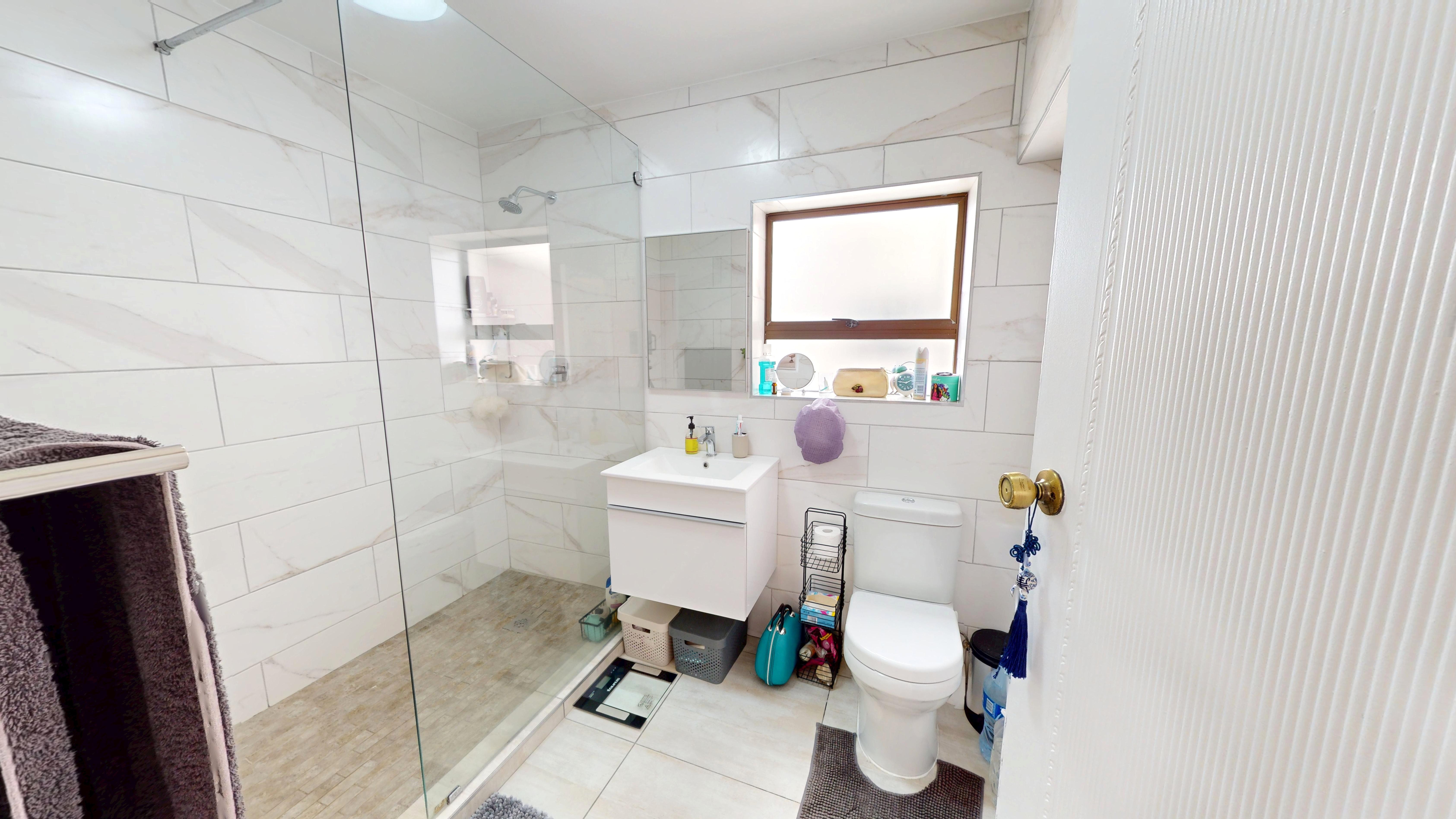 The apartment features 3 spacious bedrooms with built-in cupboards. The main bedroom includes an en-suite bathroom, and there’s a second full bathroom for guests or family. The modern kitchen flows into a light-filled living and dining space—perfect for relaxing or entertaining.