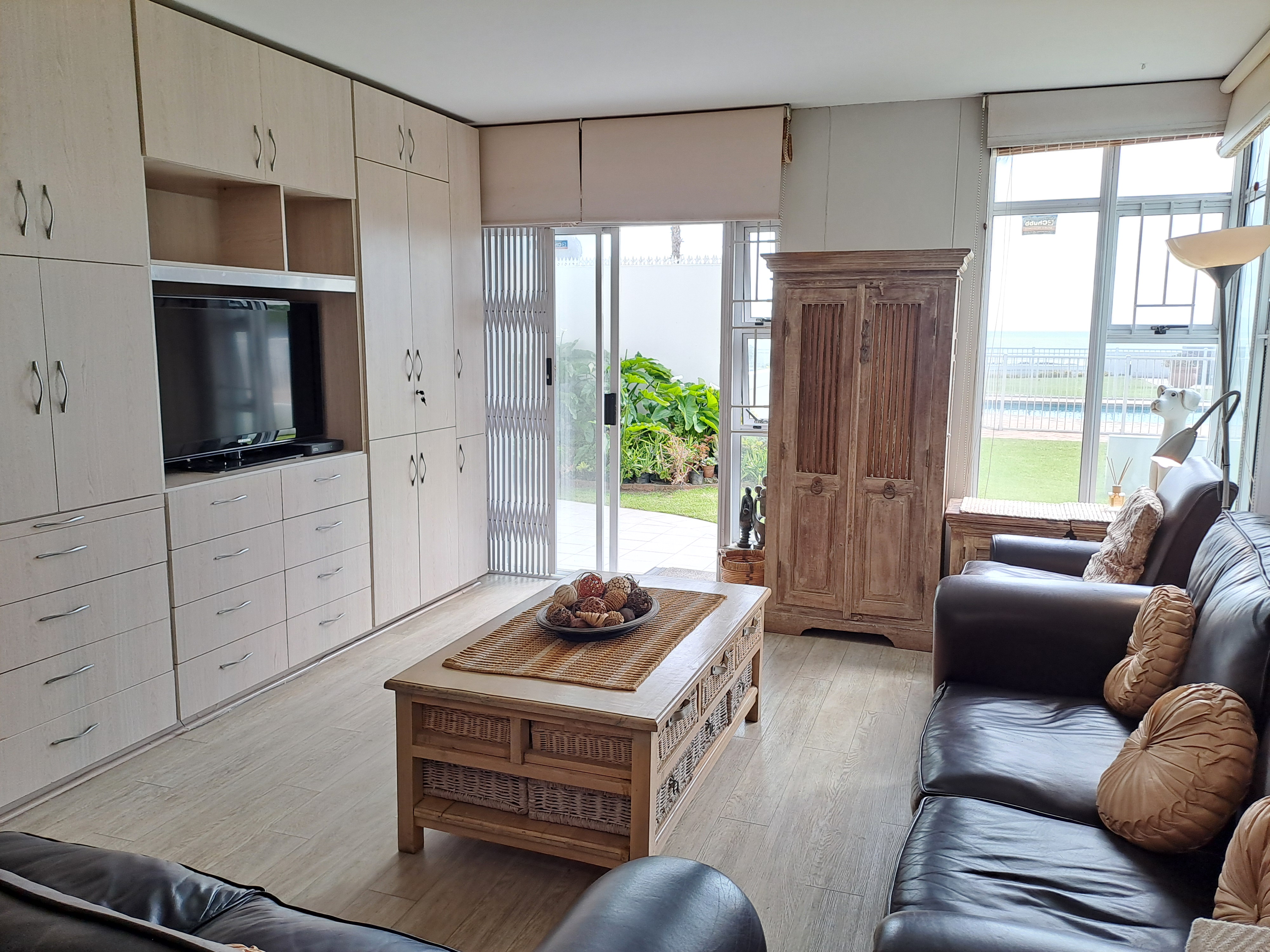 Step out from your lounge or main bedroom onto a generous patio and private garden, just a few steps from the shimmering swimming pool and the communal braai area, where evenings often end with laughter, the smell of the sea, and the sound of the surf.