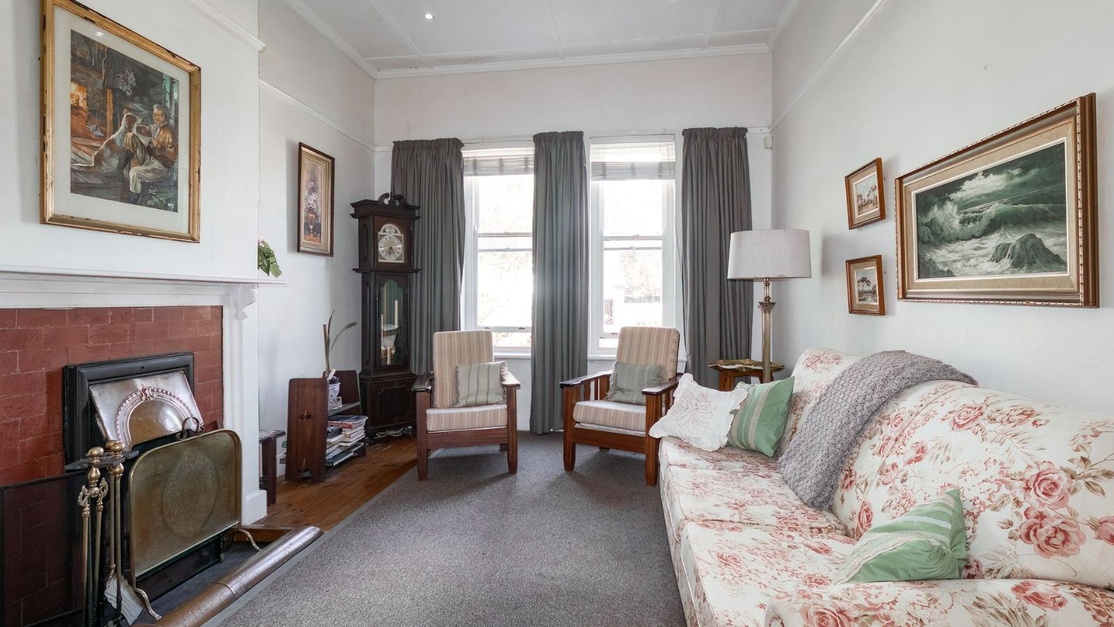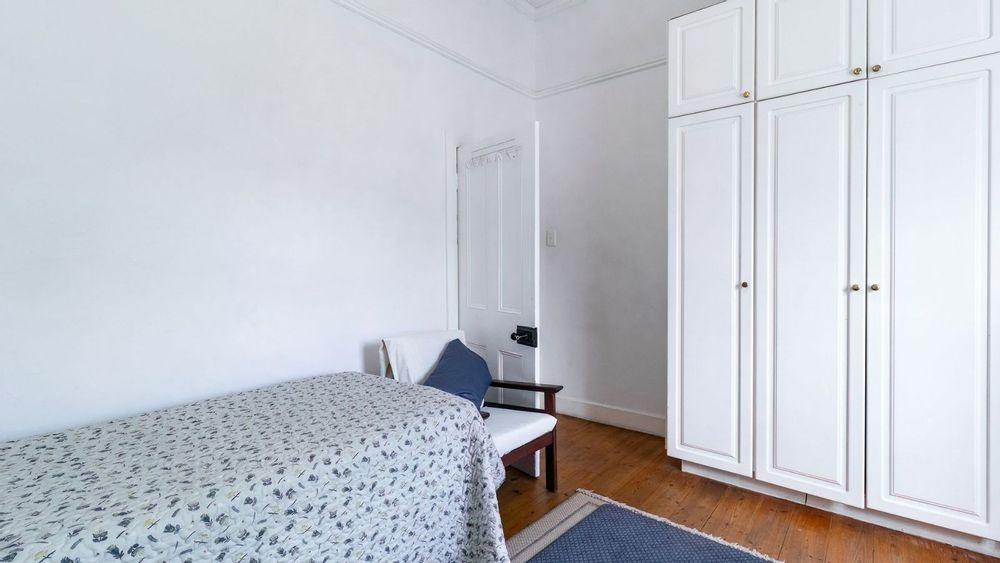 Offering three comfortable bedrooms and a full bathroom, the house retains its original wooden floors and high ceilings, adding a sense of grandeur and nostalgia throughout.