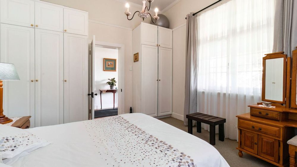 The open plan kitchen and living area create a lovely flow for easy family living. A built-in fireplace and french doors in the lounge provides warmth and keeps it where needed during winter times. Double happy doors open up to a delightful stoep that overlooks beautifully maintained gardens, perfect for morning coffee or afternoon relaxation.