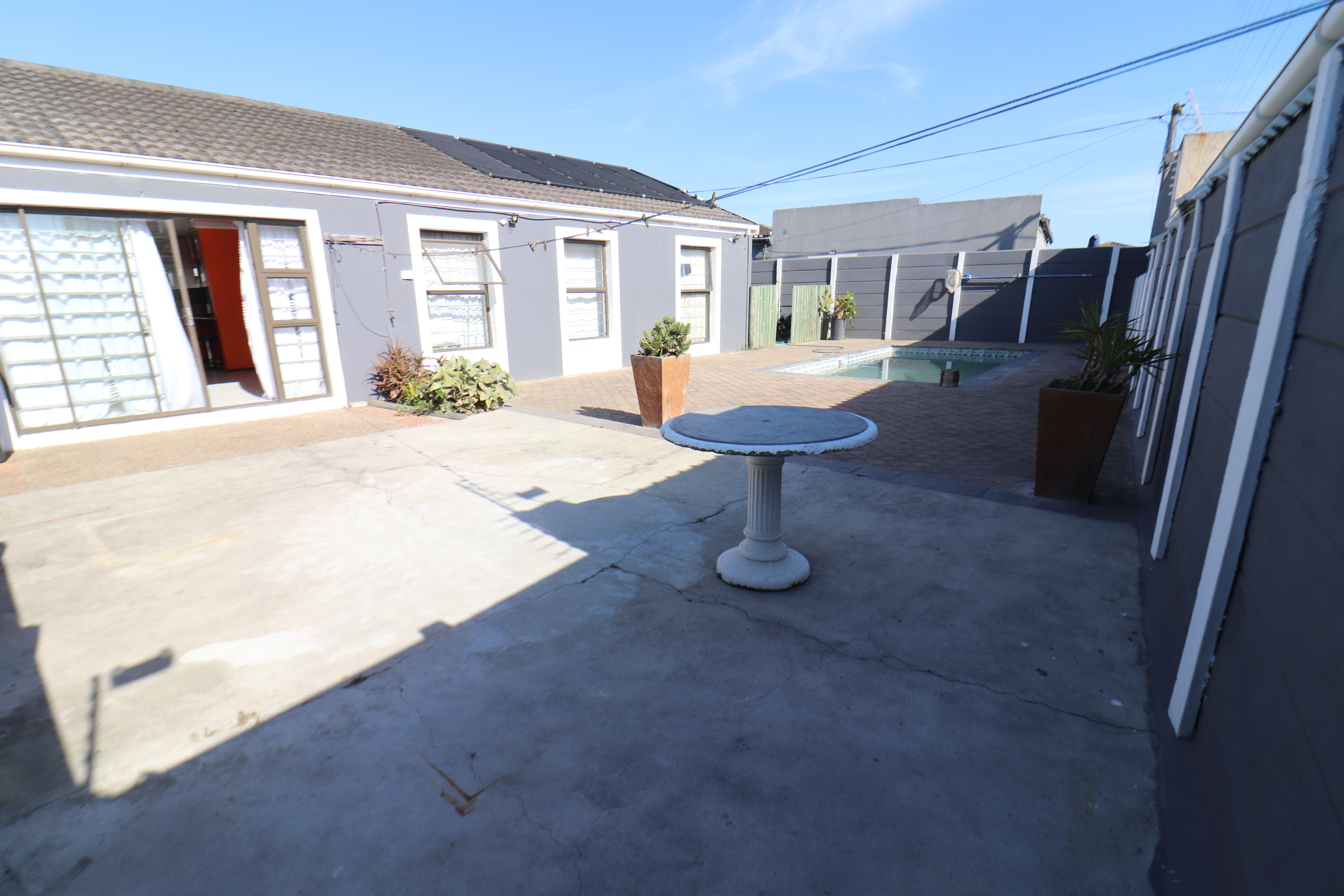 Welcome to this well-located three-bedroom home for sale in Strandfontein. As you arrive, you are met with a tandem garage that comfortably accommodates up to three vehicles, and the property is secured with electric fencing in a quiet, well-kept area. Inside, the home offers a functional kitchen and a cosy living room with a corner fireplace, perfect for creating a warm atmosphere during colder months. The living room also provides a side entrance leading to the backyard, while the front door offers direct access into the living space. The home features three bedrooms: a single room ideal for a child or for storage, a second bedroom with built-in cupboards and slightly more space, and a main bedroom that includes built-in cupboards and an en-suite bathroom for added convenience. Outside, the backyard offers a generous area complete with a swimming pool and a designated enclosed space for the pool pump. Overall, this property provides both comfort and practicality, with easy access to nearby amenities such as Spar, petrol stations, private medical services, cafés, primary schools, and high schools. Contact me today to arrange a viewing!