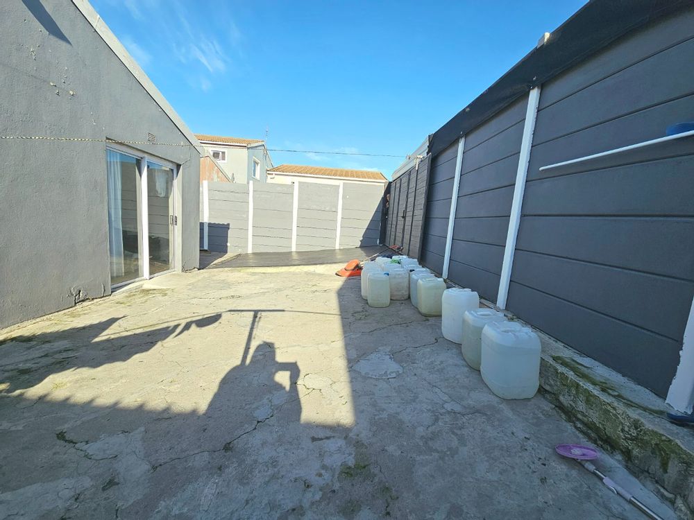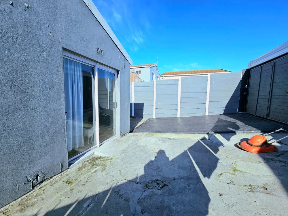 Lovely freestanding, four bedroom house located on the bus and taxi route in sought after Strandfontein. You can access this lovely property from two streets. Enter the back of your home through a lovely quiet cul-de-sac, alternatively you may enter your front door by ways of an alternative street. This four bedroom, freestanding house is built on a sizable 385 square metre plot The house consists of a spacious tiled lounge, an open plan kitchen and dining room. The four bedrooms boasts with a fair amount of space, while the fourth bedroom has a patio door which leads to the yard area. The house has a family bathroom and separate toilet. At the rear of the property, you'll find a single garage, fitted with an automated garage door. A sliding gate allows you to enter into a spacious area which may be utilised as an entertainment area, a workshop, or extra parking space. This property is located close to the local primary school and other amenities are a stone throw away.