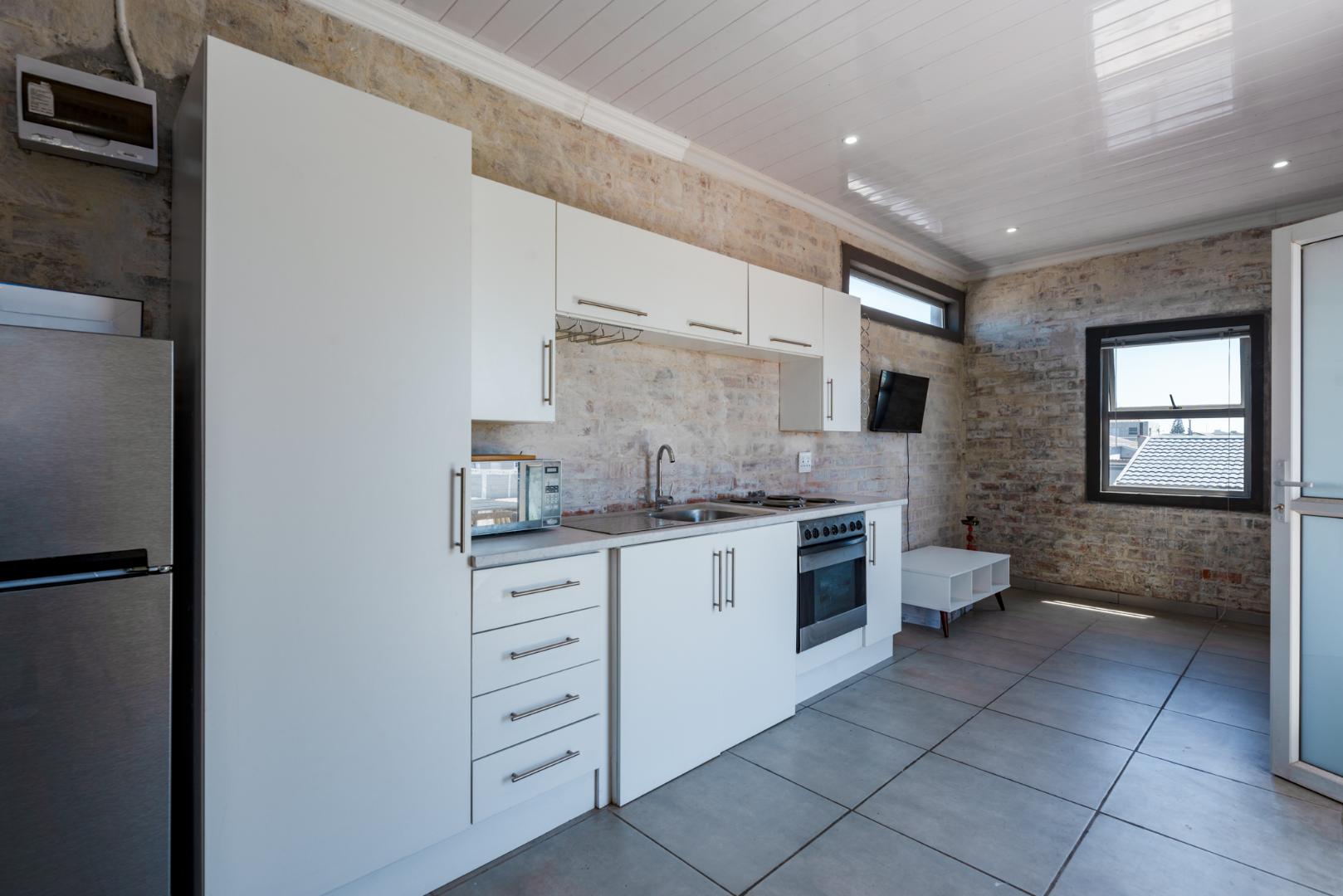 Separate Entrance Two is a charming loft-style unit featuring an open-plan kitchen and lounge area, fully tiled and fitted with built-in cupboards. The bathroom includes a shower, basin, and toilet. The exterior of this unit is beautifully finished with attractive rock cladding, adding character and visual appeal.