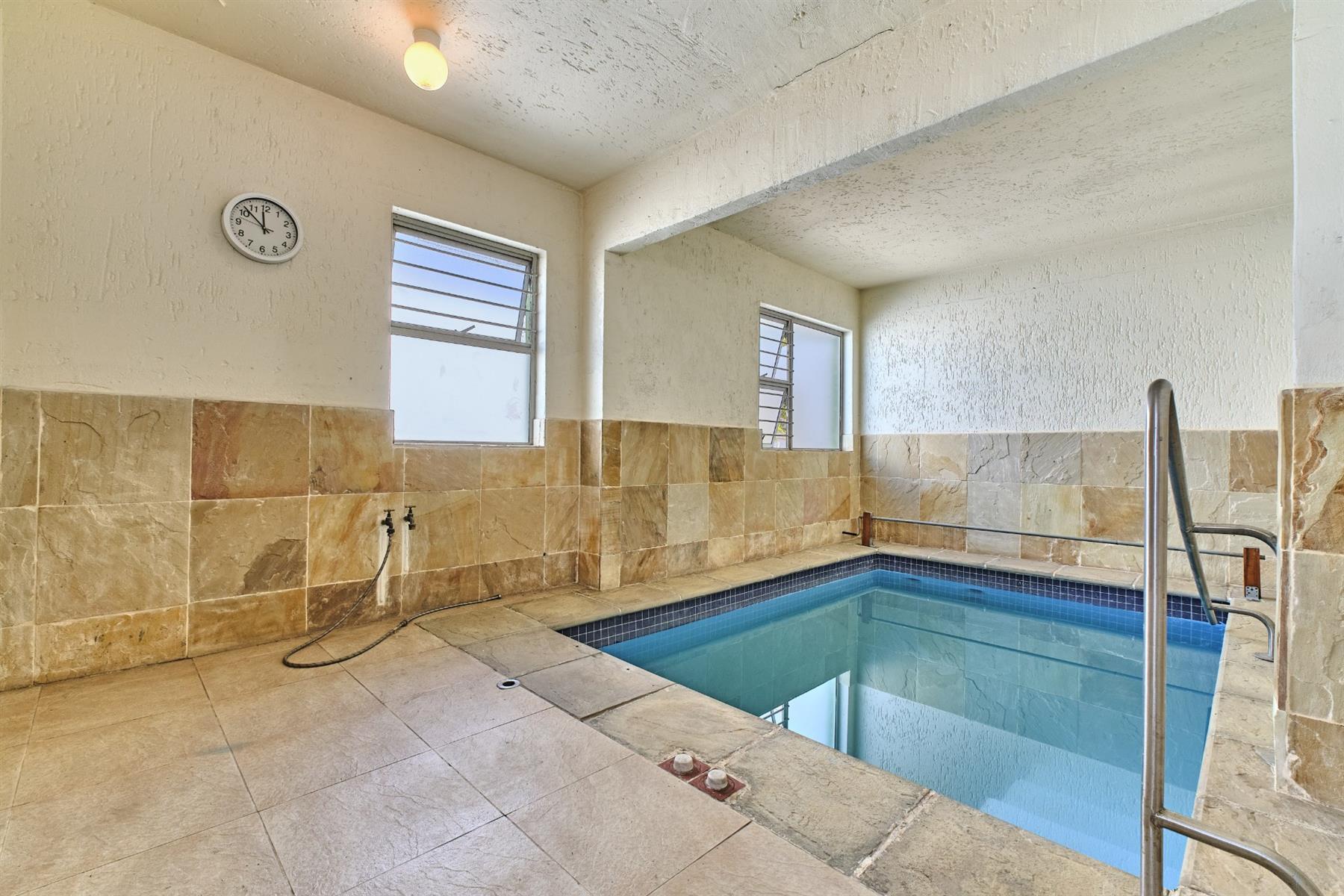 There is a guest toilet, double garage and secure visitor`s parking. The staff room has been converted to a therapy room with jet pool.
