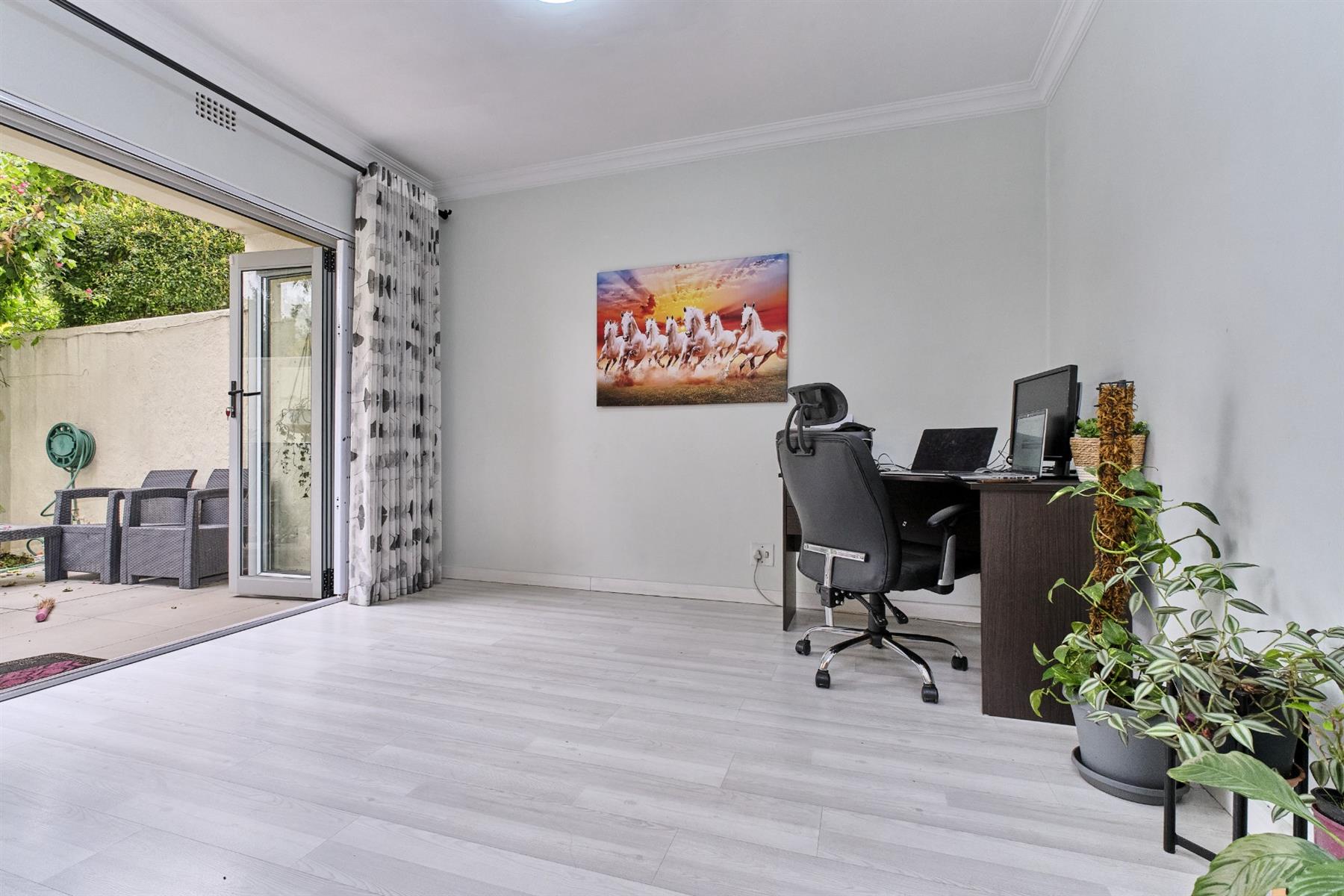 Set in tranquil surroundings this stylishly renovated townhouse offers a welcoming entrance, sleek granite kitchen and spacious open-plan living areas that seamlessly blend the lounge and dining spaces as well as study area. Stacking doors lead to the covered patio and private garden. Natural light enhances the sense of openness.