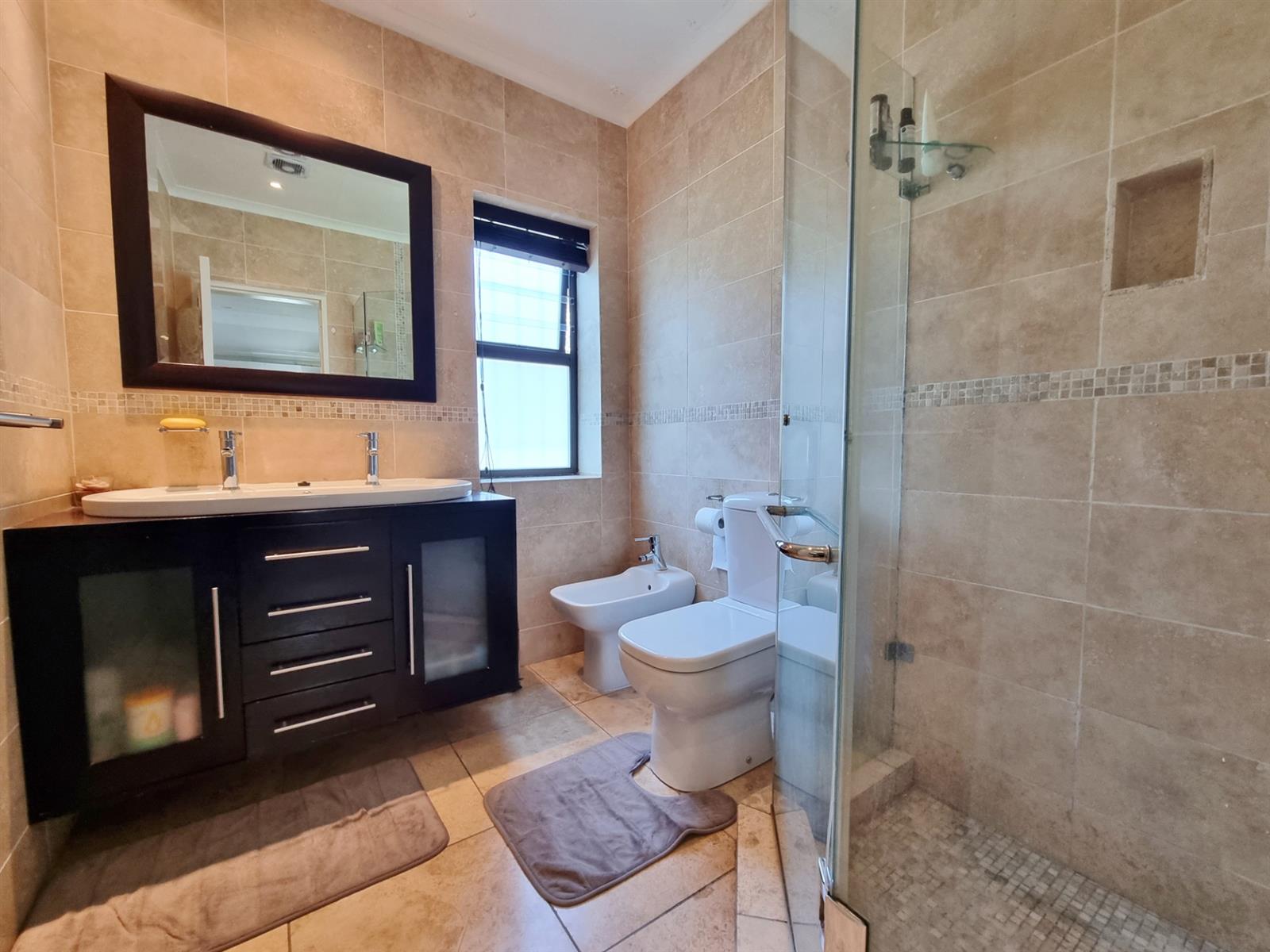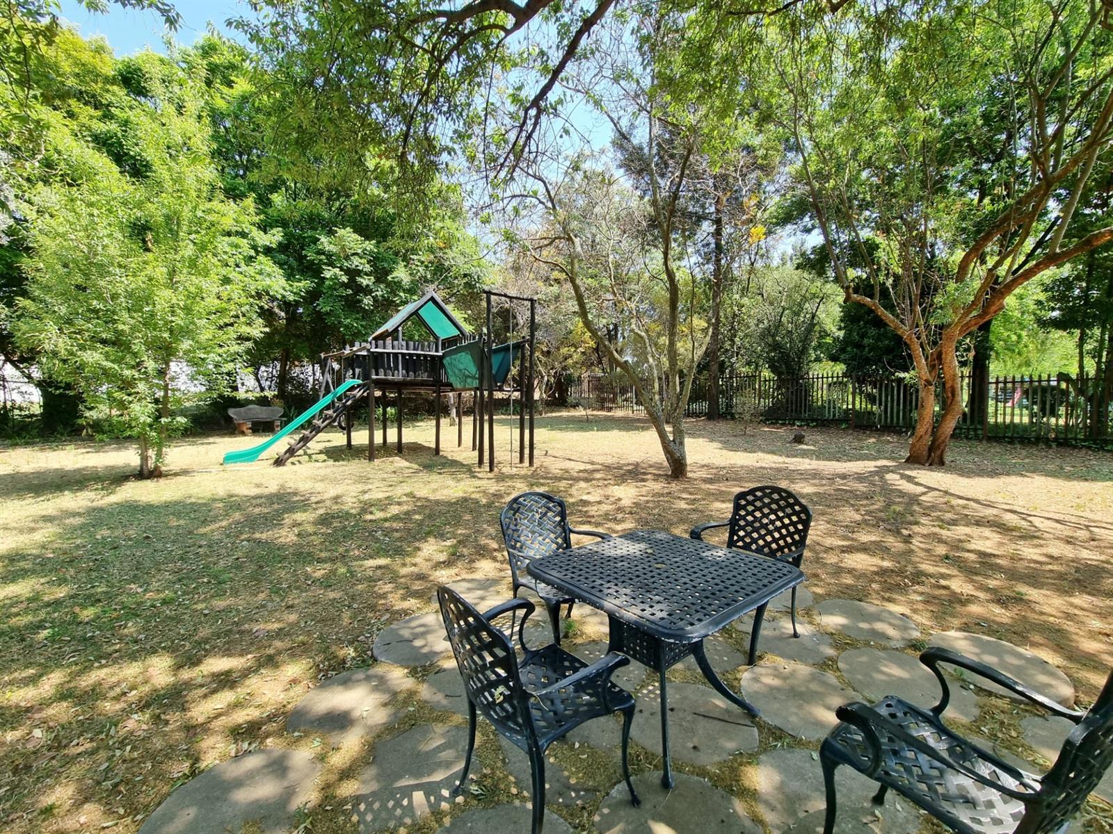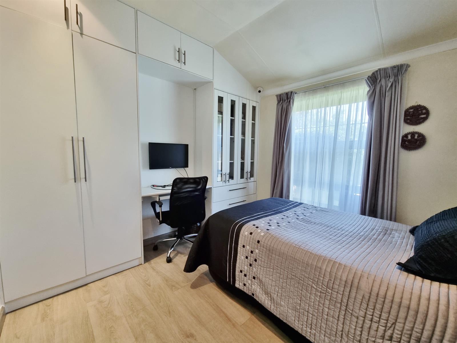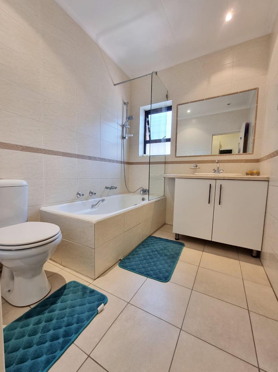 This spacious, secure face-brick corner garden unit offers three well-sized bedrooms and two bathrooms (main en suite). The open plan dining and lounge area features a gas fireplace and flows seamlessly through stacking doors onto a paved patio and beautifully maintained garden with solar lighting and an irrigation system.