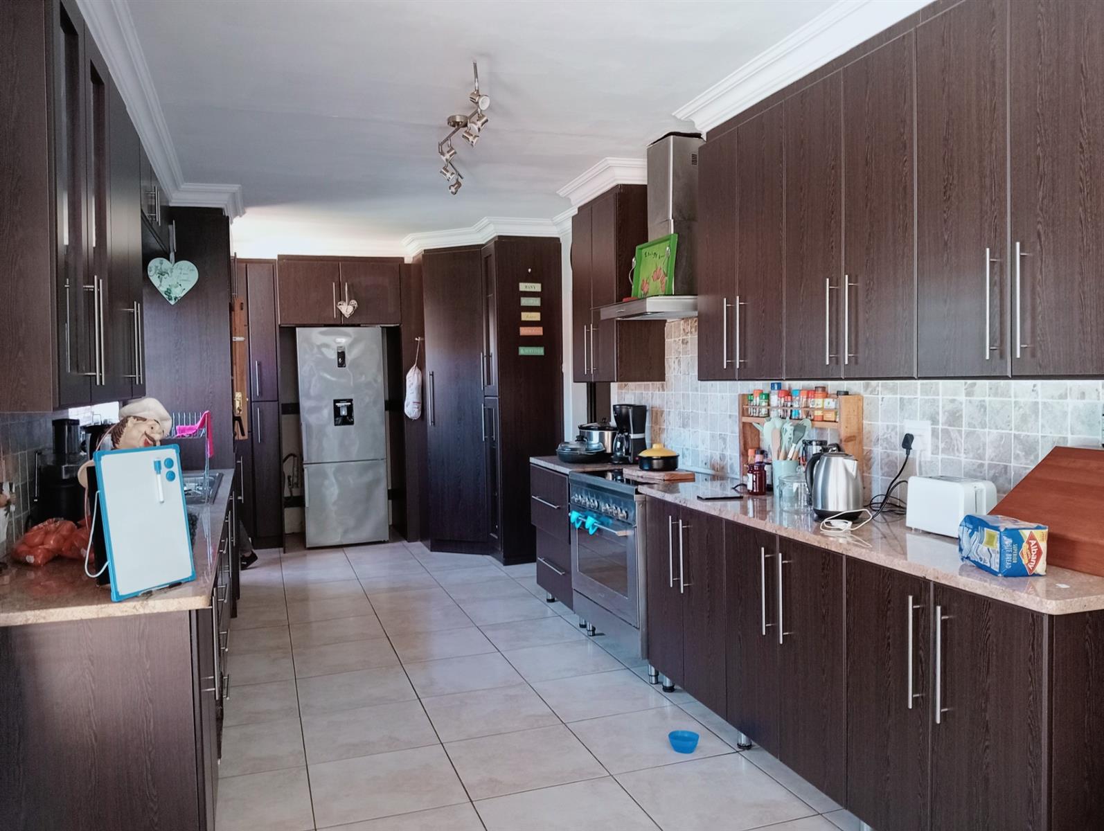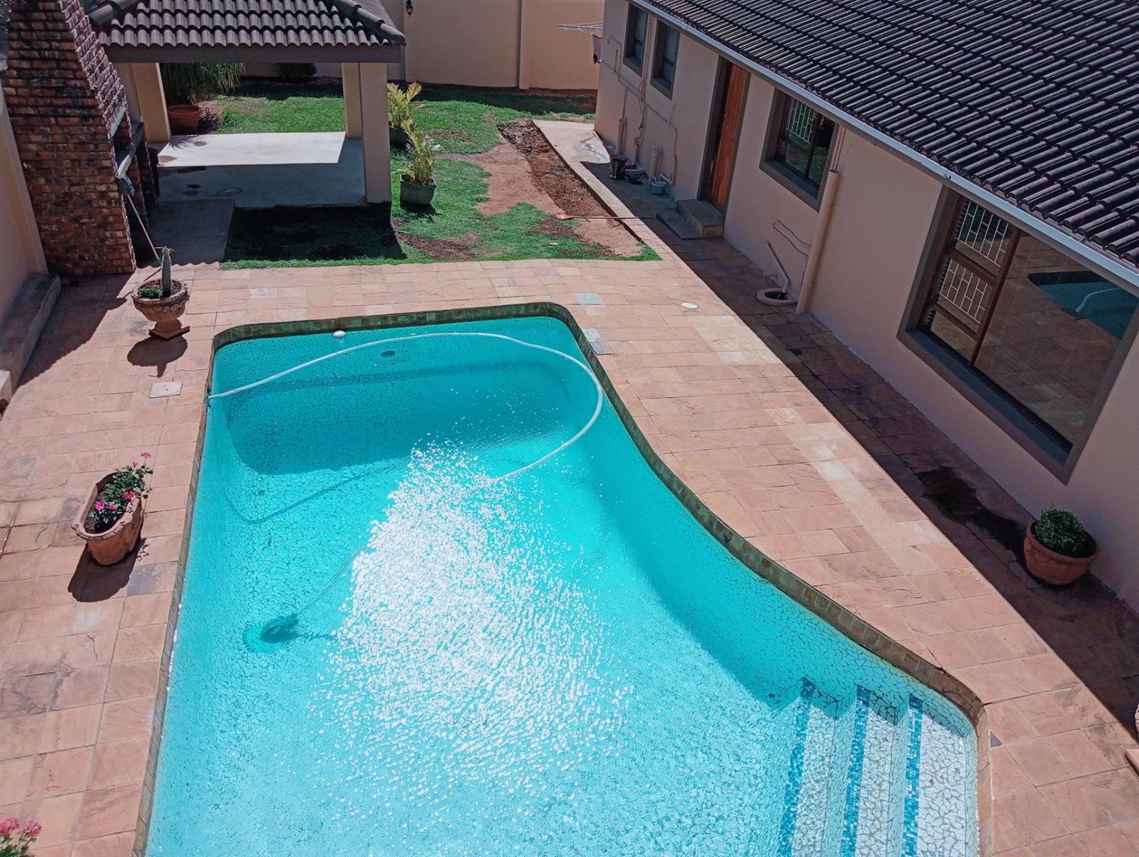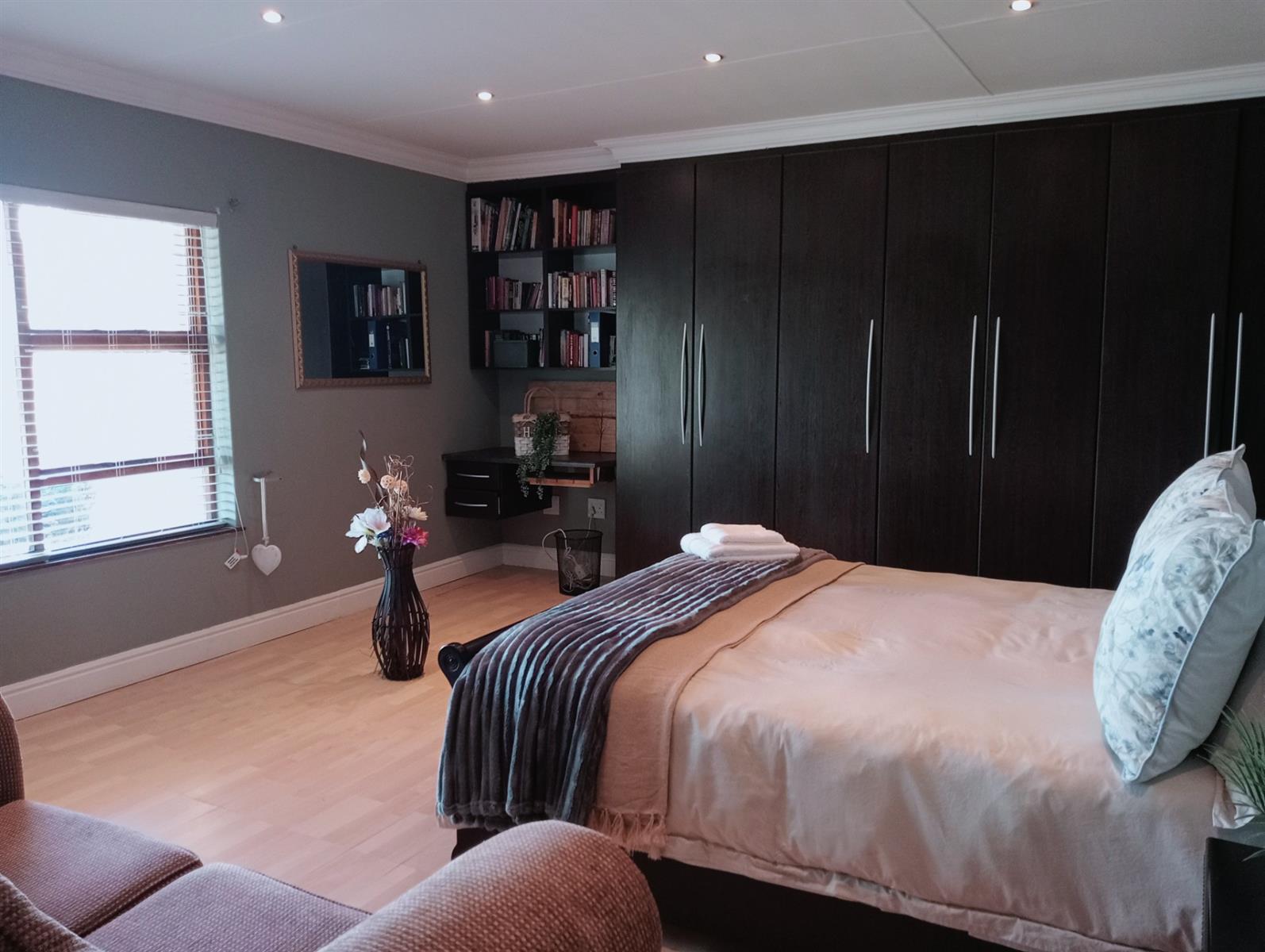 The open-plan layout and seamless flow between indoor and outdoor spaces make it ideal for hosting both lavish celebrations and relaxed weekend braais. The stacker doors open wide to a sparkling pool and braai area, creating an unforgettable setting for any gathering.