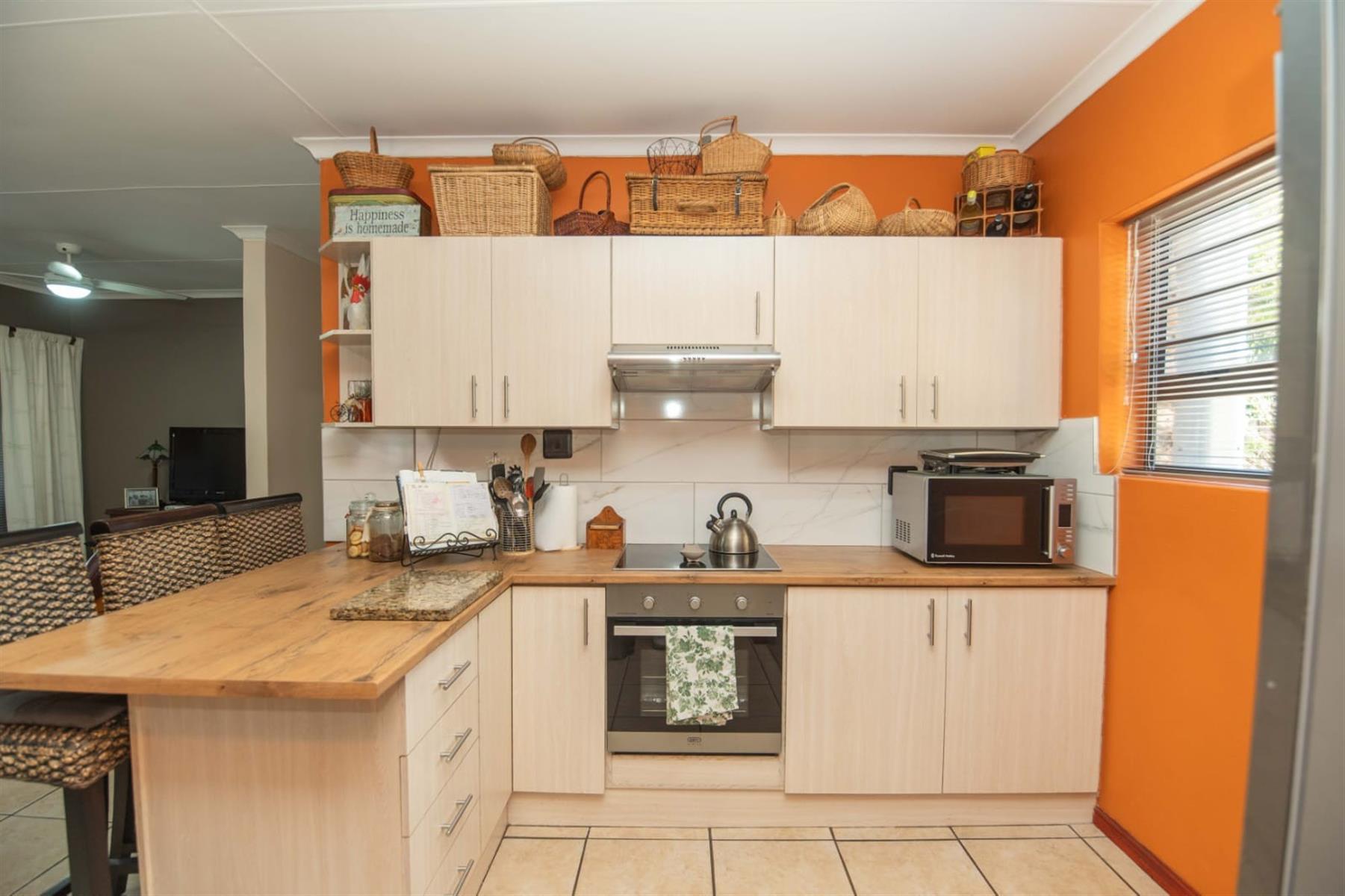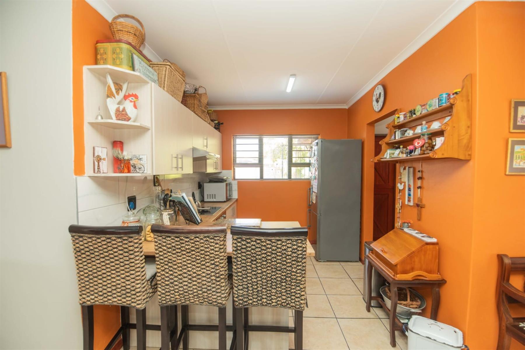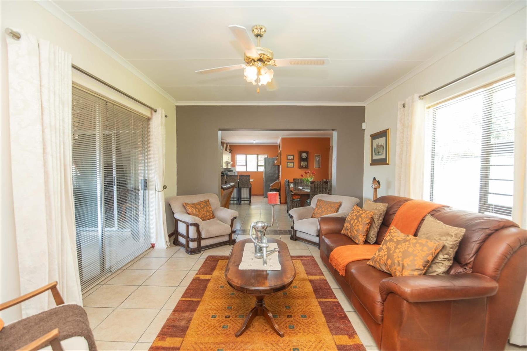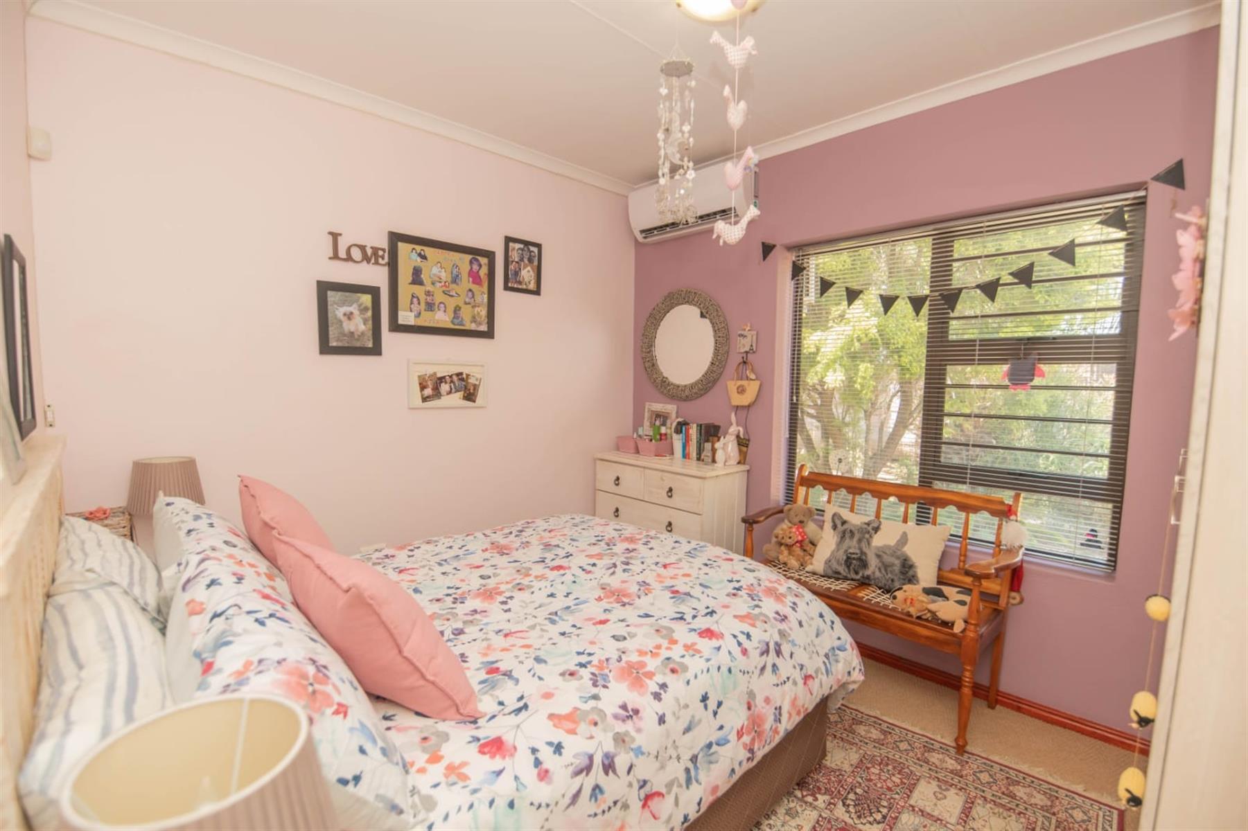 This home is equipped with modern amenities for peace of mind and comfort, including air conditioning, an alarm system, and armed response for enhanced security. The property is partially fenced and features burglar bars and security gates for added safety. With natural light flooding in throughout the home, it is both inviting and warm.